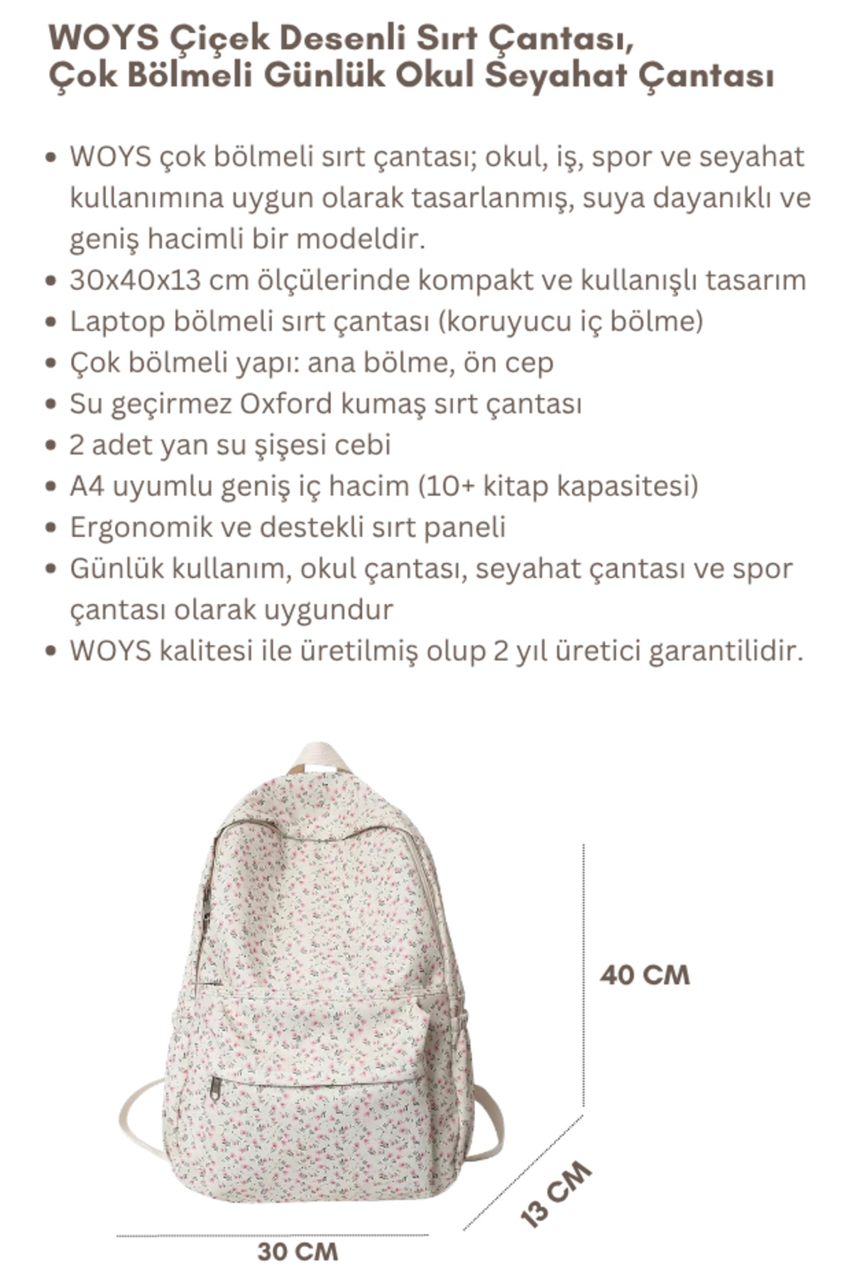 This women's backpack, which attracts attention with its stylish design decorated with flower patterns, reflects the energy of young people.