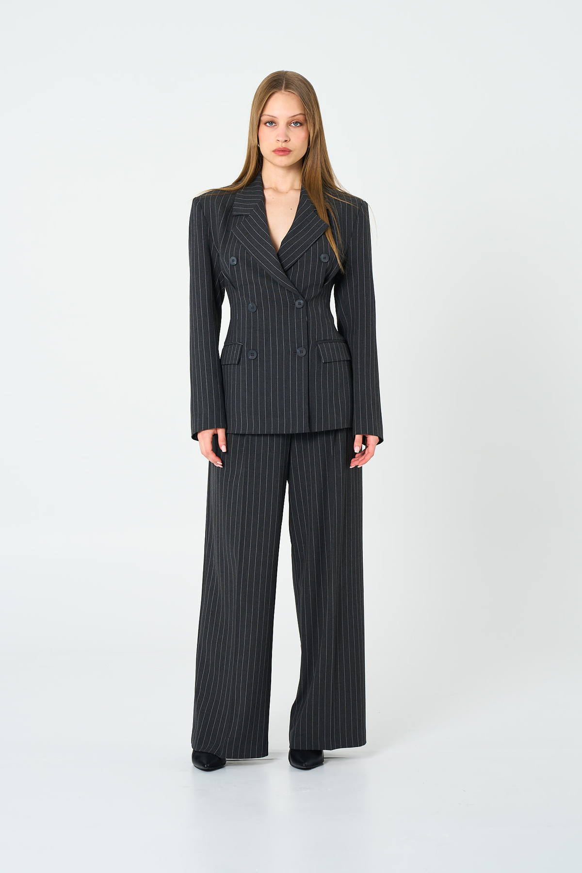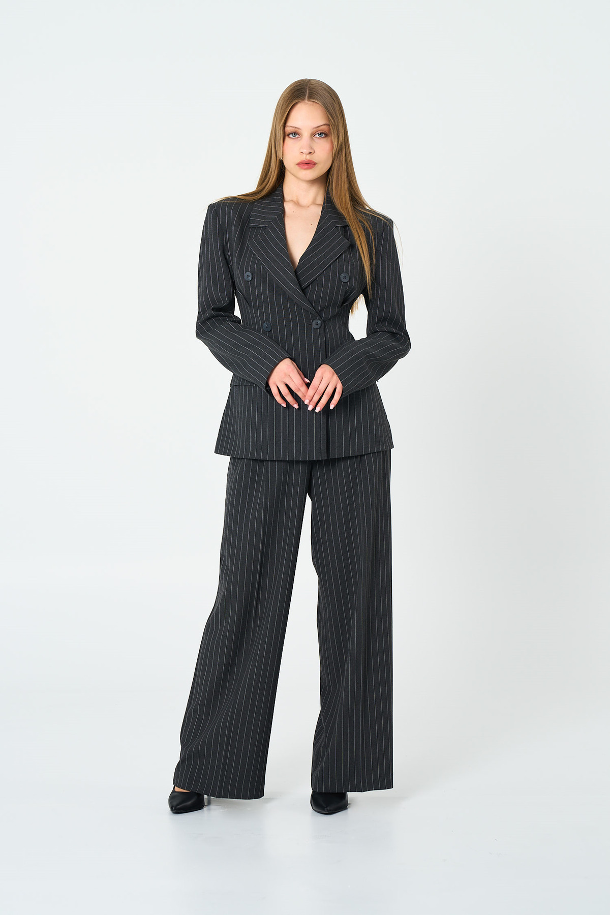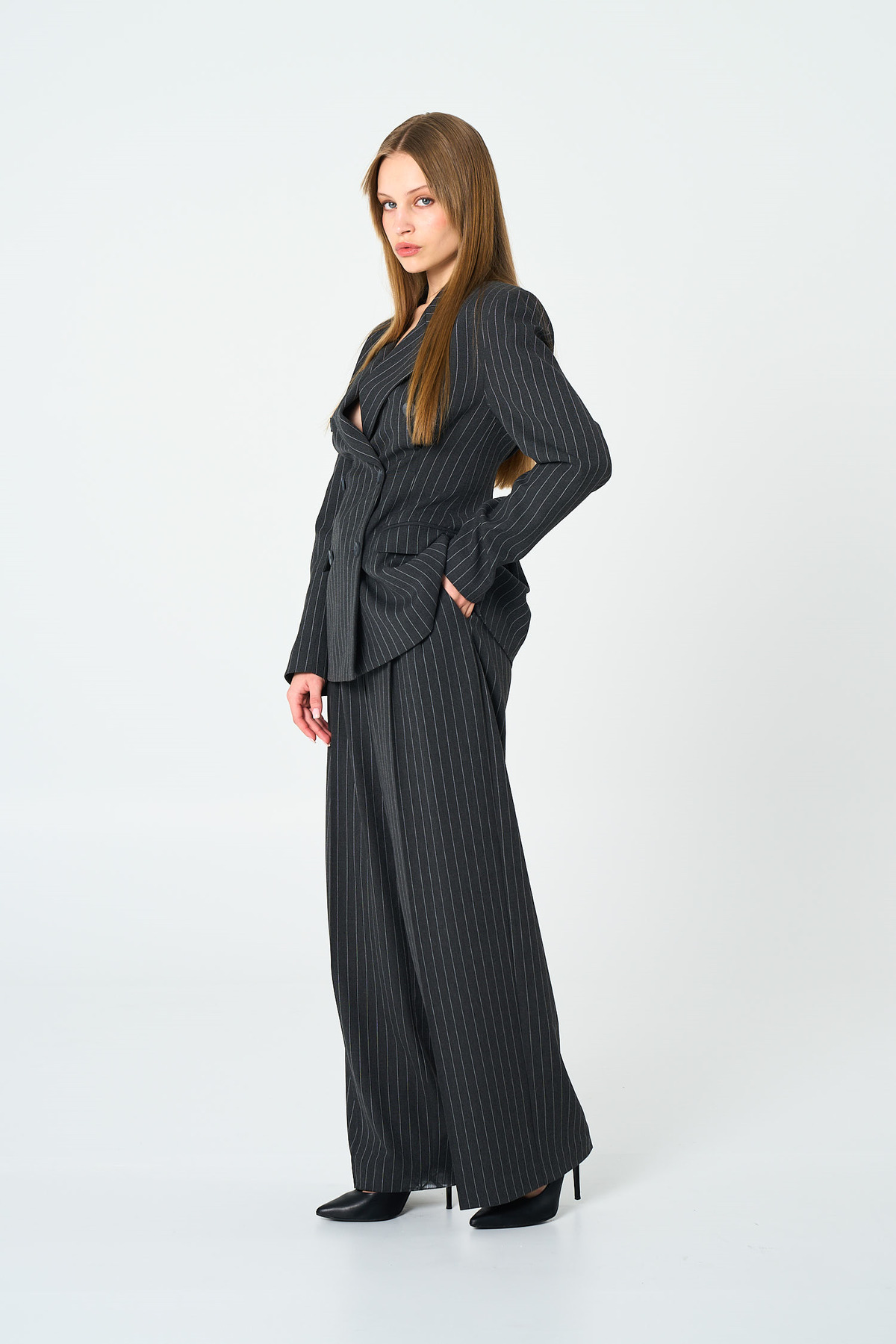 This model, which brings the modern tailoring concept of the Anthracite Collet Detailed Striped Blazer Thalure to the top, goes beyond the standards with its strong silhouette and unique details