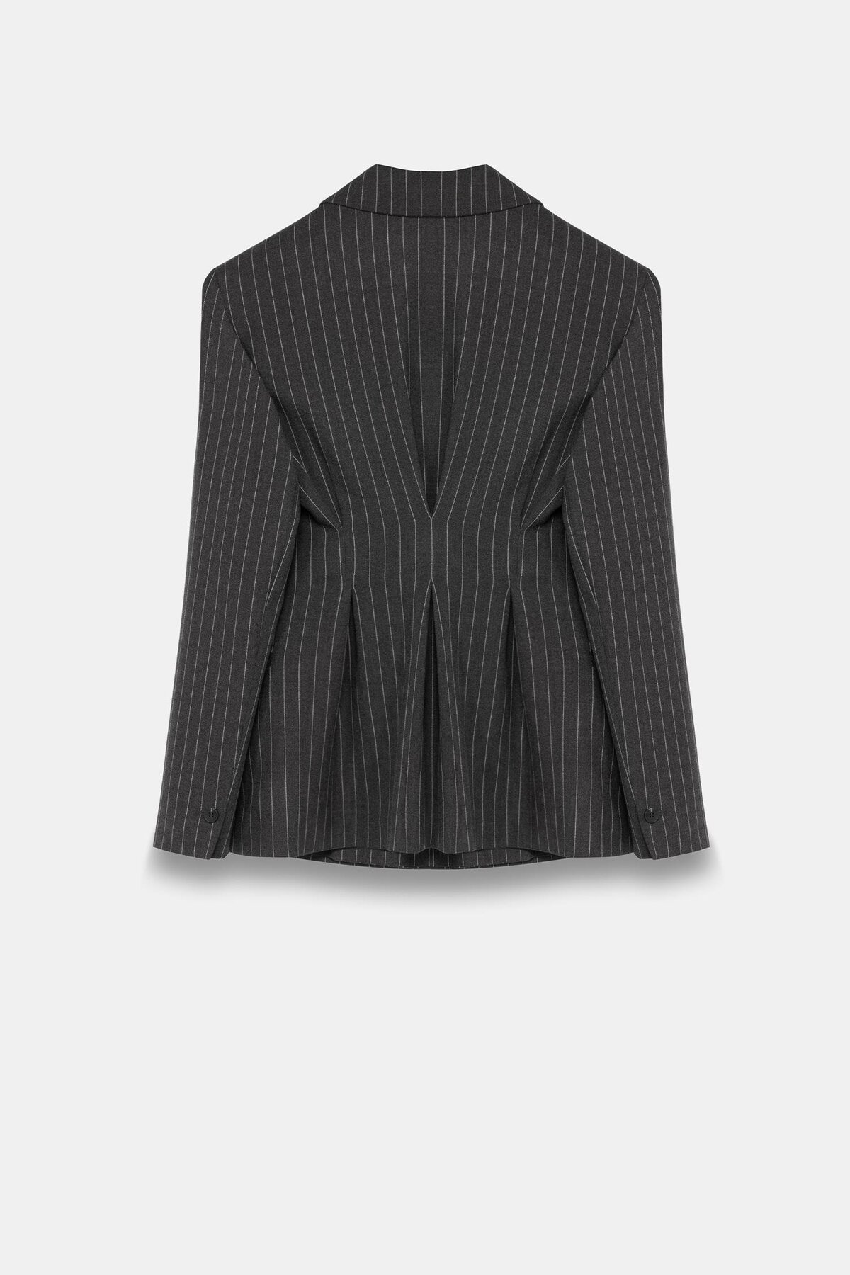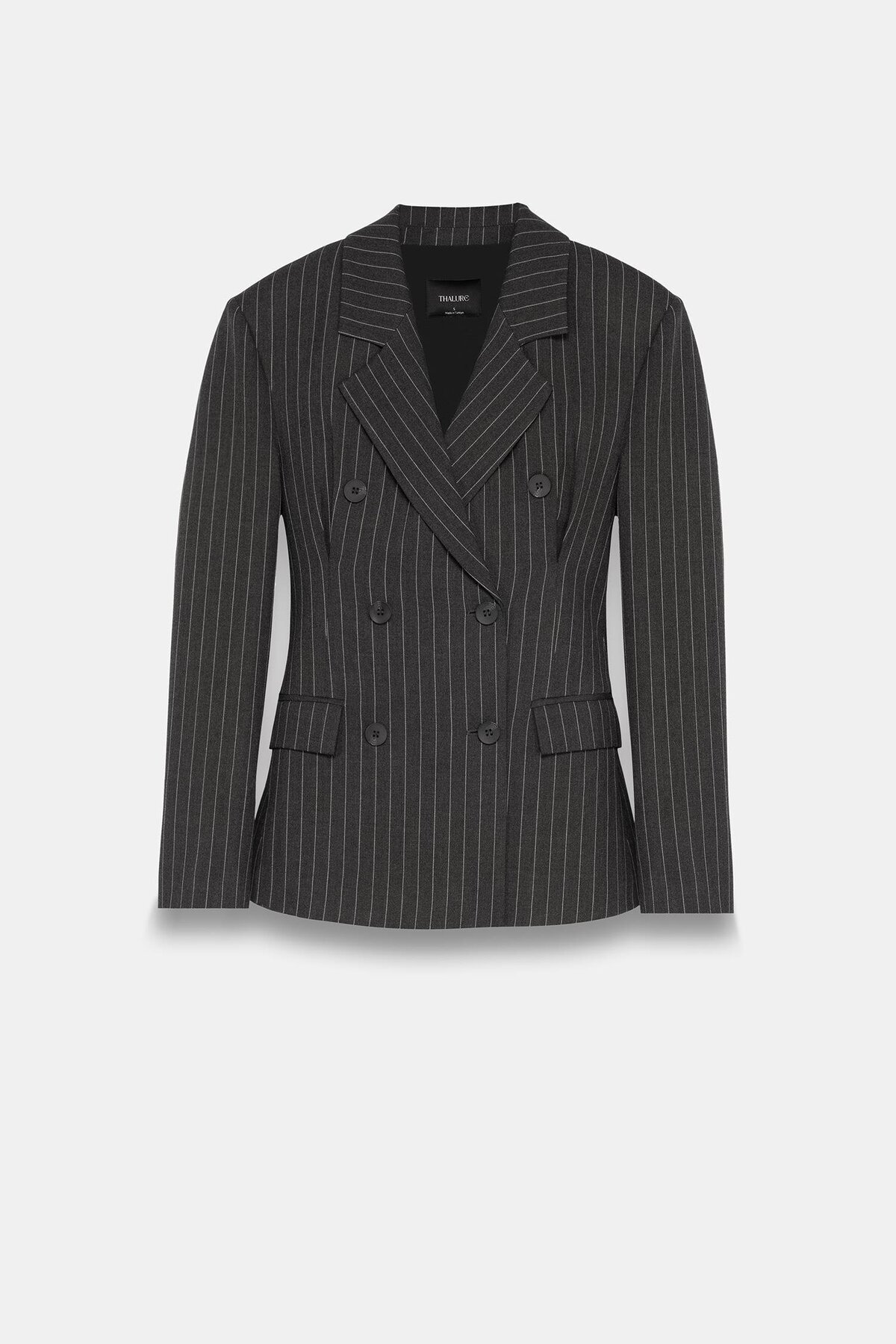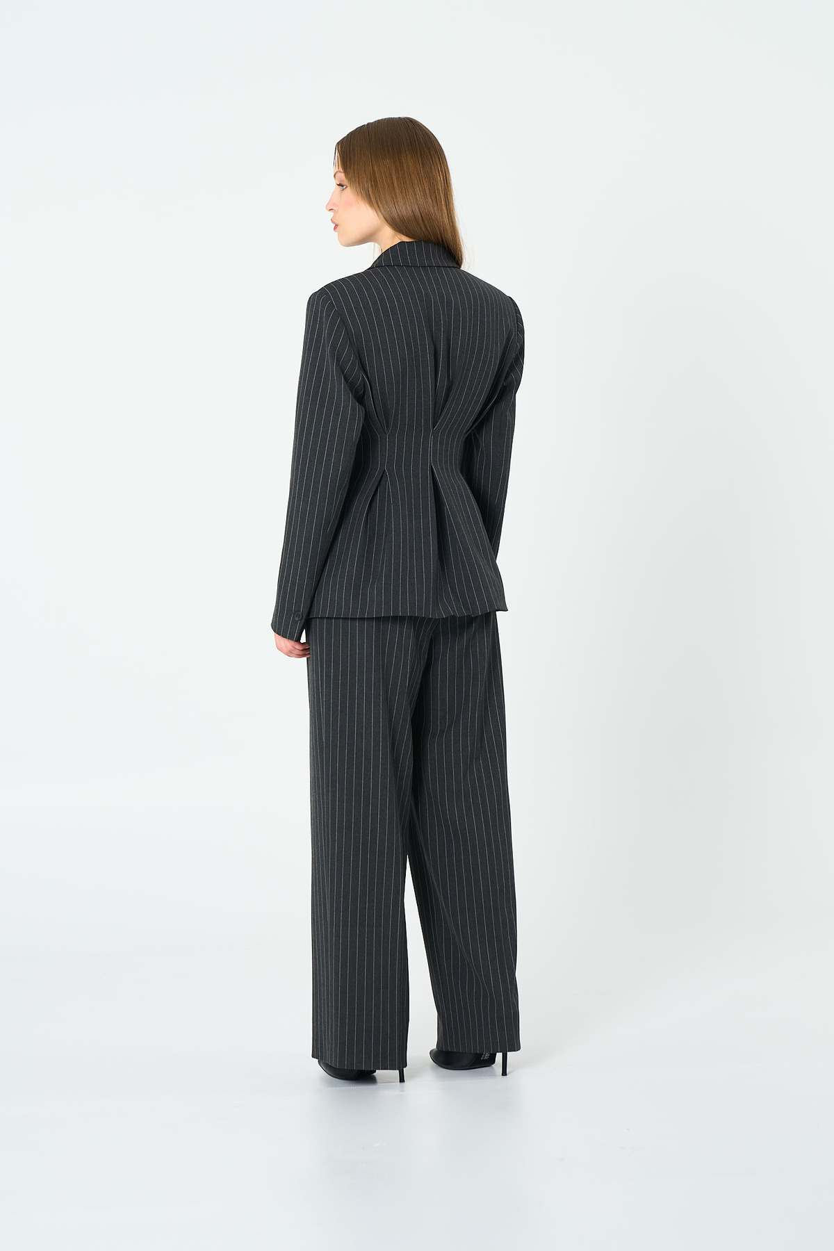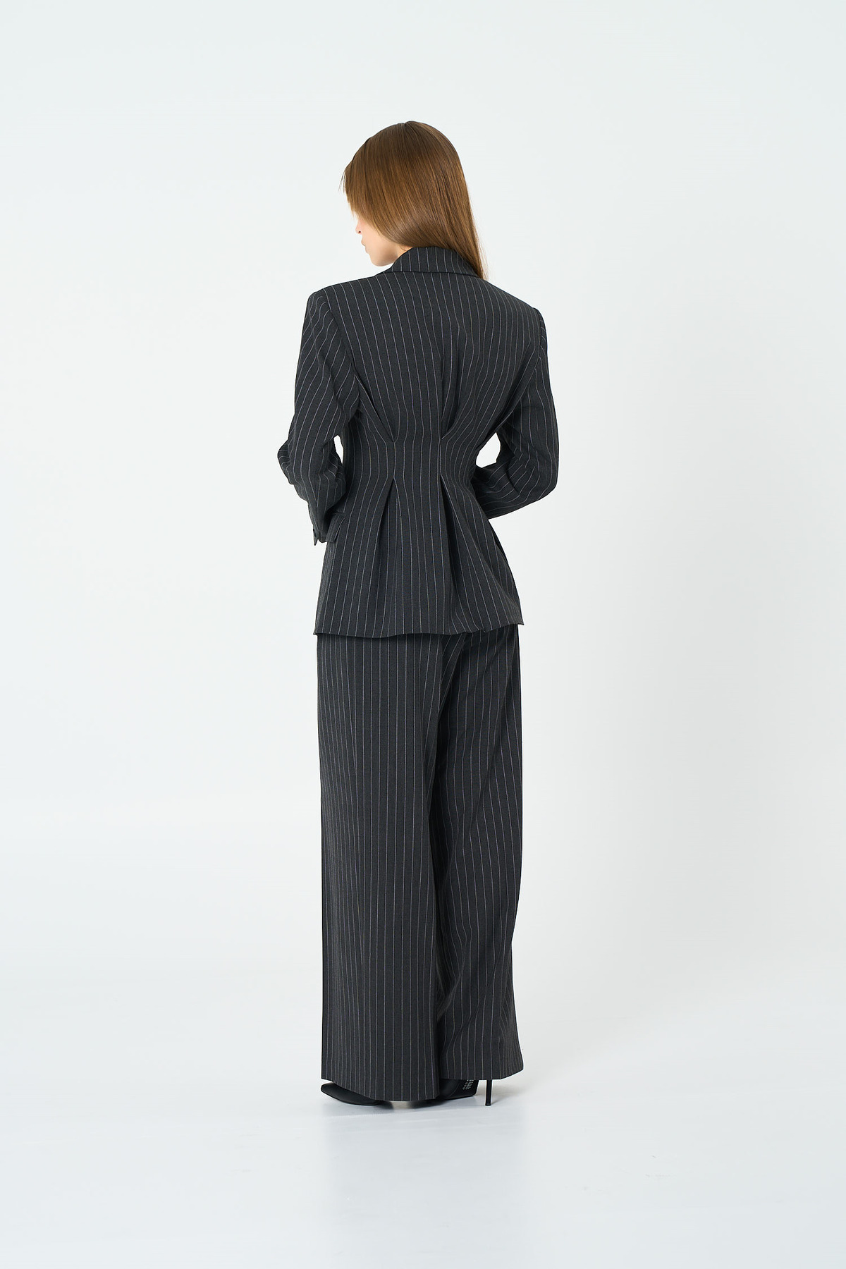 This model, which brings the modern tailoring concept of the Anthracite Collet Detailed Striped Blazer Thalure to the top, goes beyond the standards with its strong silhouette and unique details