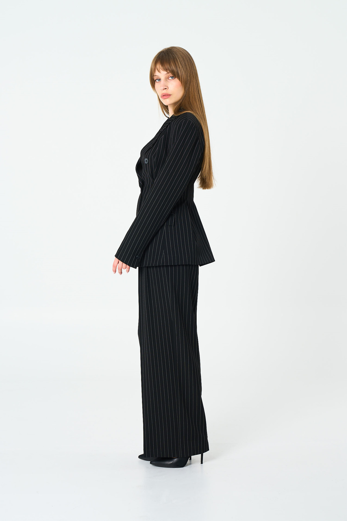 This model, which brings the modern tailoring concept of Black Collet Detailed Striped Blazer Thalure to the top, goes beyond the standards with its strong silhouette and unique details