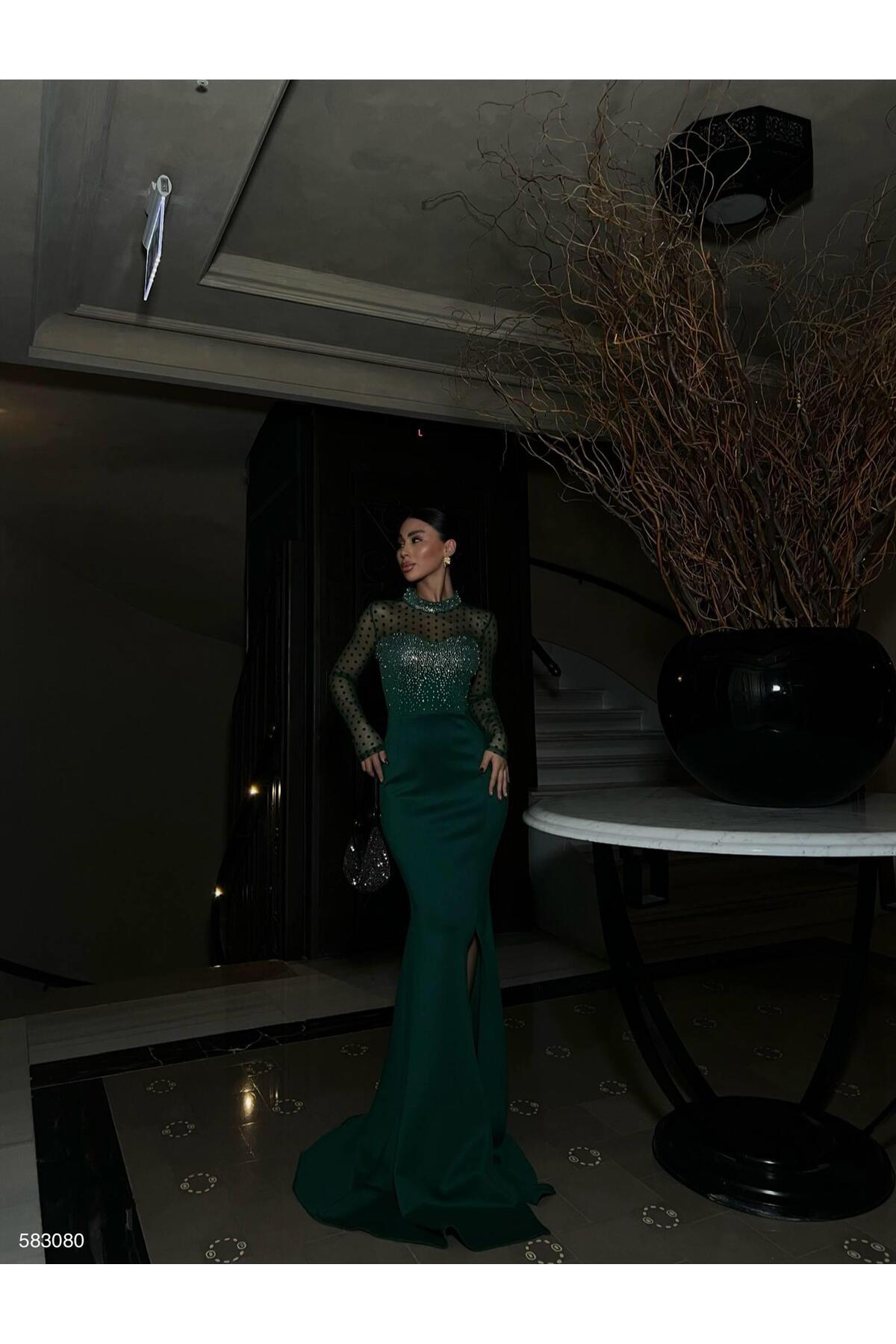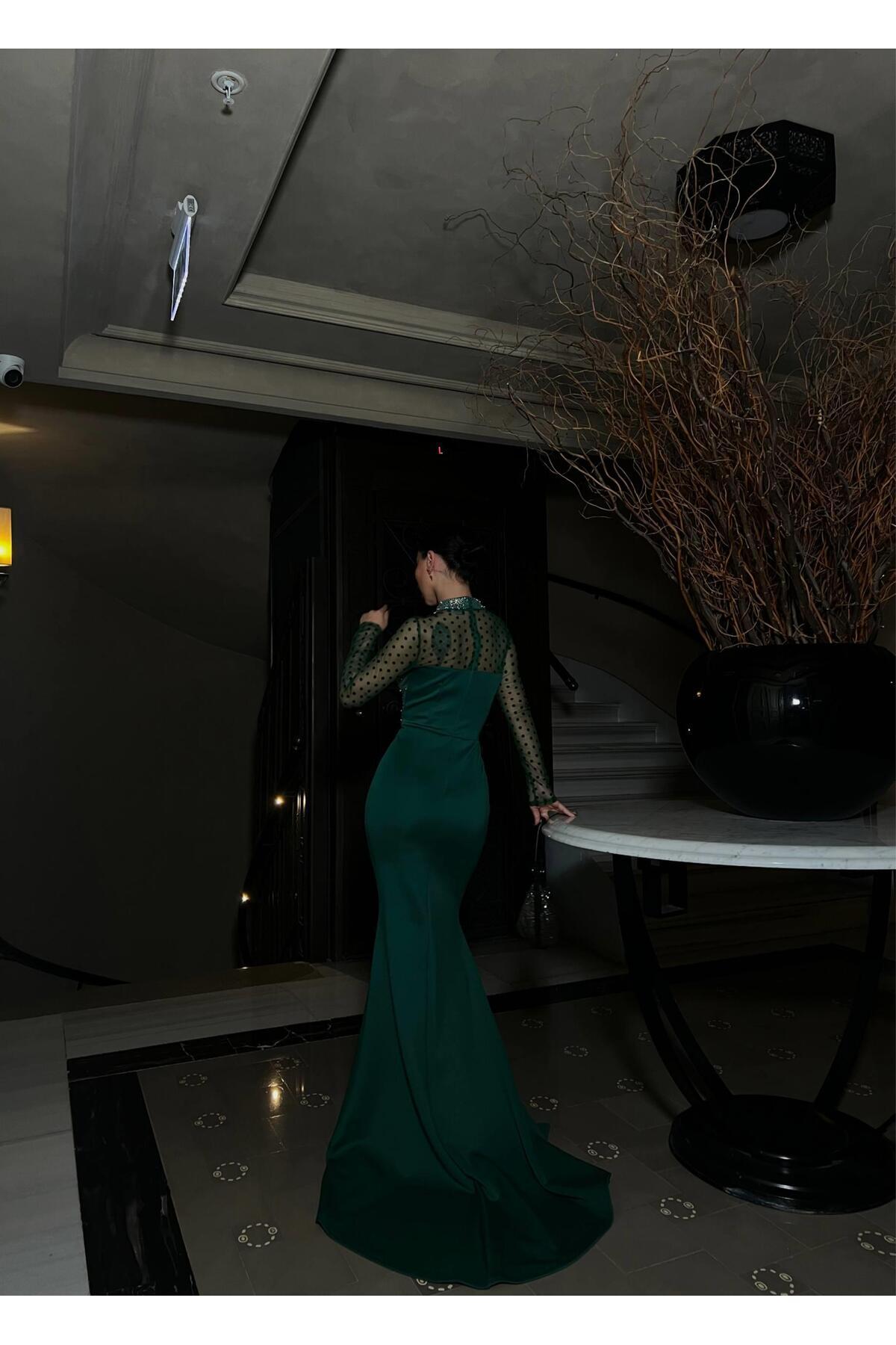 Modafeminen Asra Tulle Detail Shimmering Evening Dress EMERALD 583080 | ByTR