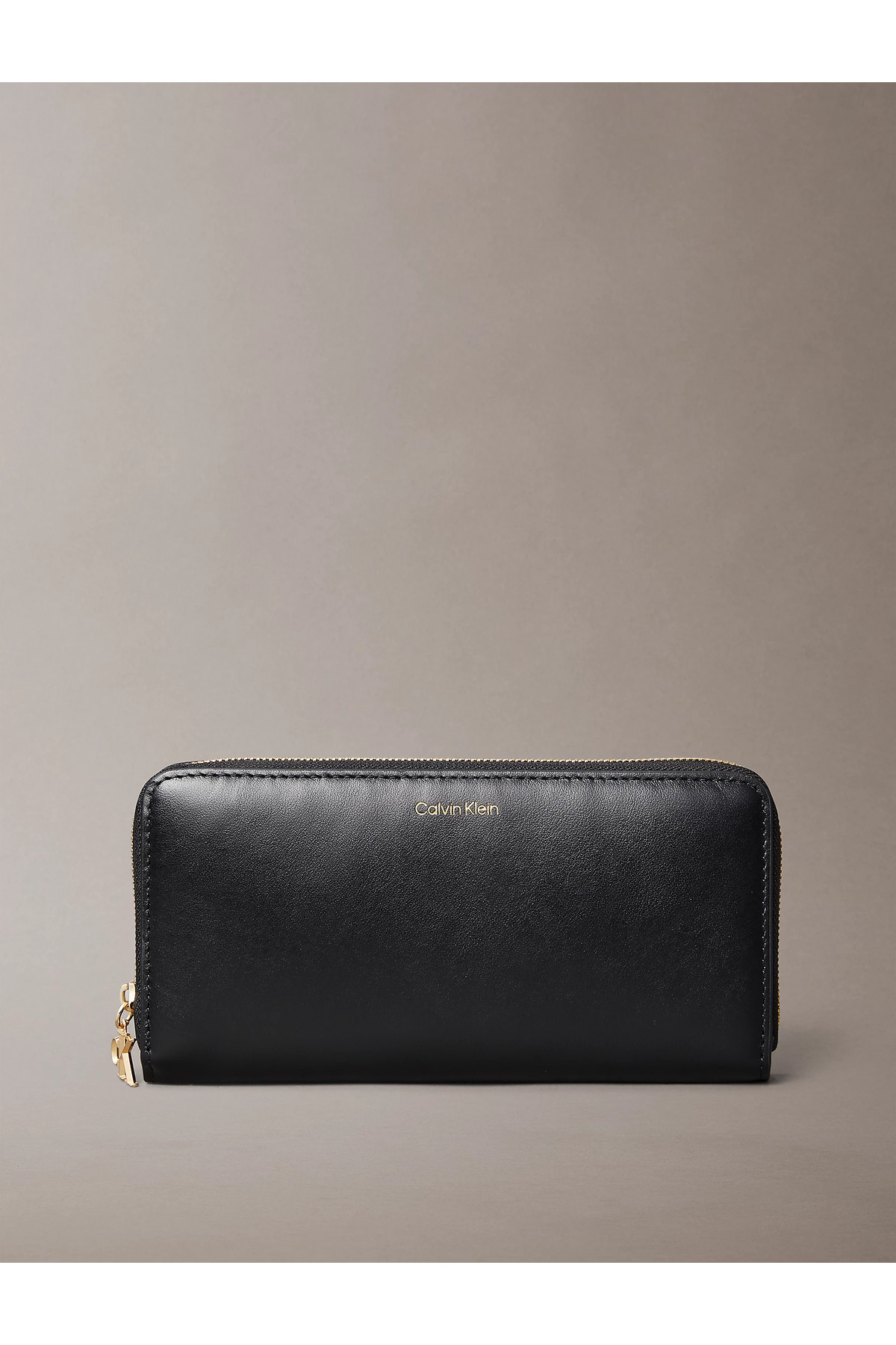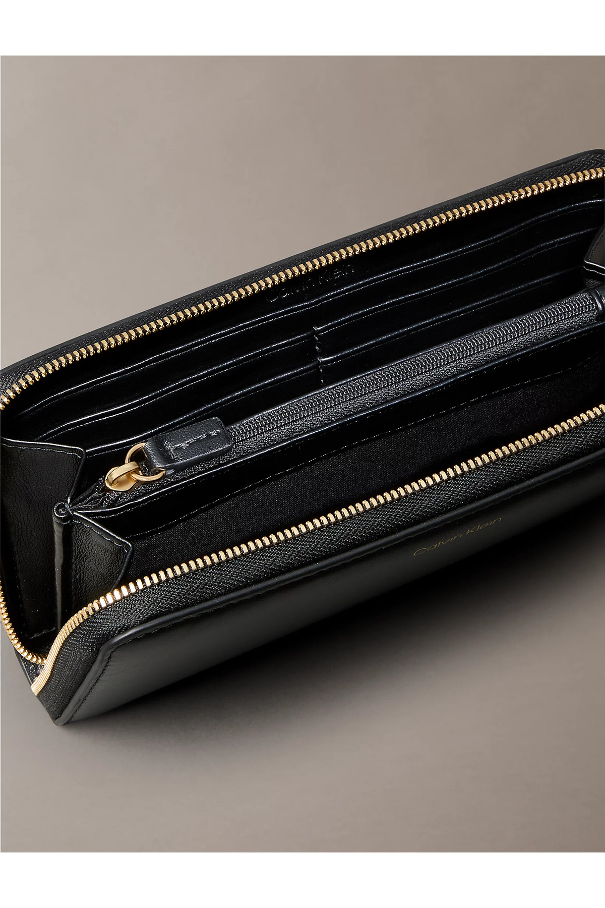 zipper closure • inner zipper pocket • multiple card slots • monogram logo hardware • Calvin Klein logo • comes in a box.