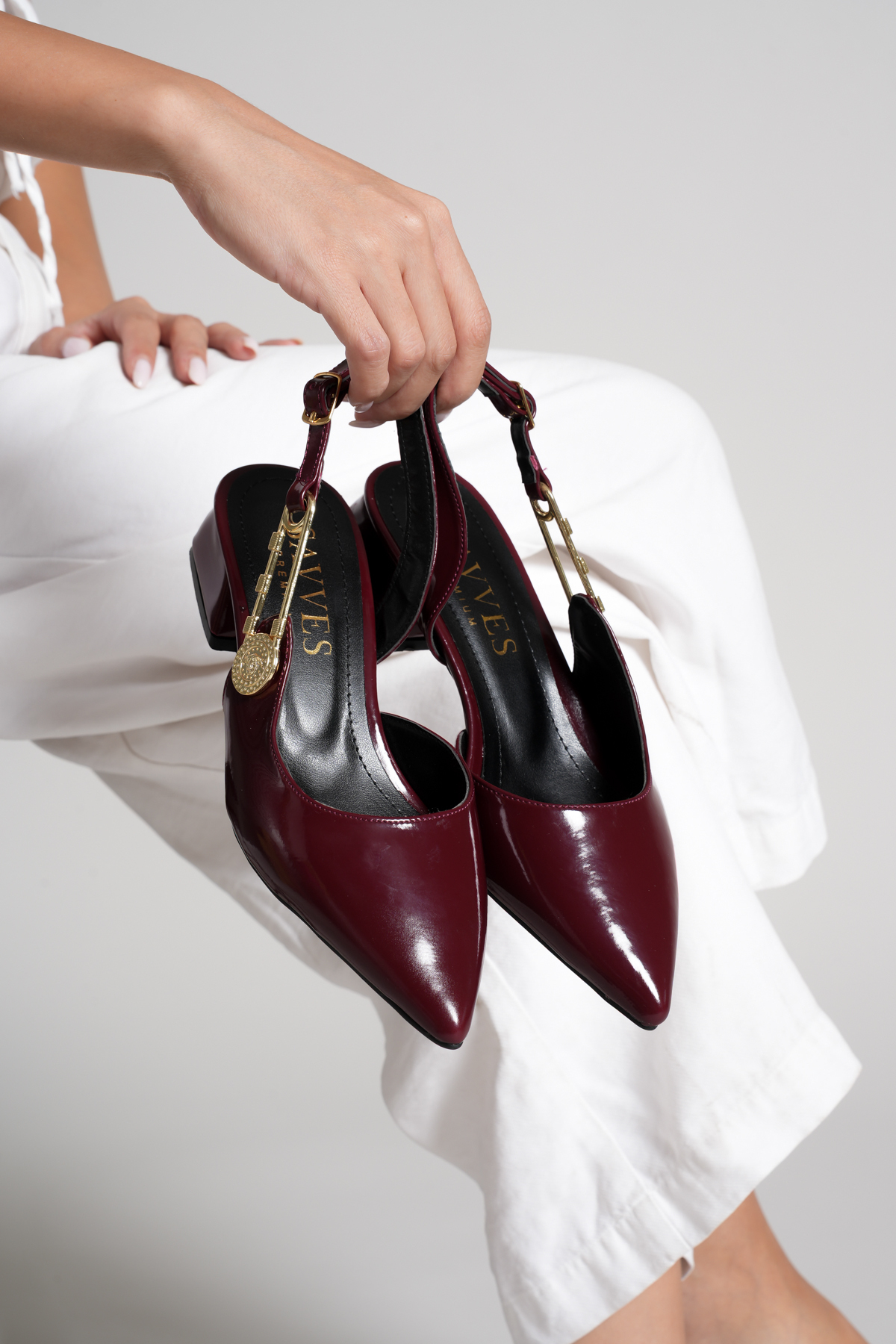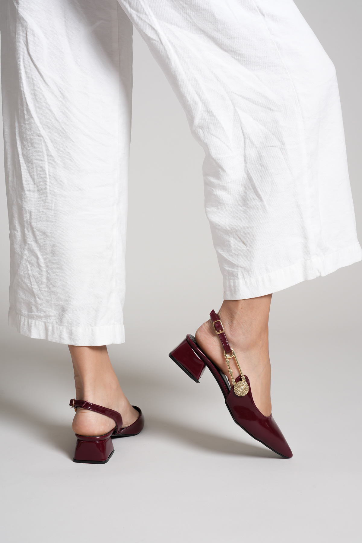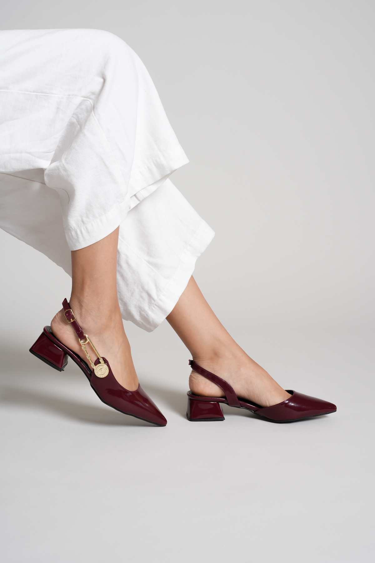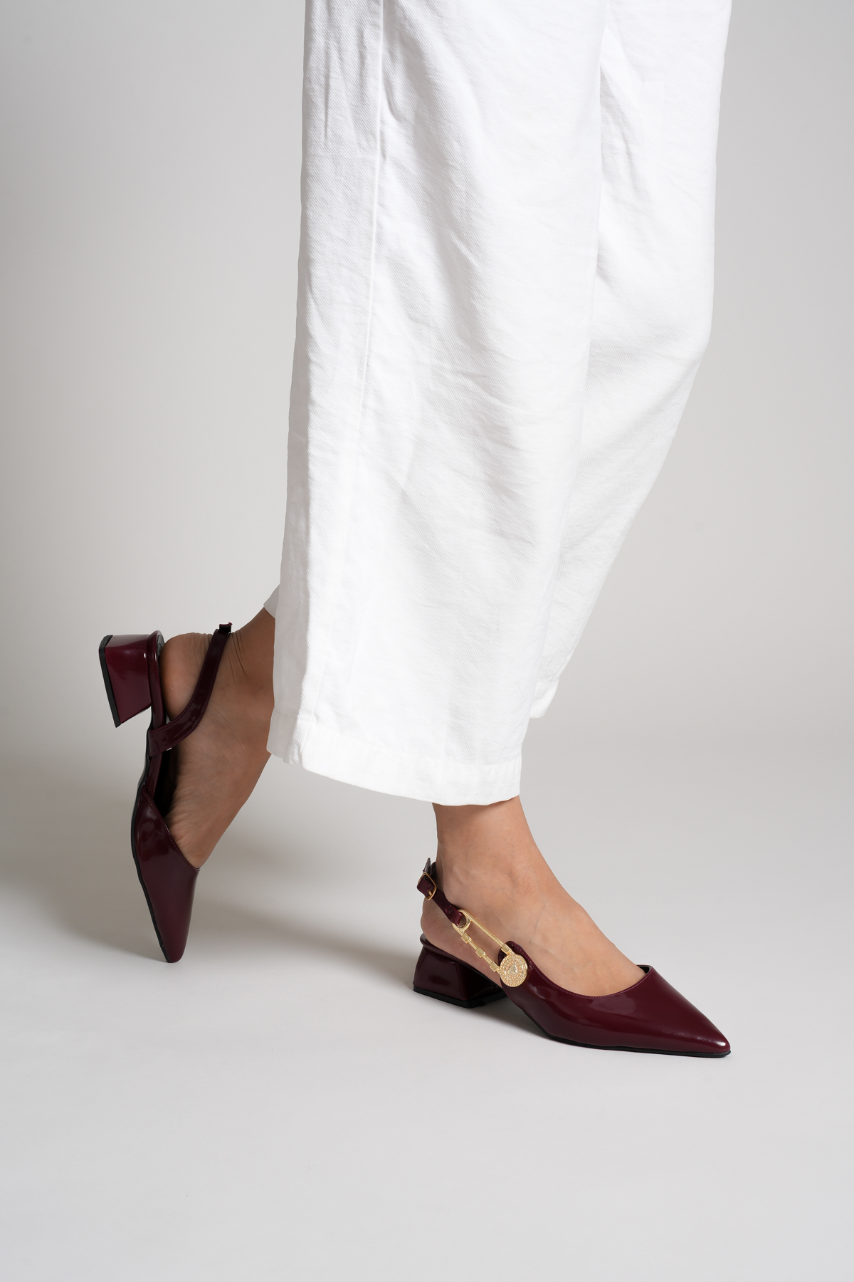 Savves Women's Claret Red Side Buckle Detailed Open-Back Pointed Toe Casual Heels | ByTR