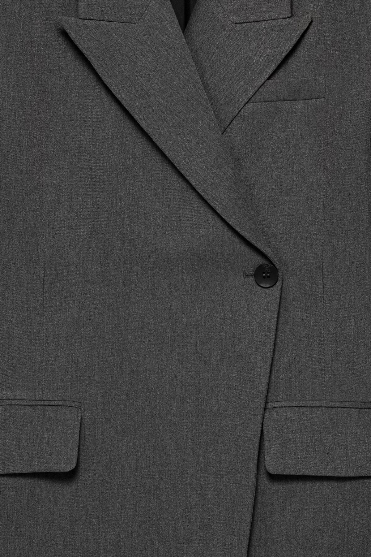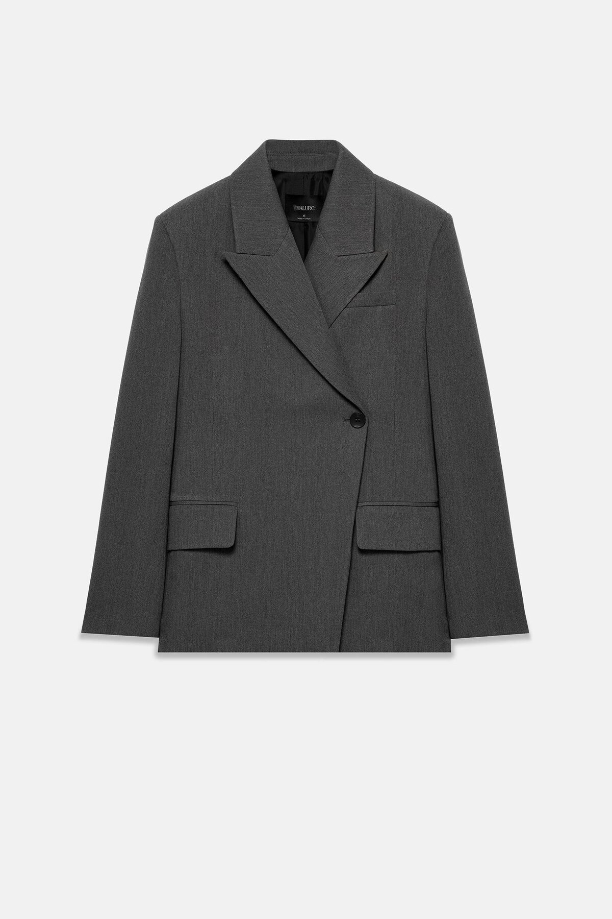Anthracite Asymmetric Wrap Blazer Thalure adds a dynamic and modern piece to your wardrobe by breaking traditional tailoring rules