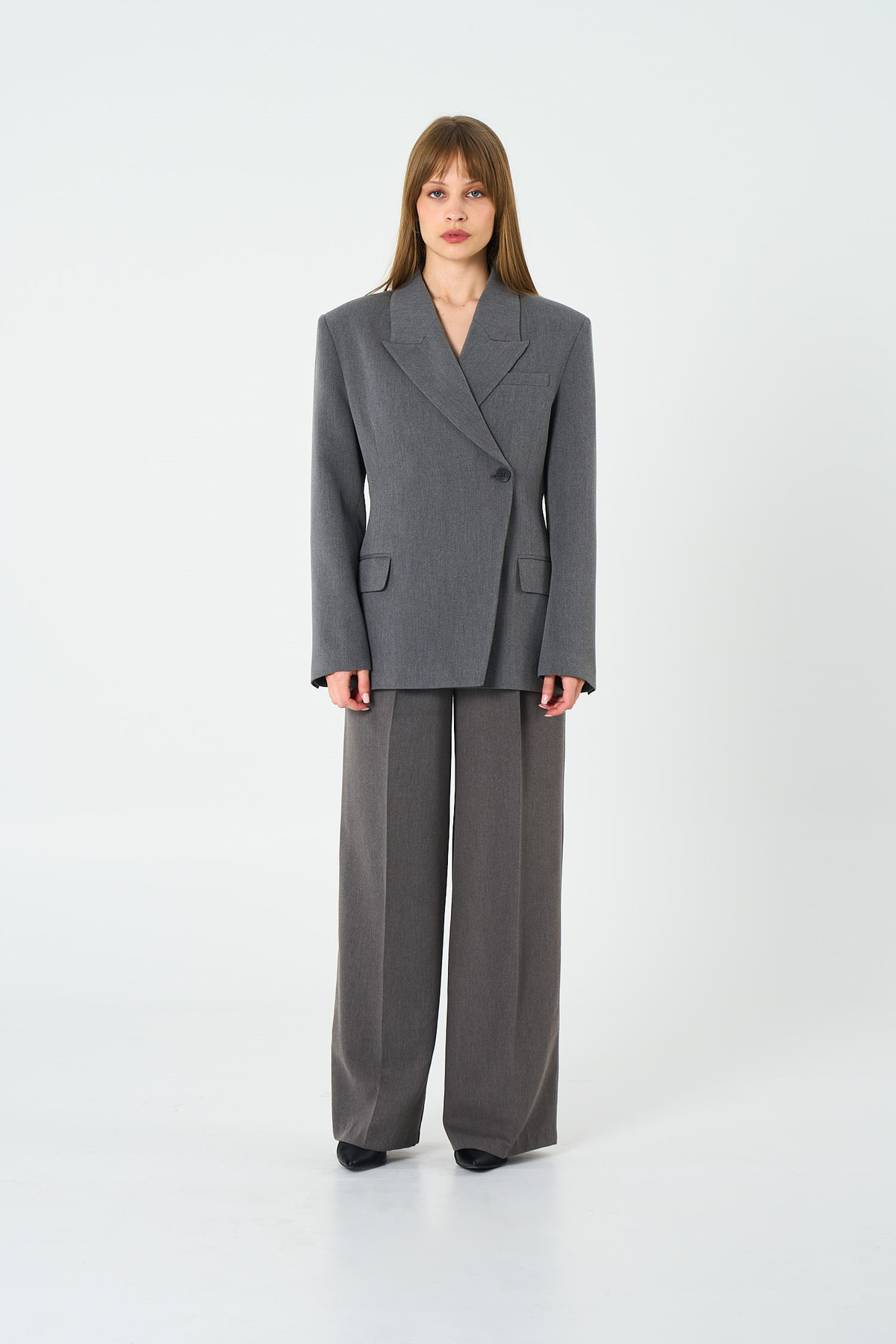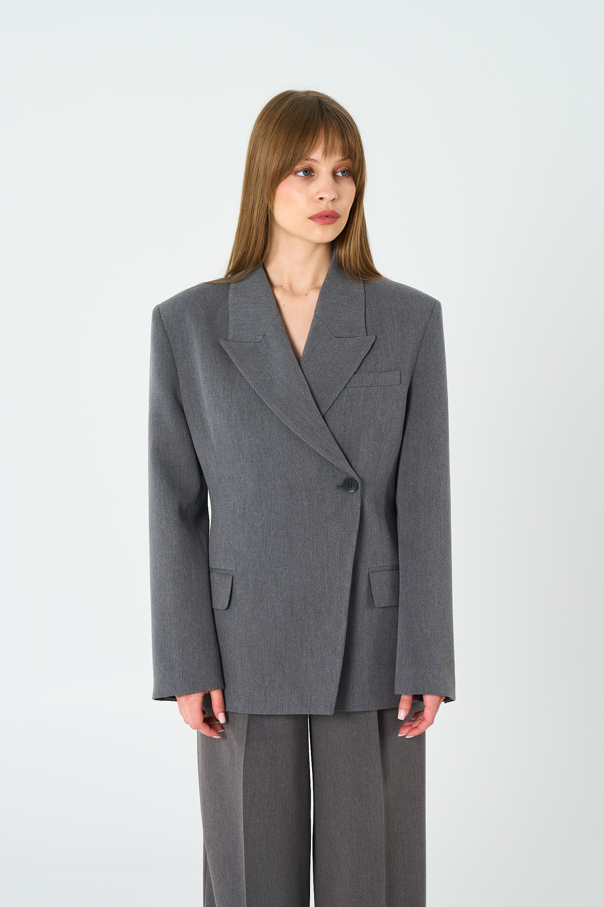 Disruptive Asymmetric Cut: Asymmetric double-breasted closure gives an unexpected and modern character.