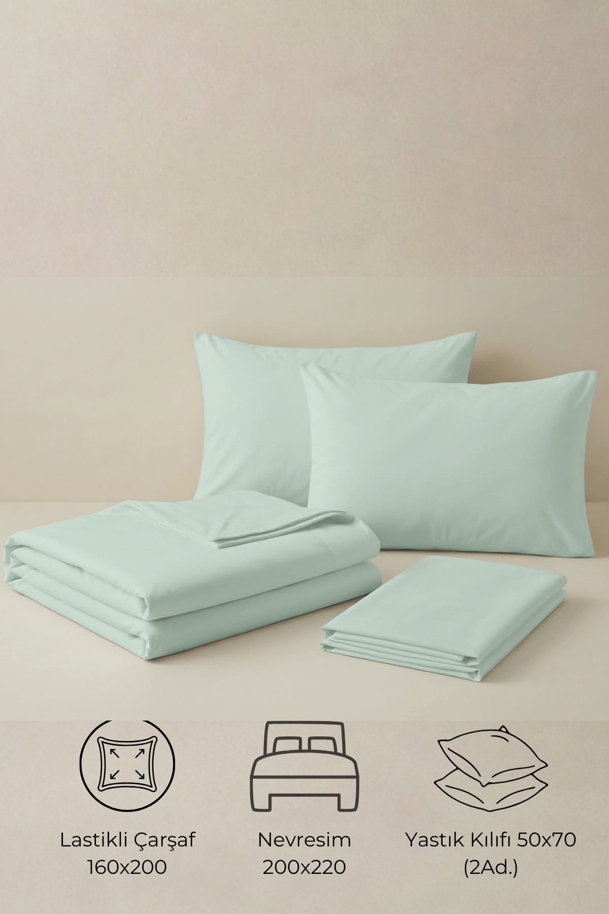 Camelia Double Flat Ranforce Duvet Cover Set - Mint Green 100% Cotton