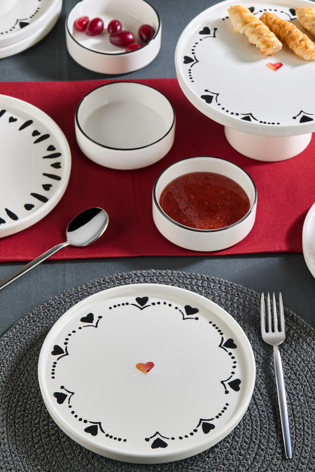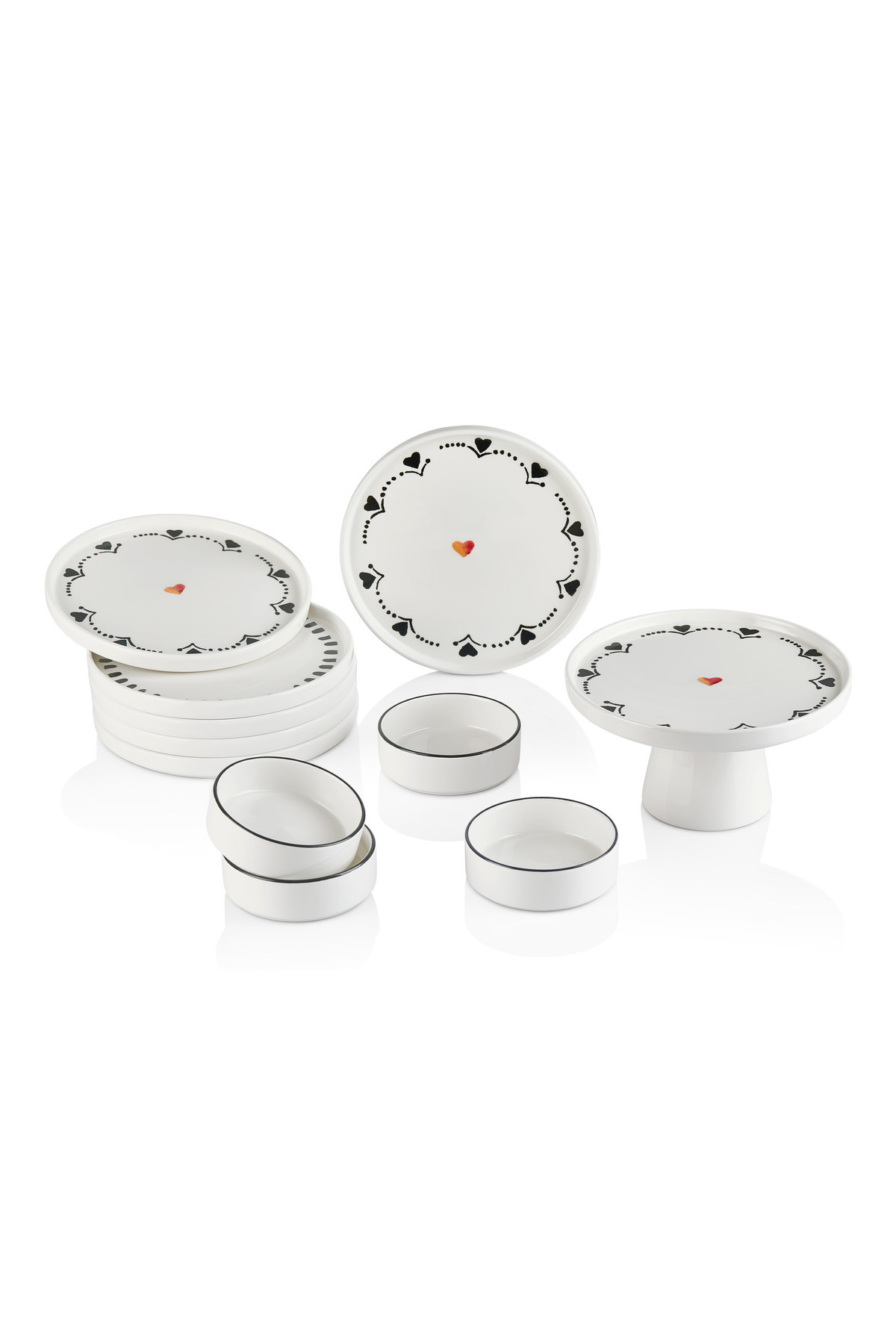 Kitchen Life 11-Piece Black Hearts Breakfast Set for 6 Serving Set