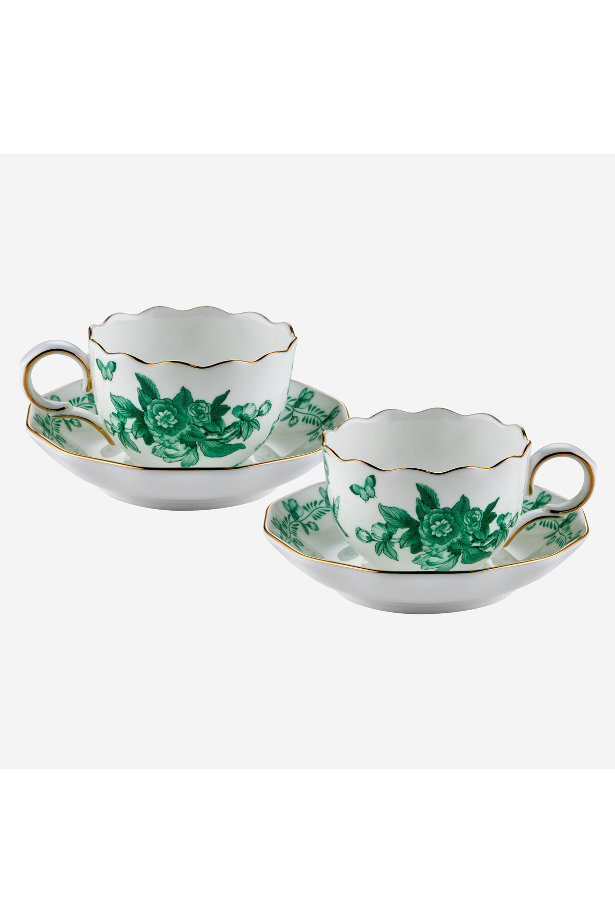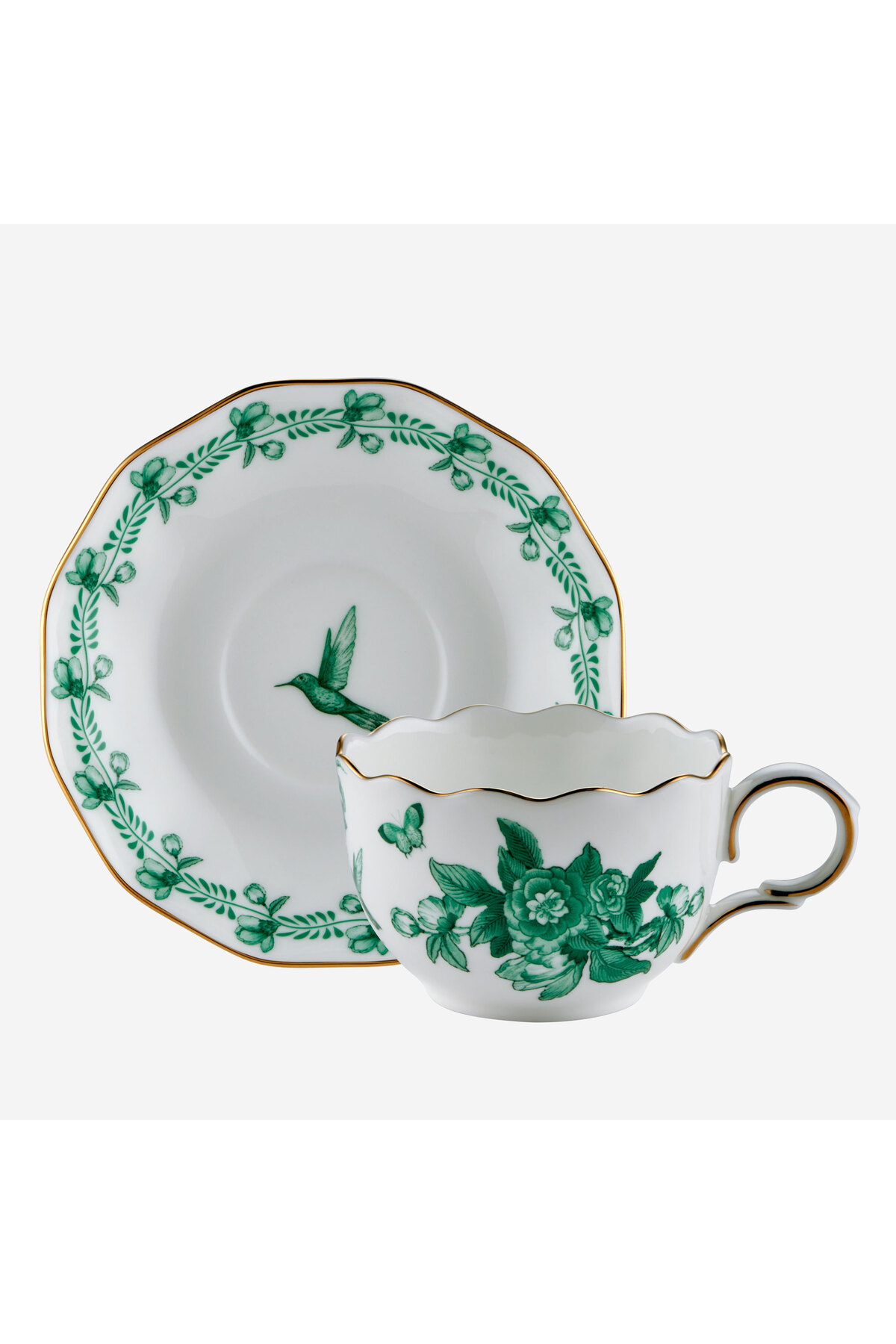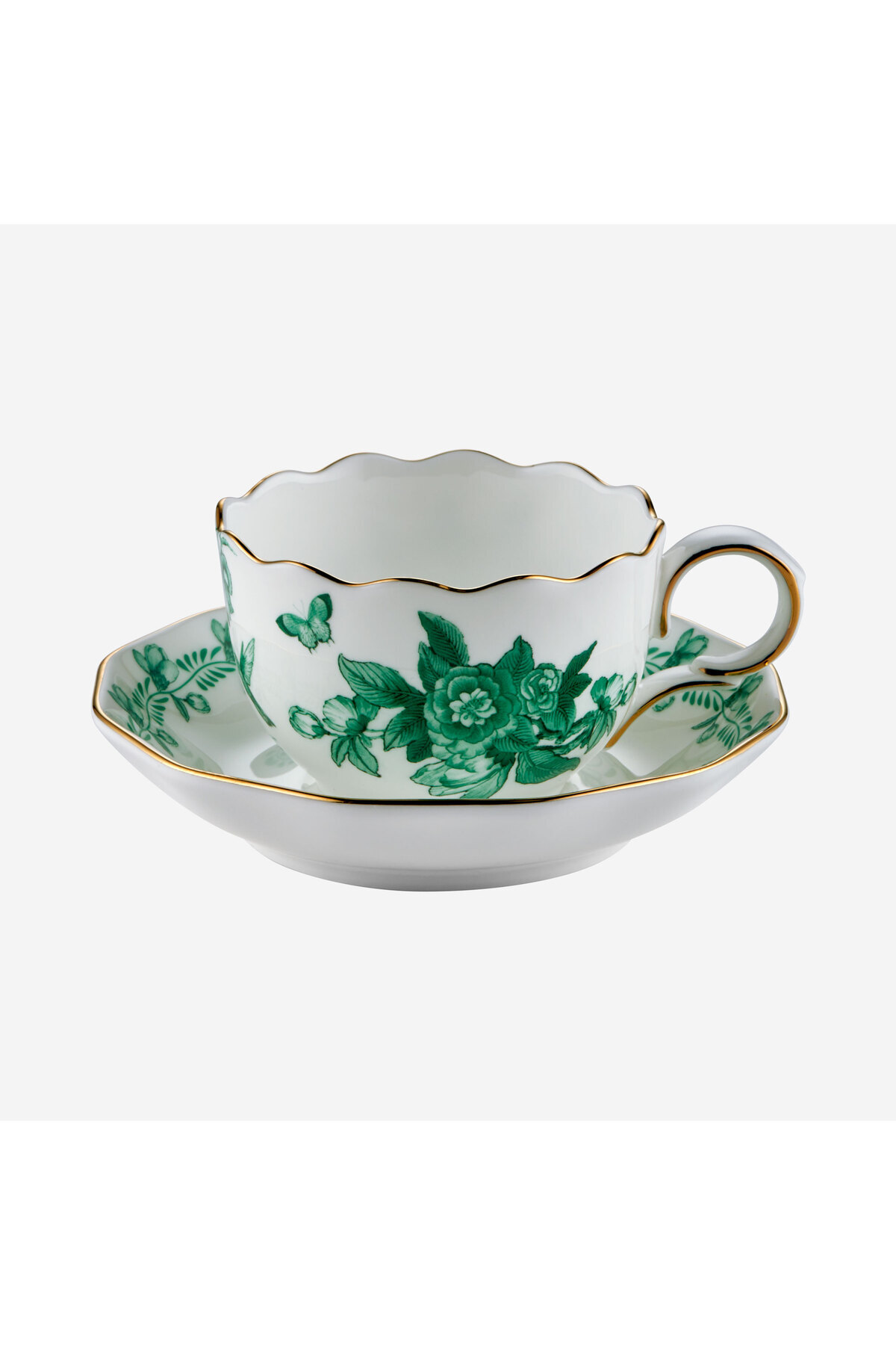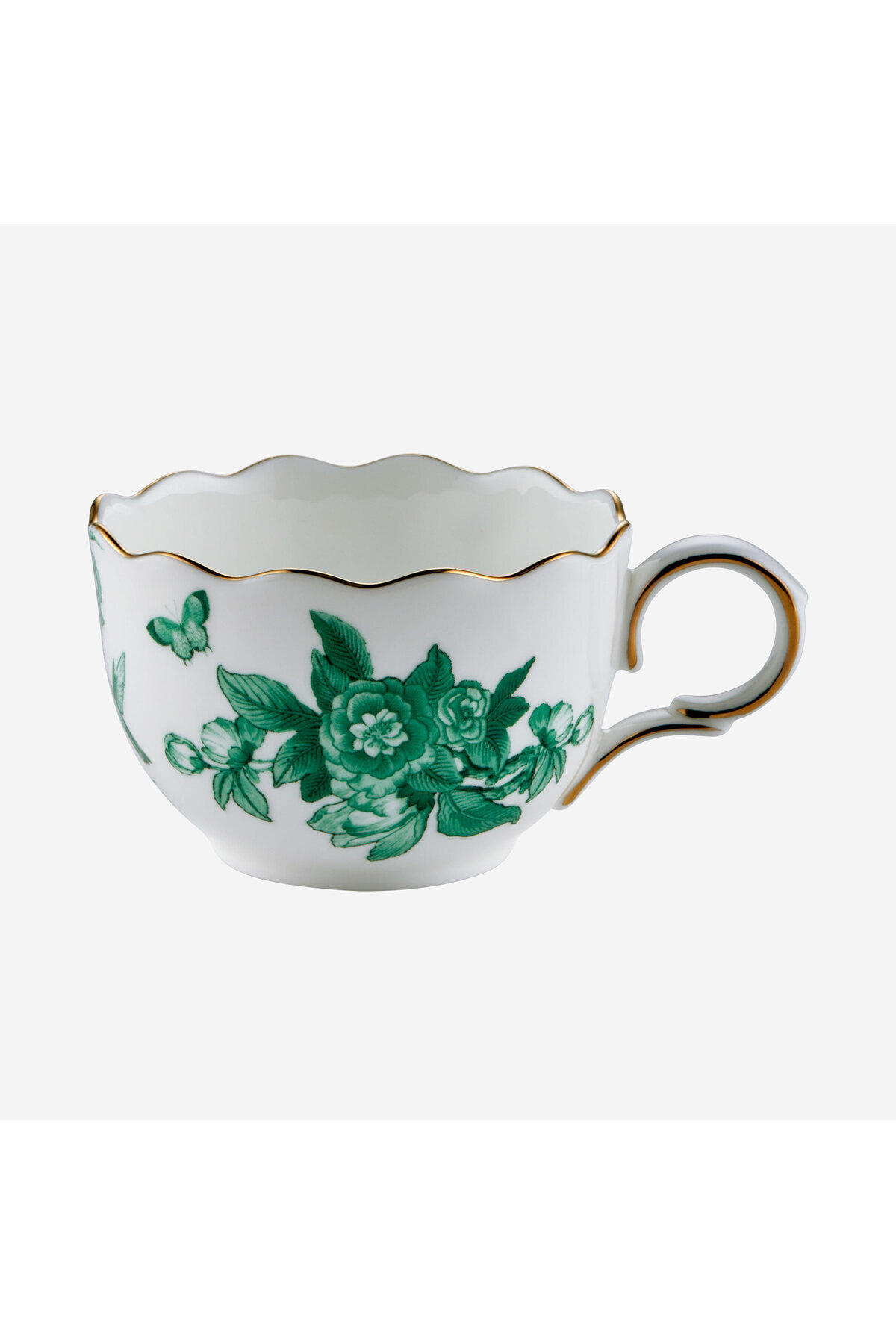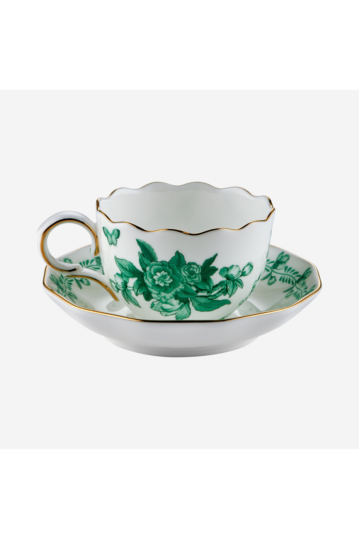 Its thin gold-gilt edge meets delicate green flower and butterfly patterns, offering a stylish aesthetic inspired by nature.