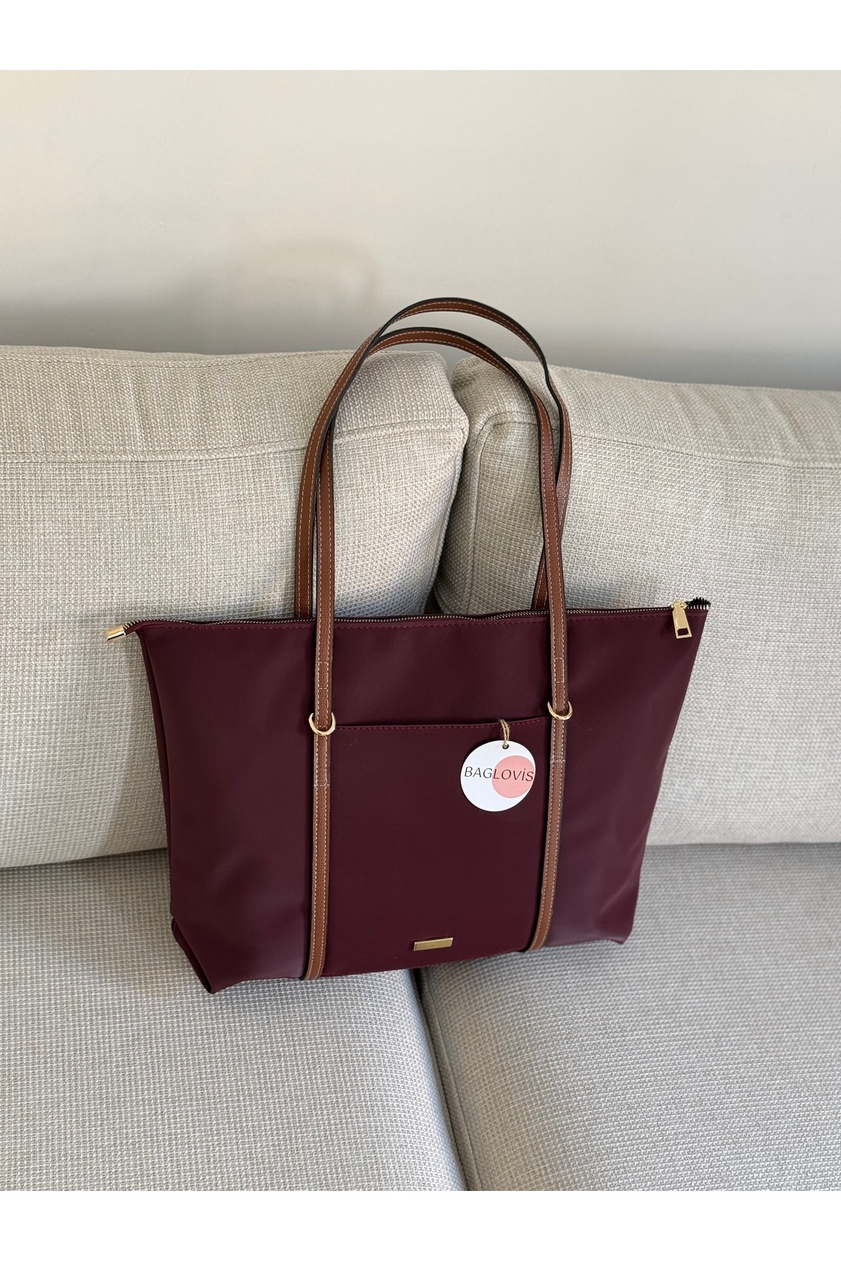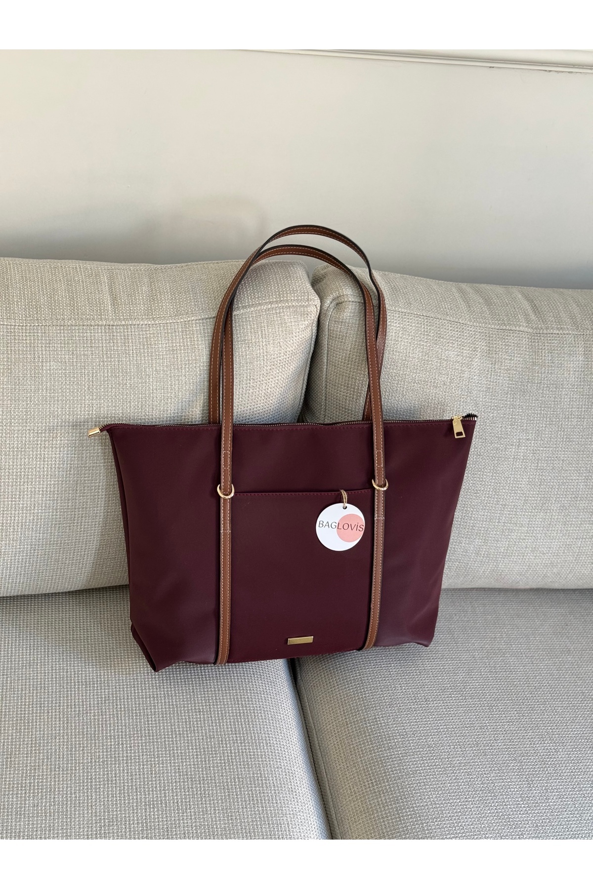 BAGLOVİS WOMEN'S LARGE BURGUNDY SHOULDER BAG WITH LOOP STRAPS EN42 BOY32 | ByTR