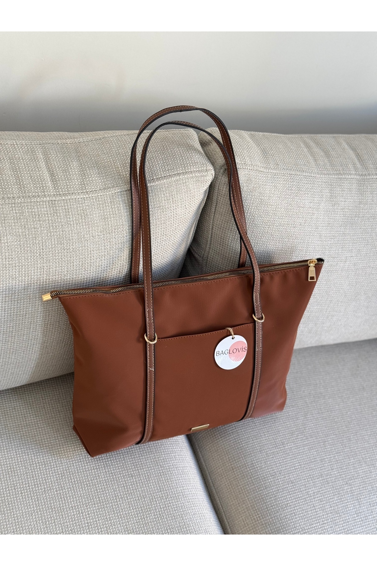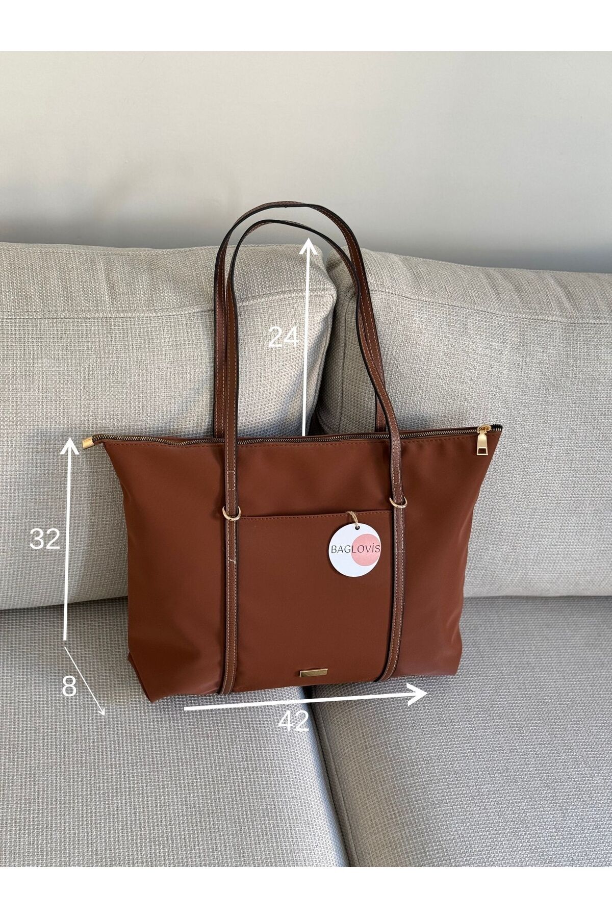 BAGLOVİS WOMEN 'S LARGE TAN SHOULDER BAG WITH LOOP STRAPS EN42 BOY32 | ByTR