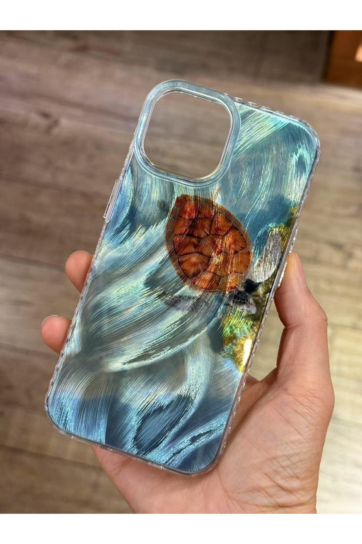 iPhone 13 - iPhone 14 - It protects your phone in a stylish way with the holographic Caretta turtle pattern specially designed for iPhone 15 models.