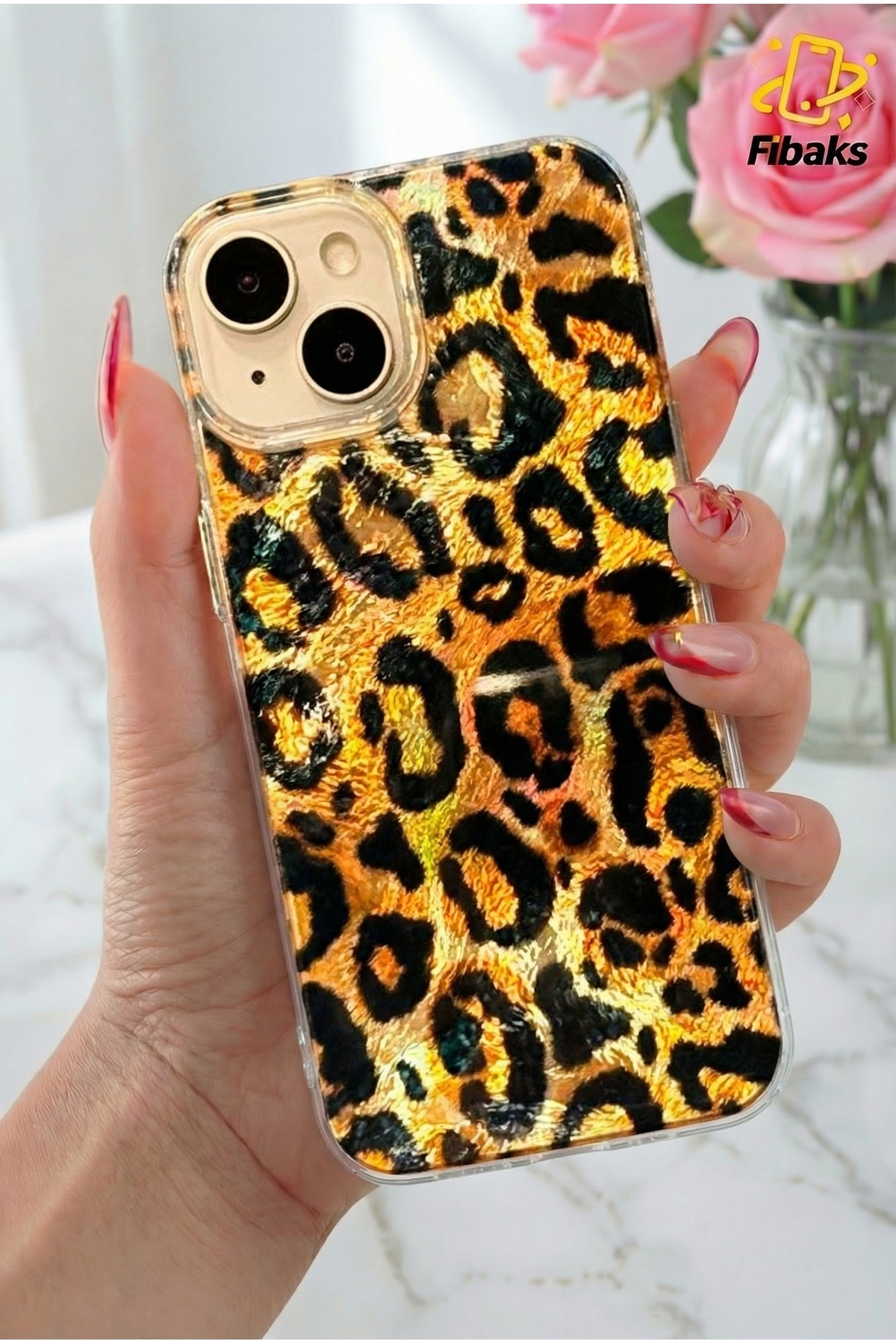Stylishly protects your phone with a brown leopard print hologram case specially designed for iPhone 13, iPhone 14 and iPhone 15.