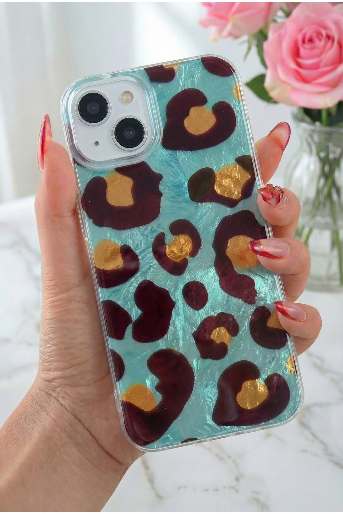 Blue leopard print case with hologram specially designed for iPhone 13, 14 and 15 models offers an aesthetic look while protecting your phone in a stylish way.