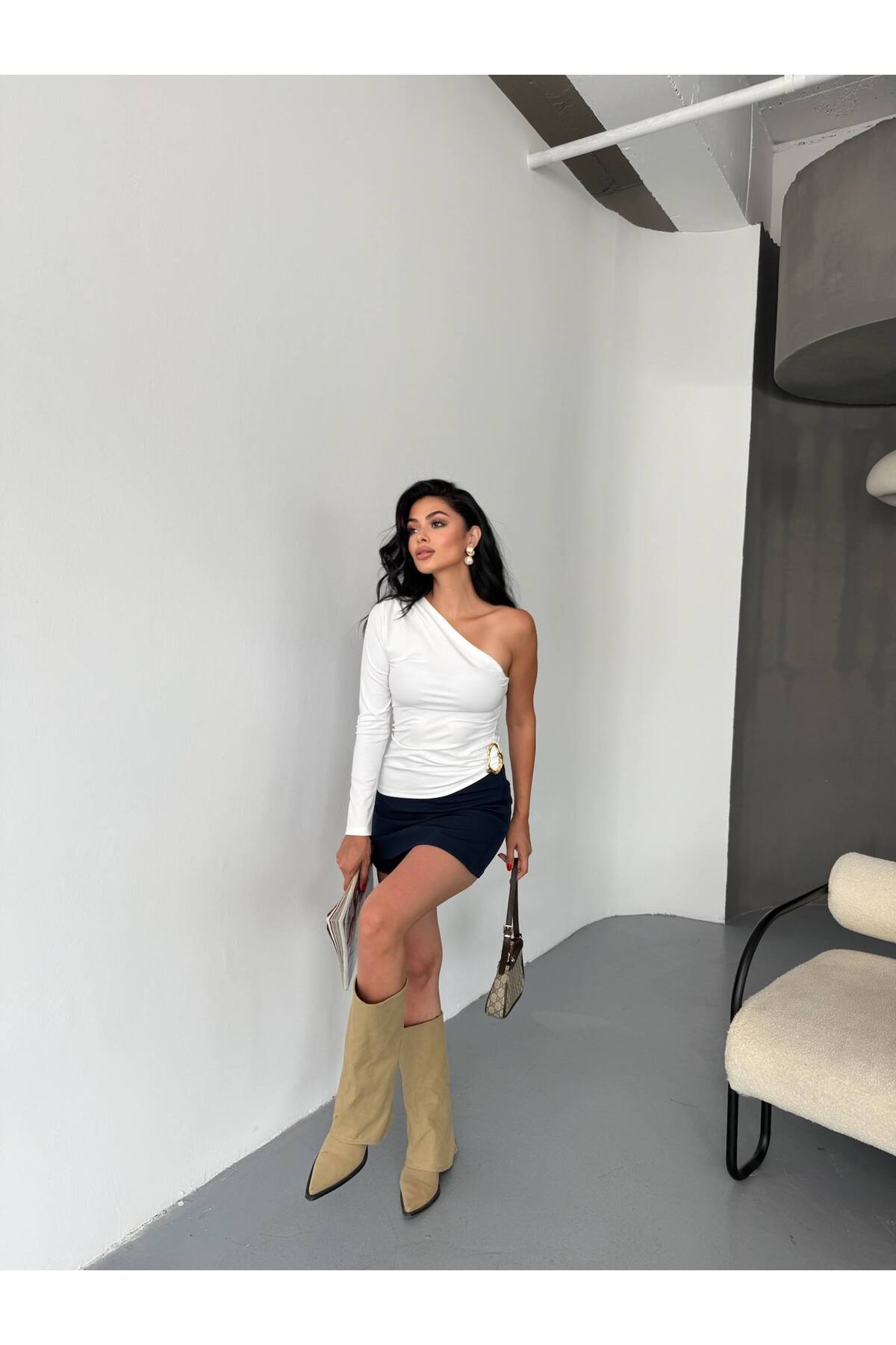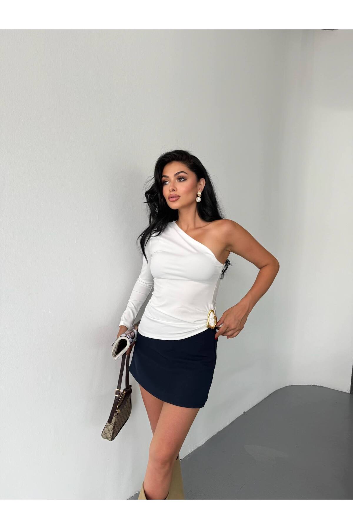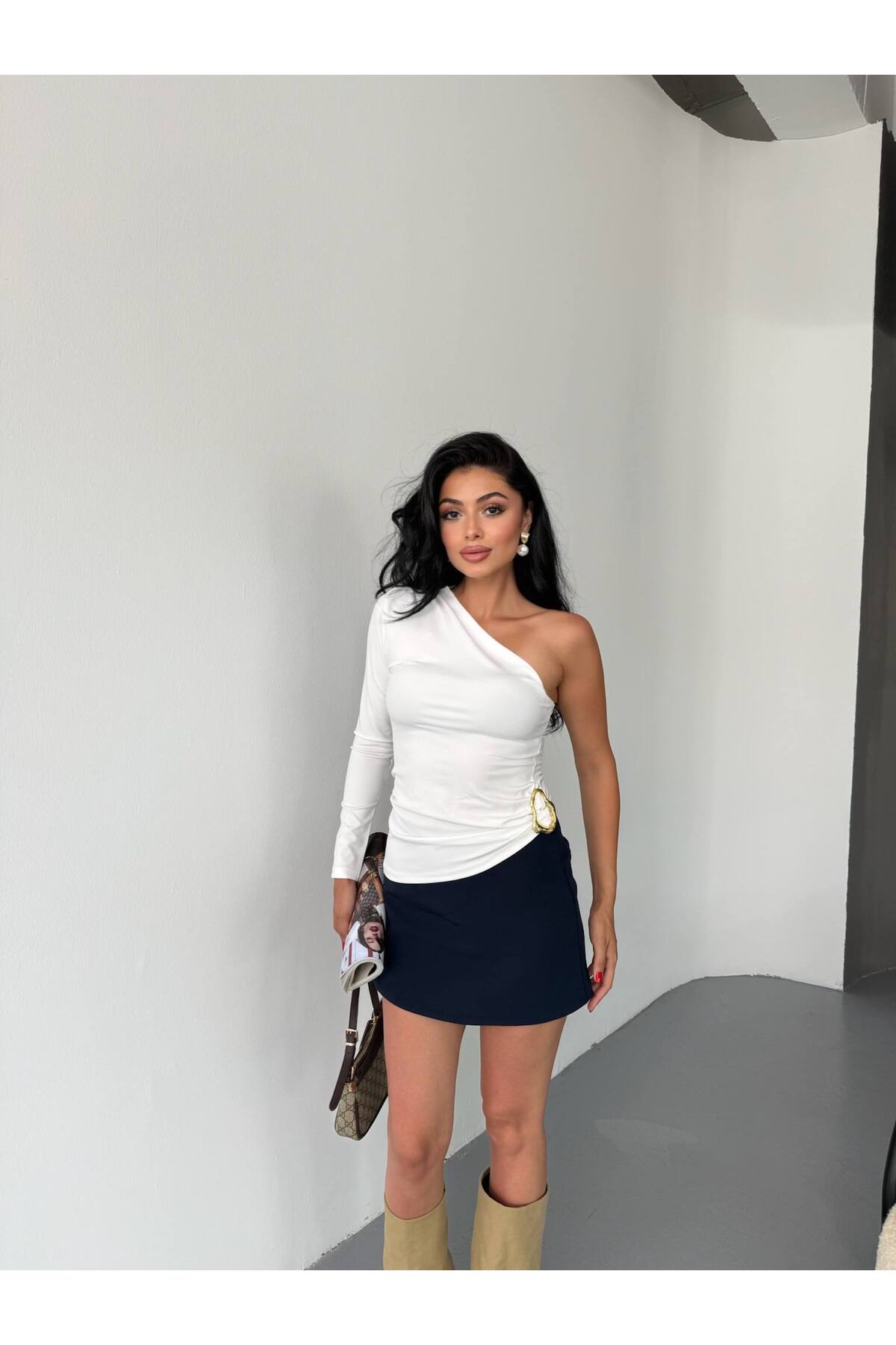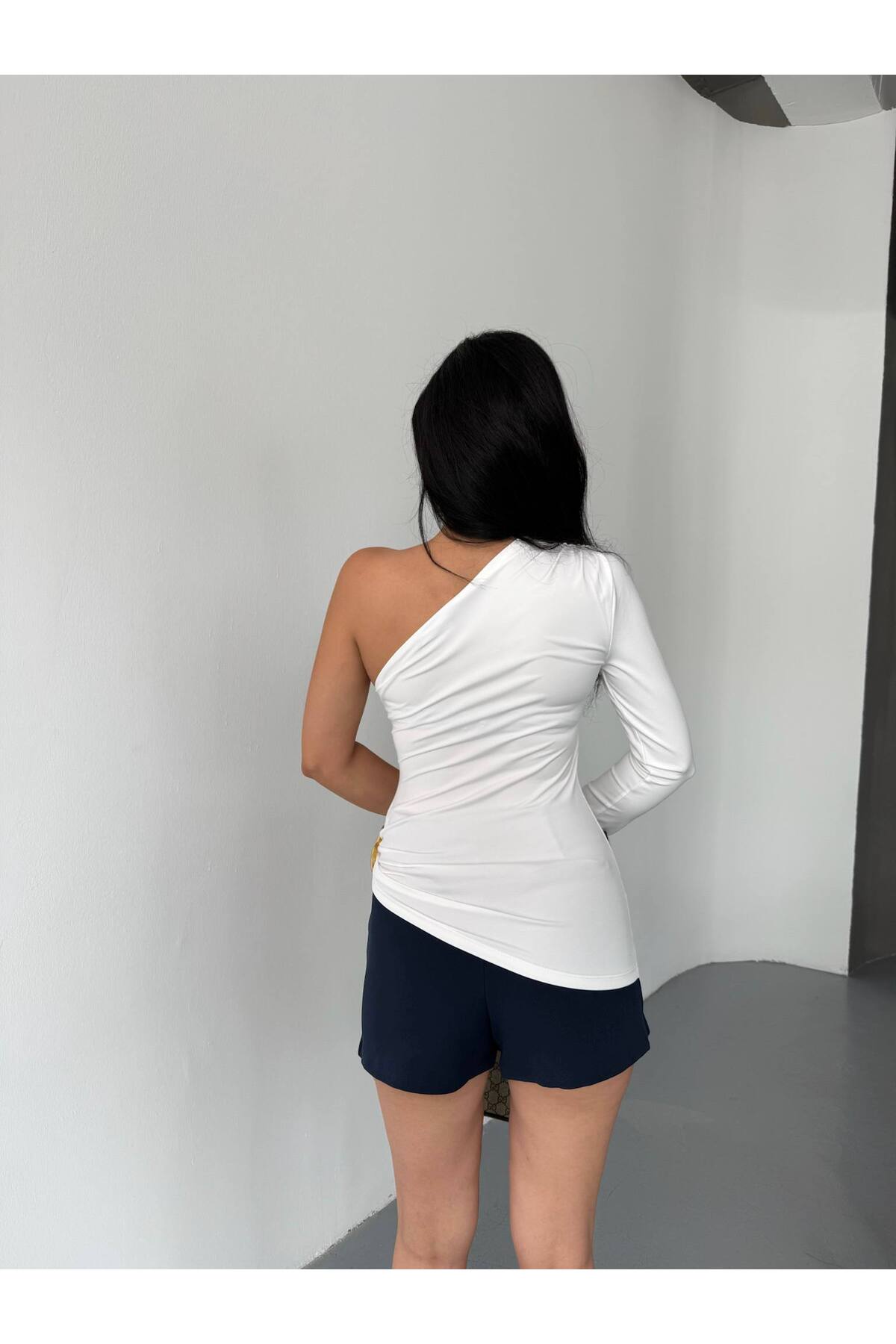 franky B Women's One Shoulder Buckle Accessory Crop Blouse | ByTR