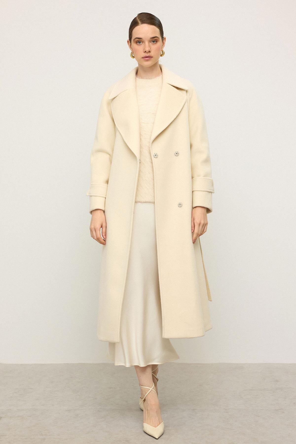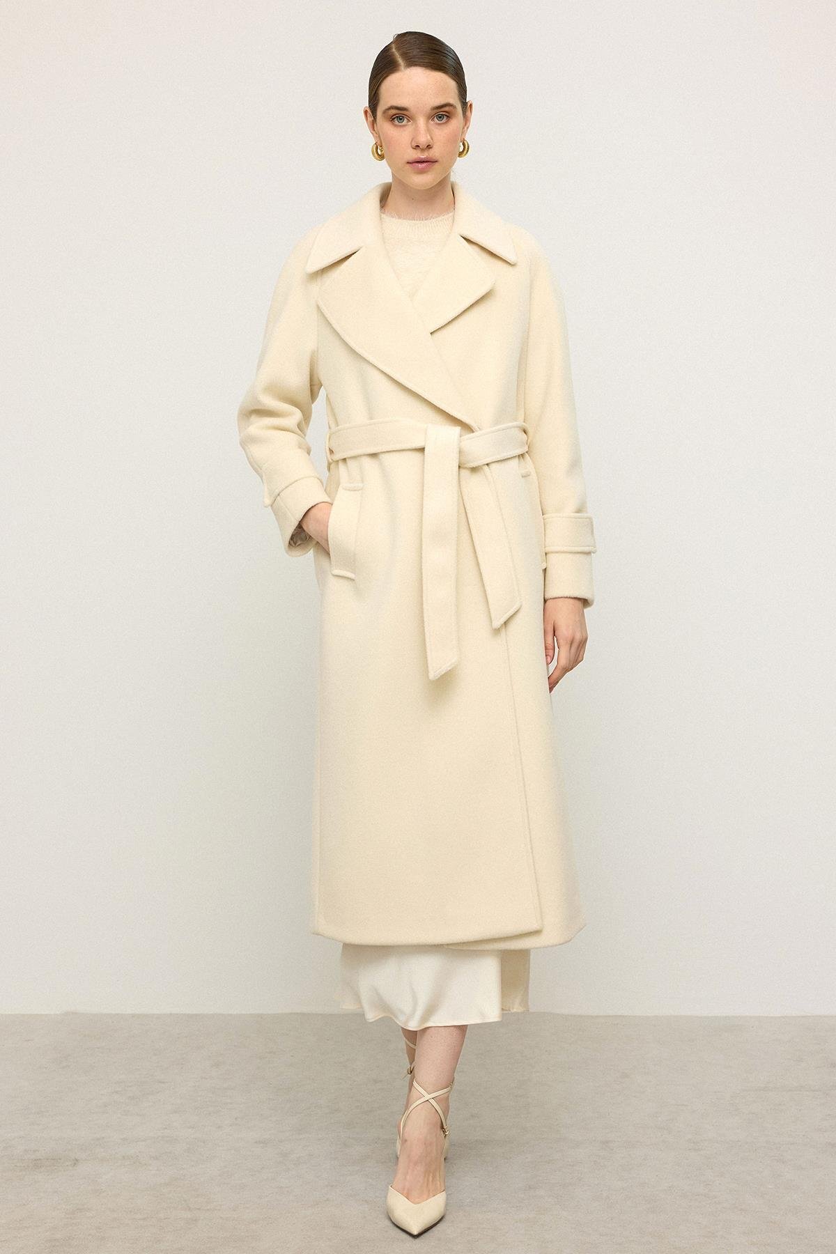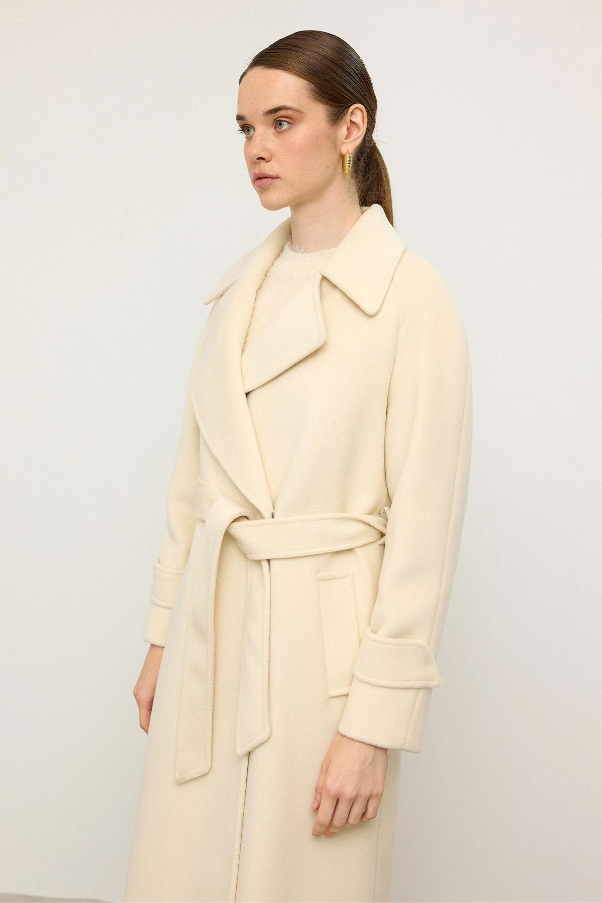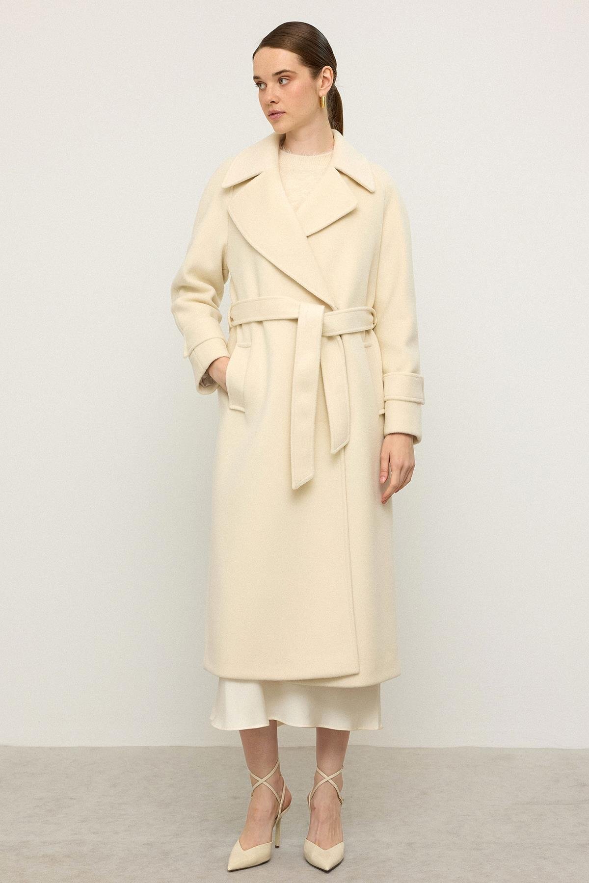 Olcay Raglan Sleeve Snap Closed Intermediate Coat ECRU 3145 | ByTR
