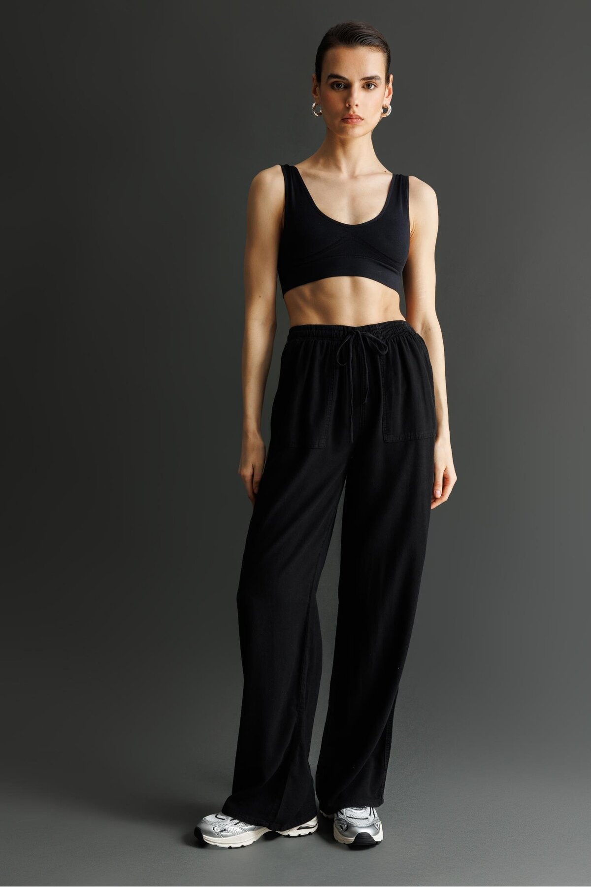 Mixray 4629 Women's Wide Leg High Waist Viscose Palazzo Pants Black | ByTR