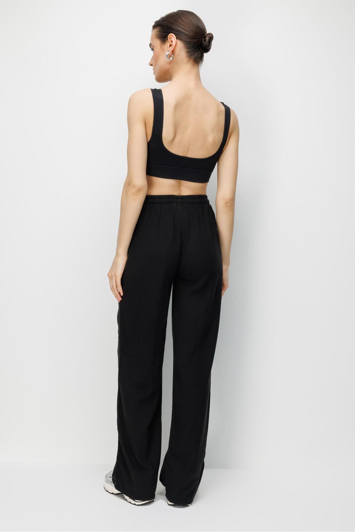 4629 Women's Wide Leg High Waist Viscose Palazzo Pants Black