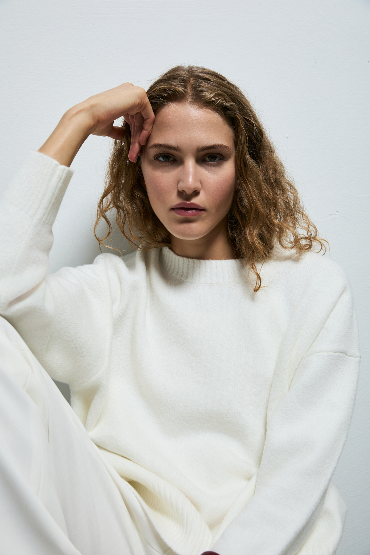 Pamela Women's Sweater 50% Polyester 35%acrylic 9polyamide 4% Camel Feather 2% Elastane Women's Knitwear Sweater