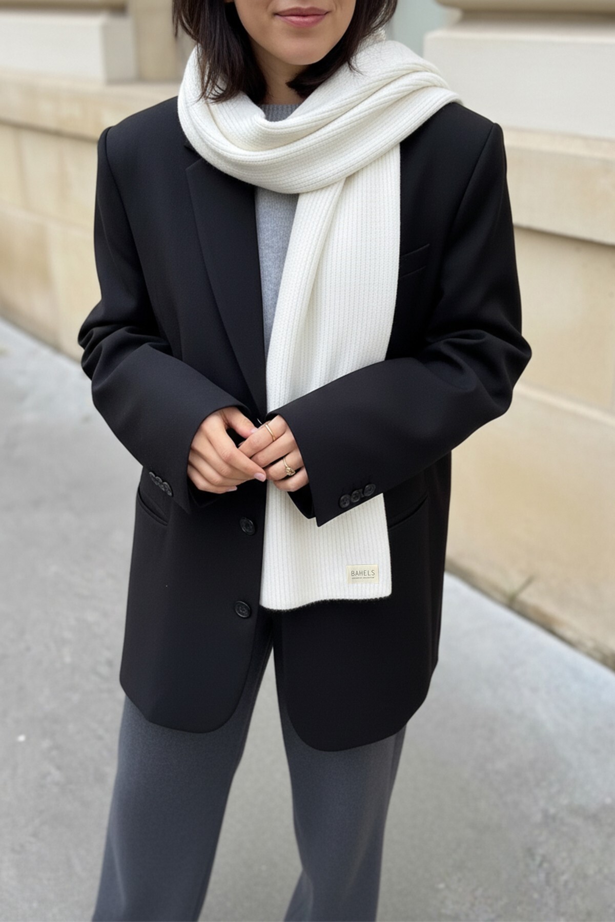BAHELS Ecru Knitwear Knit Shawl Shoulder Shawl | ByTR