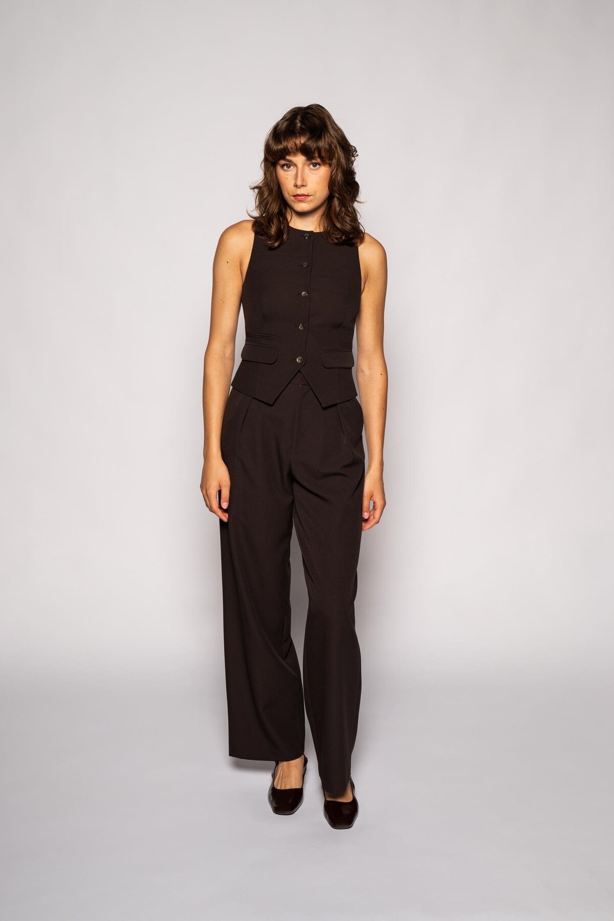 Dark Brown Wide Leg Pleated Pants A flowing silhouette that adds comfort and elegance to the modern woman's wardrobe.