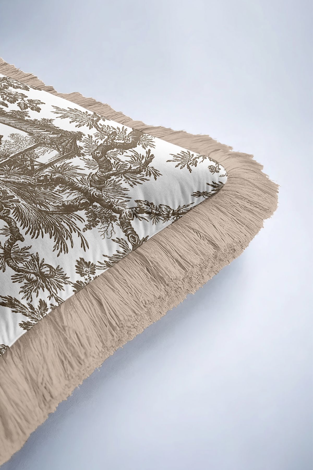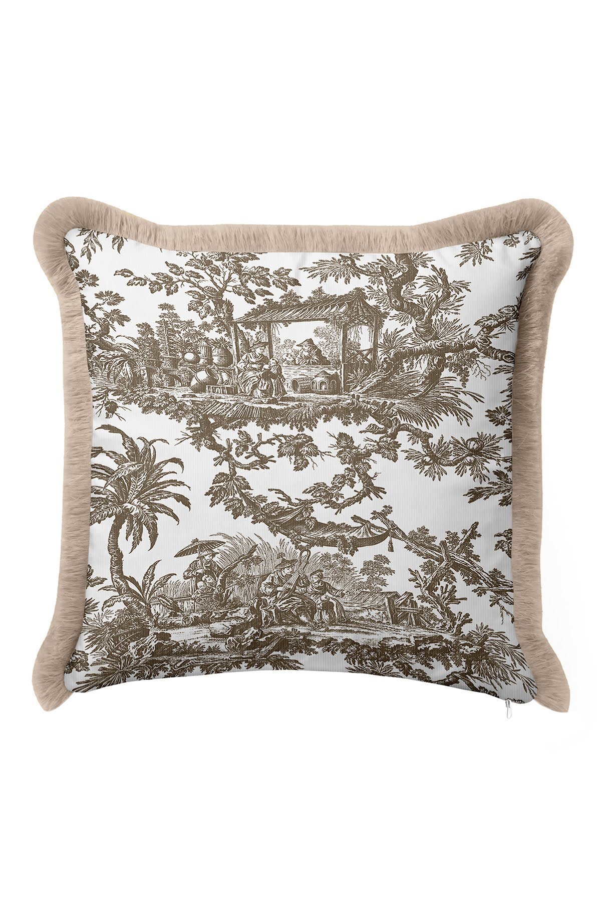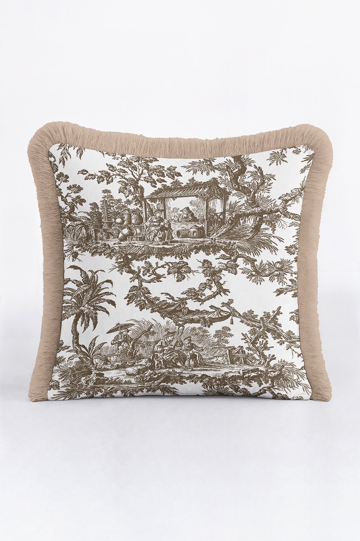 Art Motif Country Beige Brown Tasseled Pillowcase Made of60% Cotton + 40% Polyester fabric with a soft velvet texture.