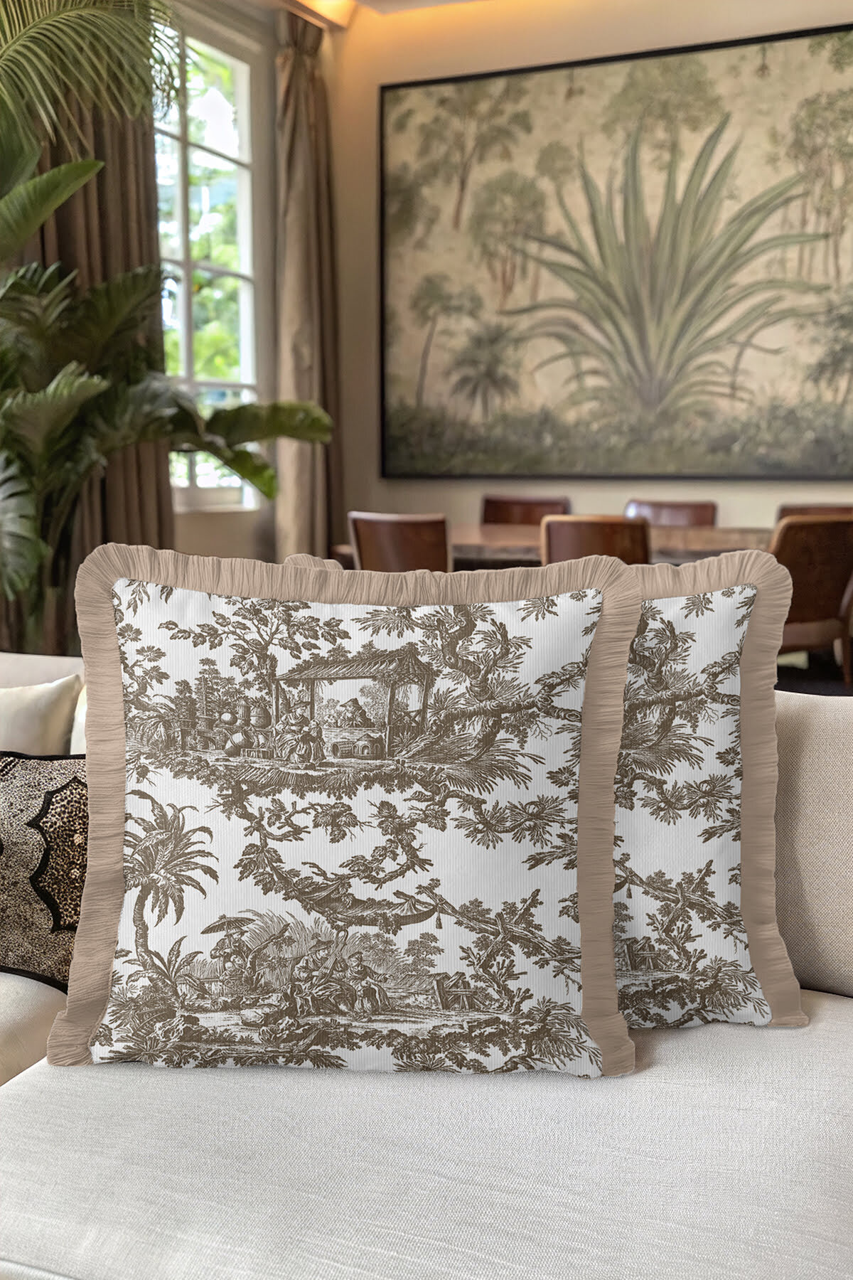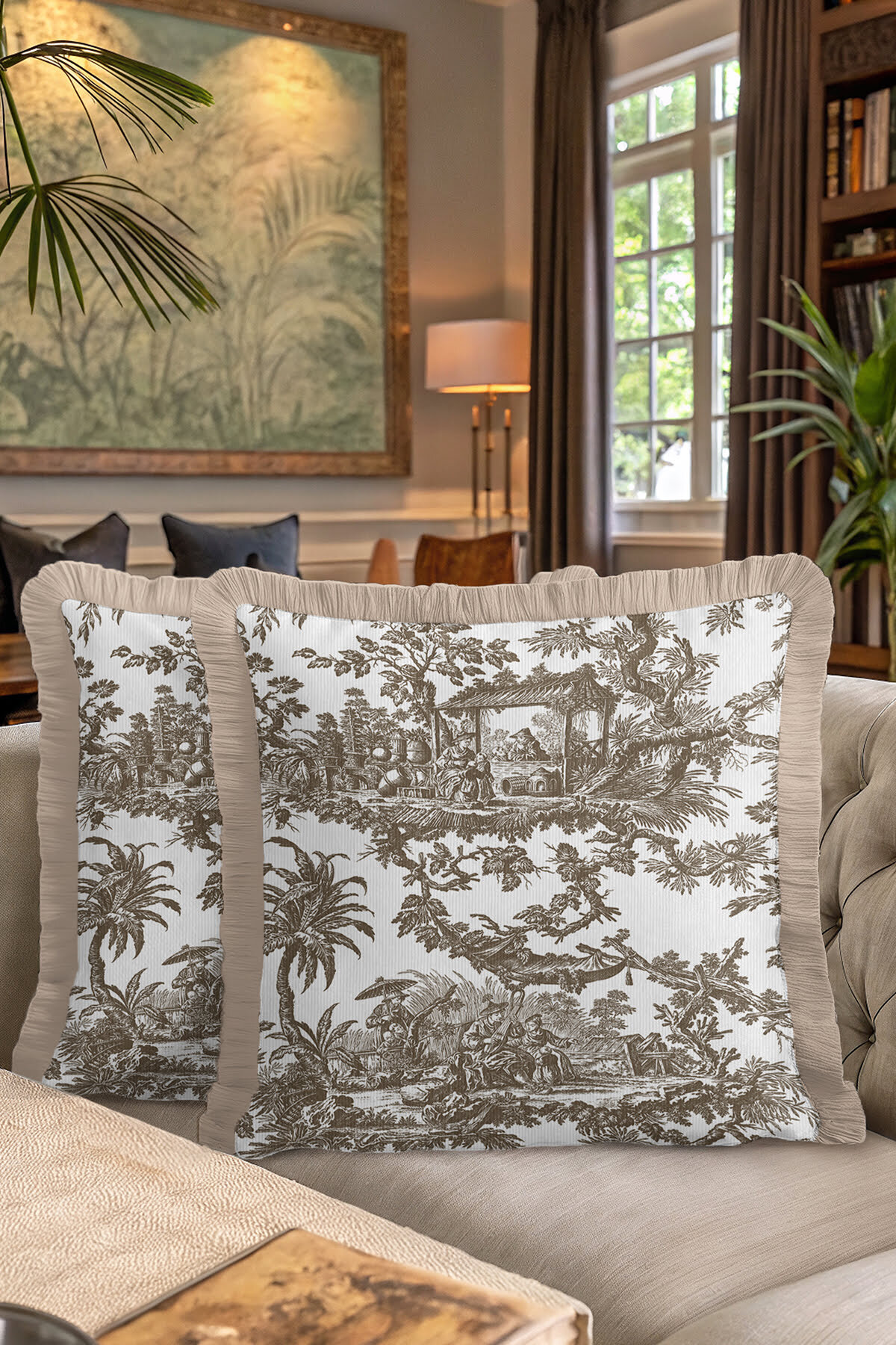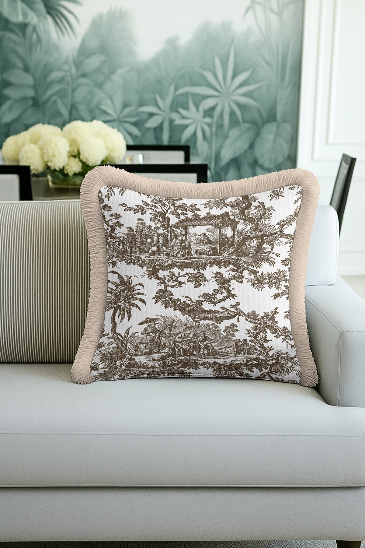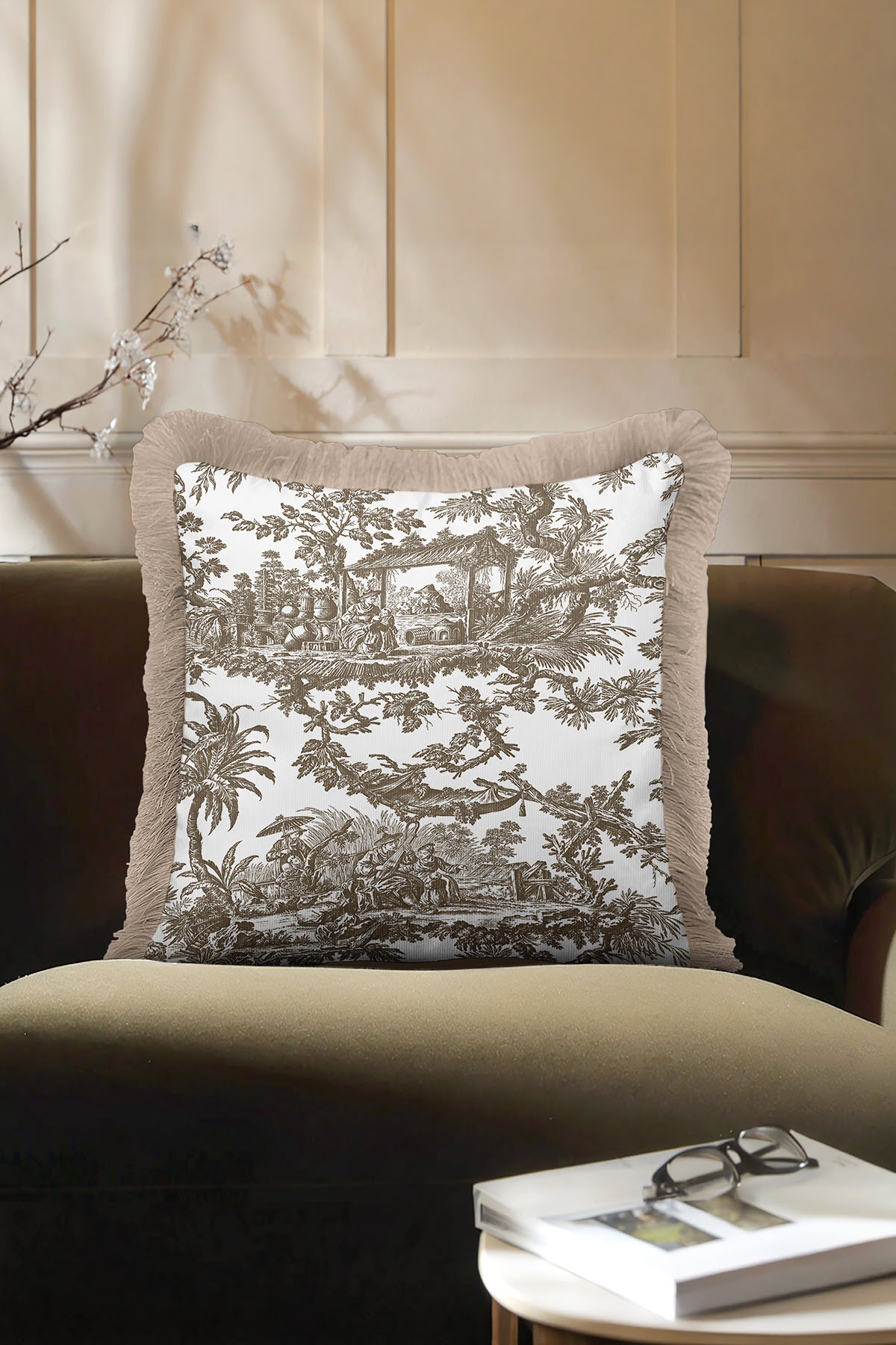 Art Motif Country Beige Brown Tasseled Pillowcase Made of60% Cotton + 40% Polyester fabric with a soft velvet texture.
