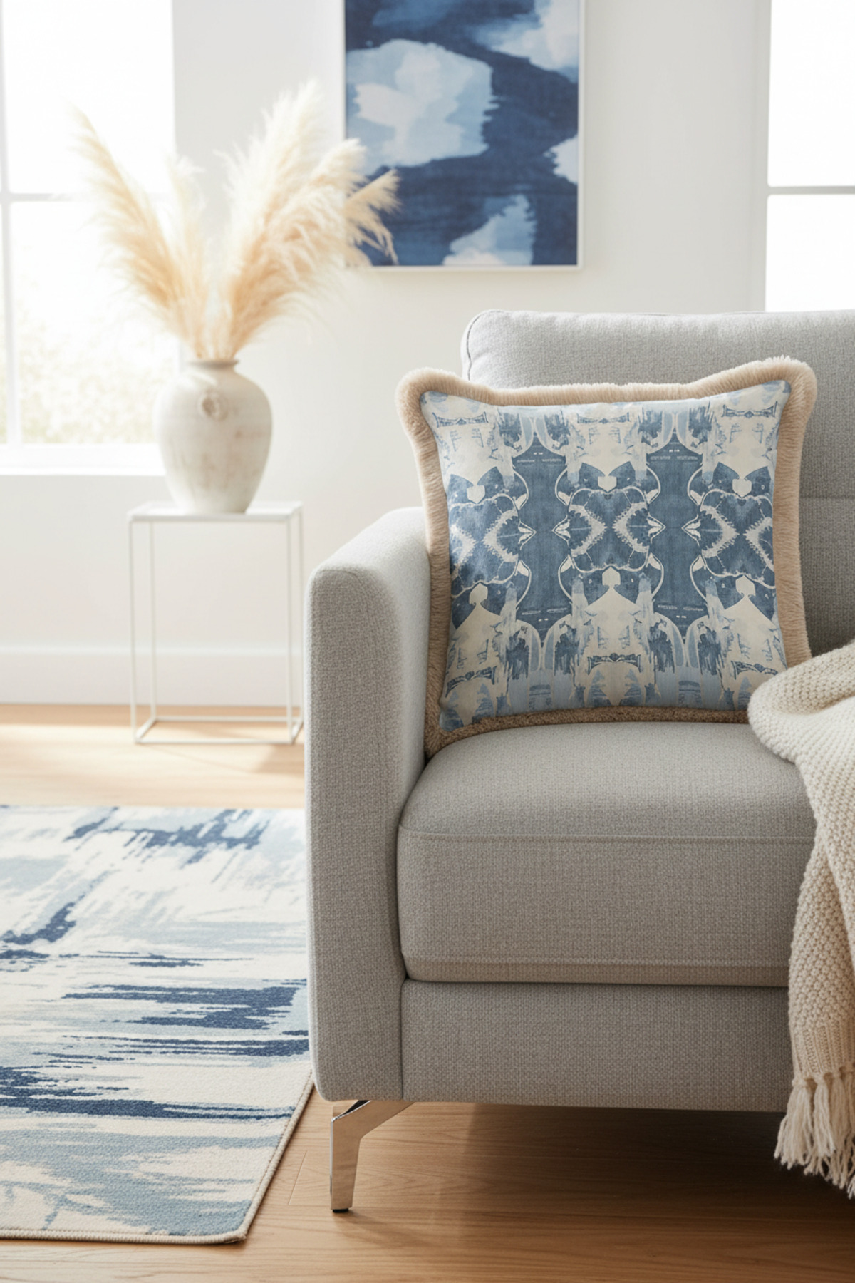 Add a completely different atmosphere to your home with the Special Design Elegant Stylish Blue Geometric Luxury Fringed Pillowcase.