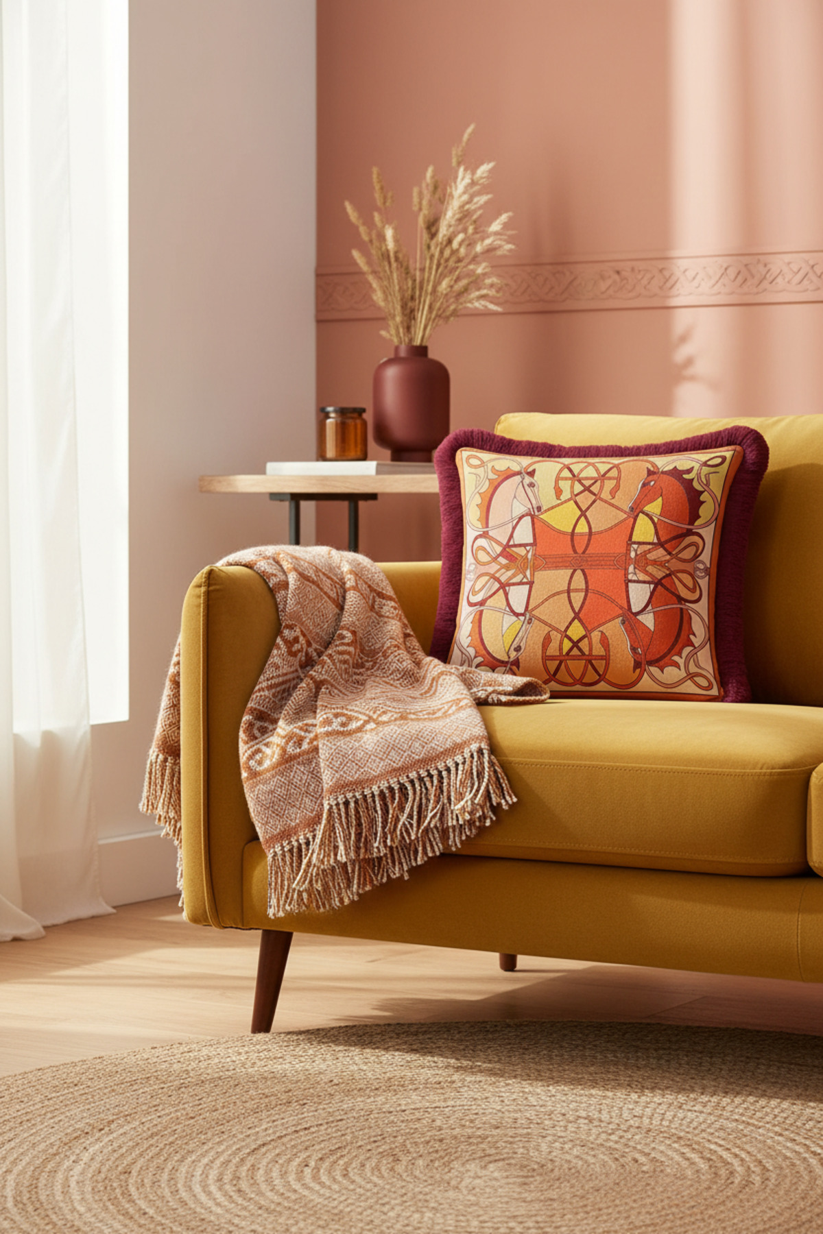 While the velvet fabric adds a luxurious touch, it increases elegance with its tassel details.