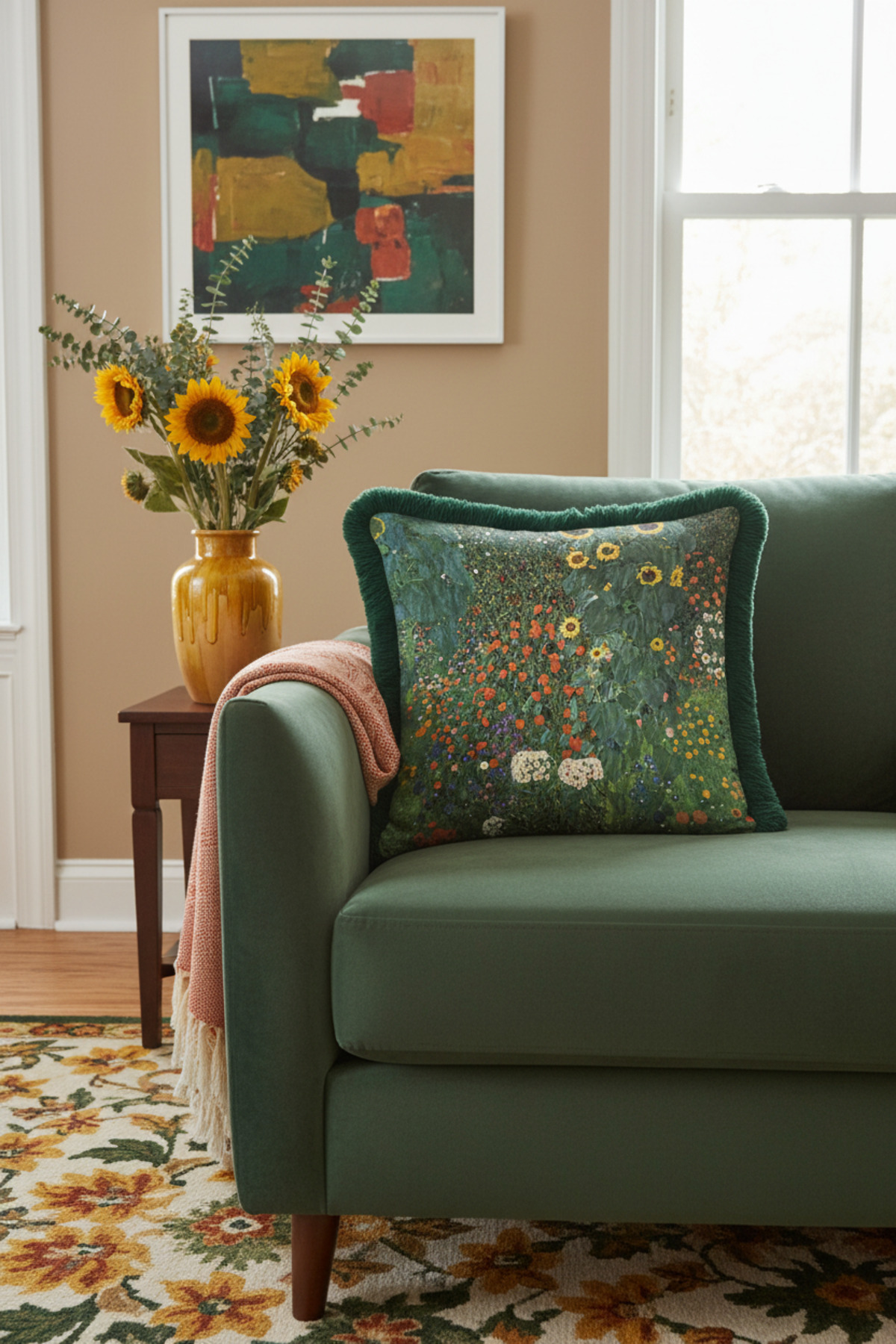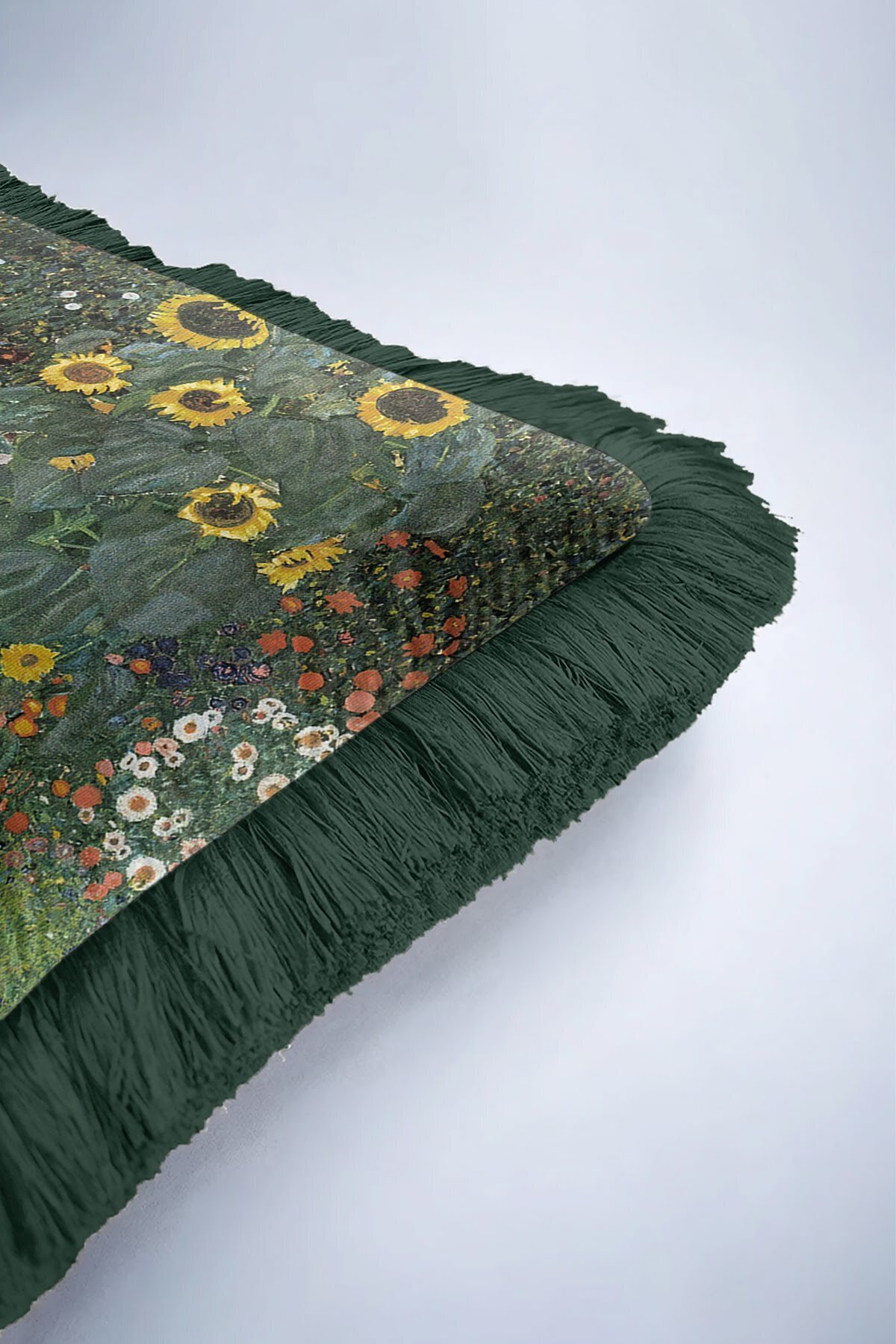 Romantic Nature Green Tasseled Pillowcase Made of60% Cotton + 40% Polyester fabric with a soft velvet texture.