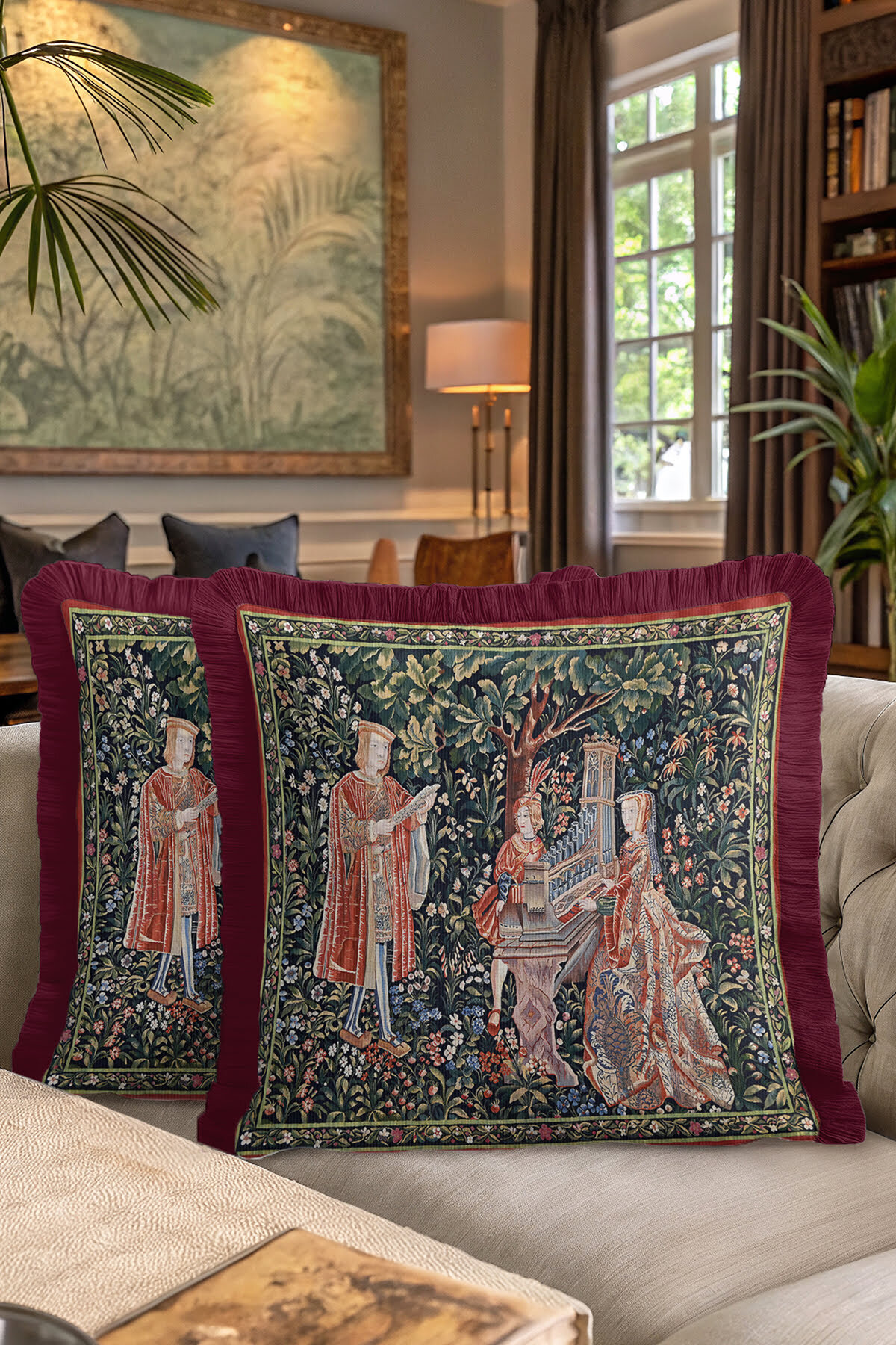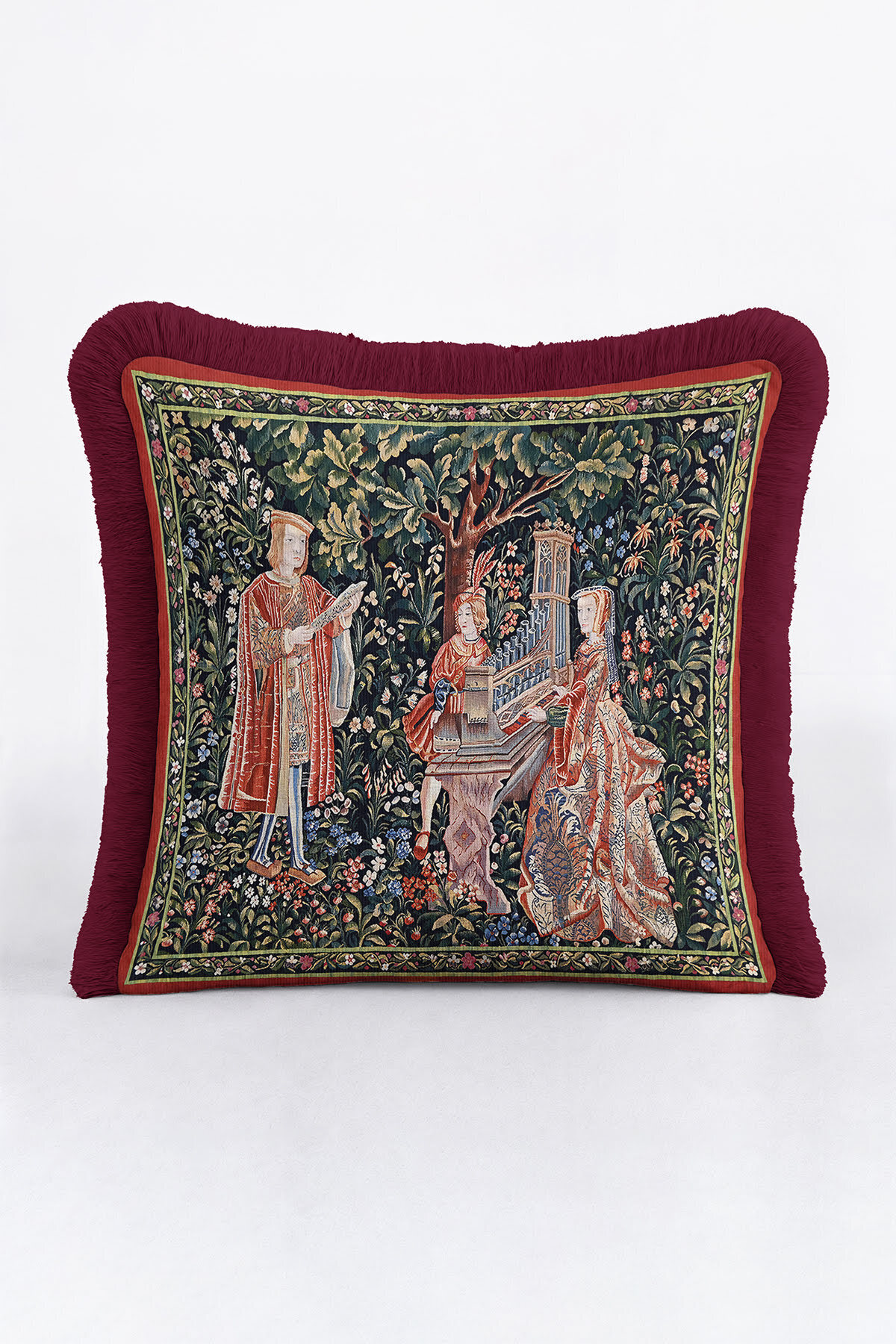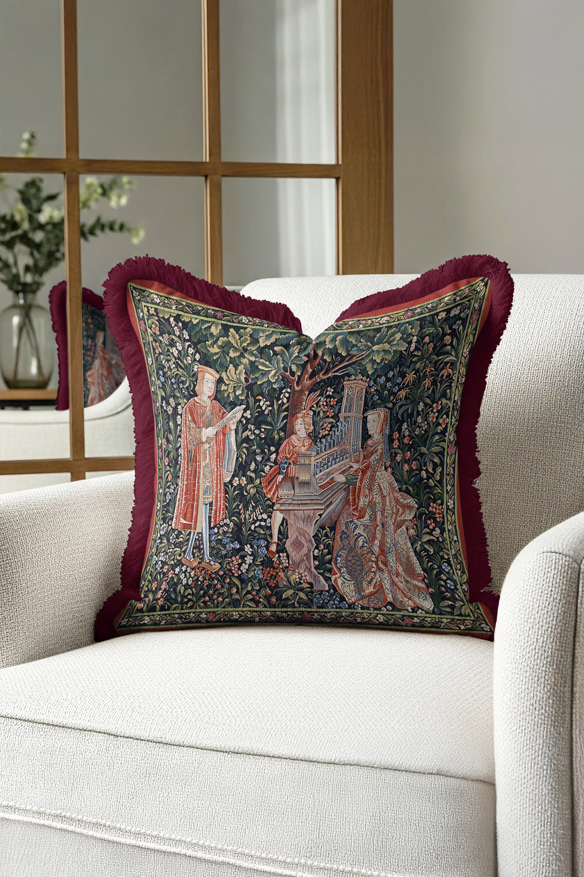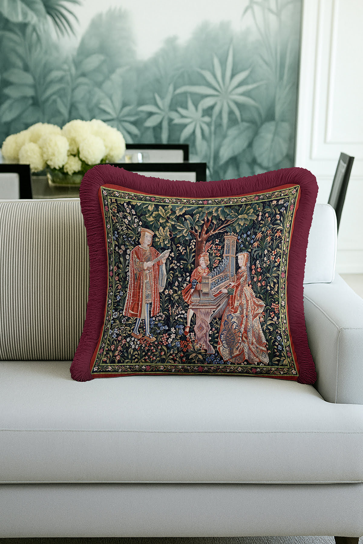 Classic French Burgundy Antique Rustic Tasseled Pillowcase Made of60% Cotton + 40% Polyester fabric with a soft velvet texture.