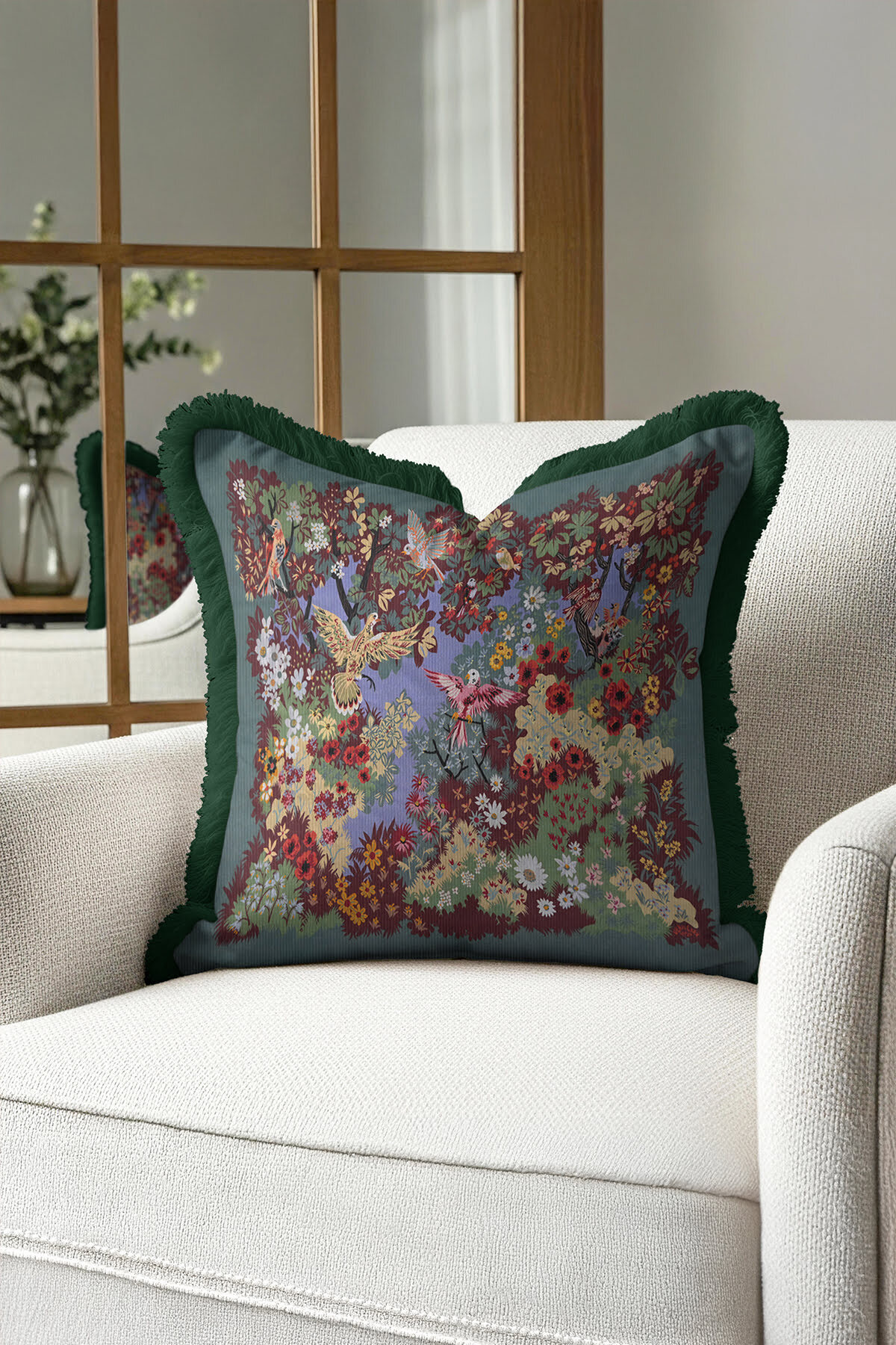 Special Design Baroque Bird Garden Add a completely different atmosphere to your home with Luxury Fringed Pillowcase.