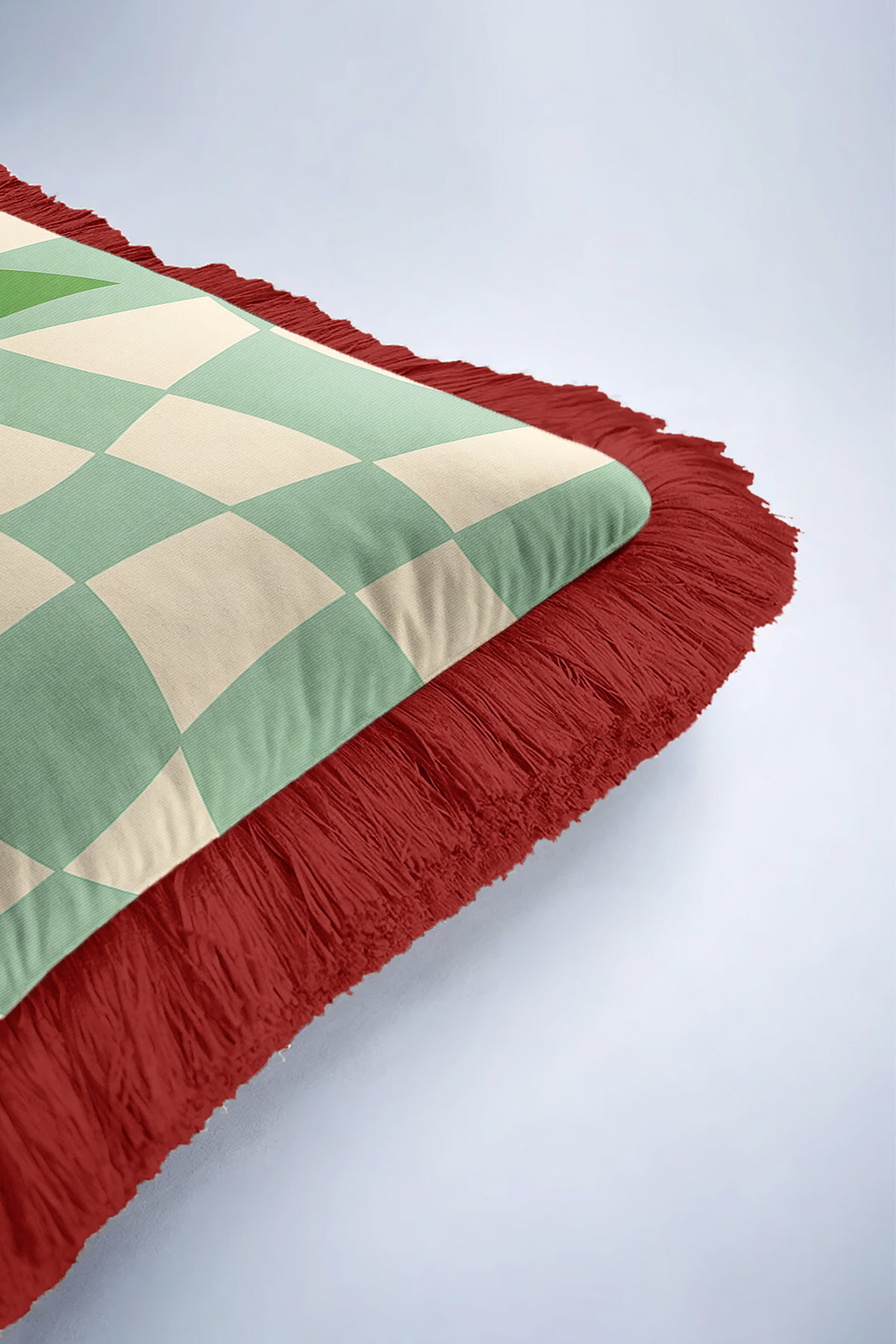Organic Retro Mint Green Tasseled Pillowcase Made of60% Cotton + 40% Polyester fabric with a soft velvet texture.
