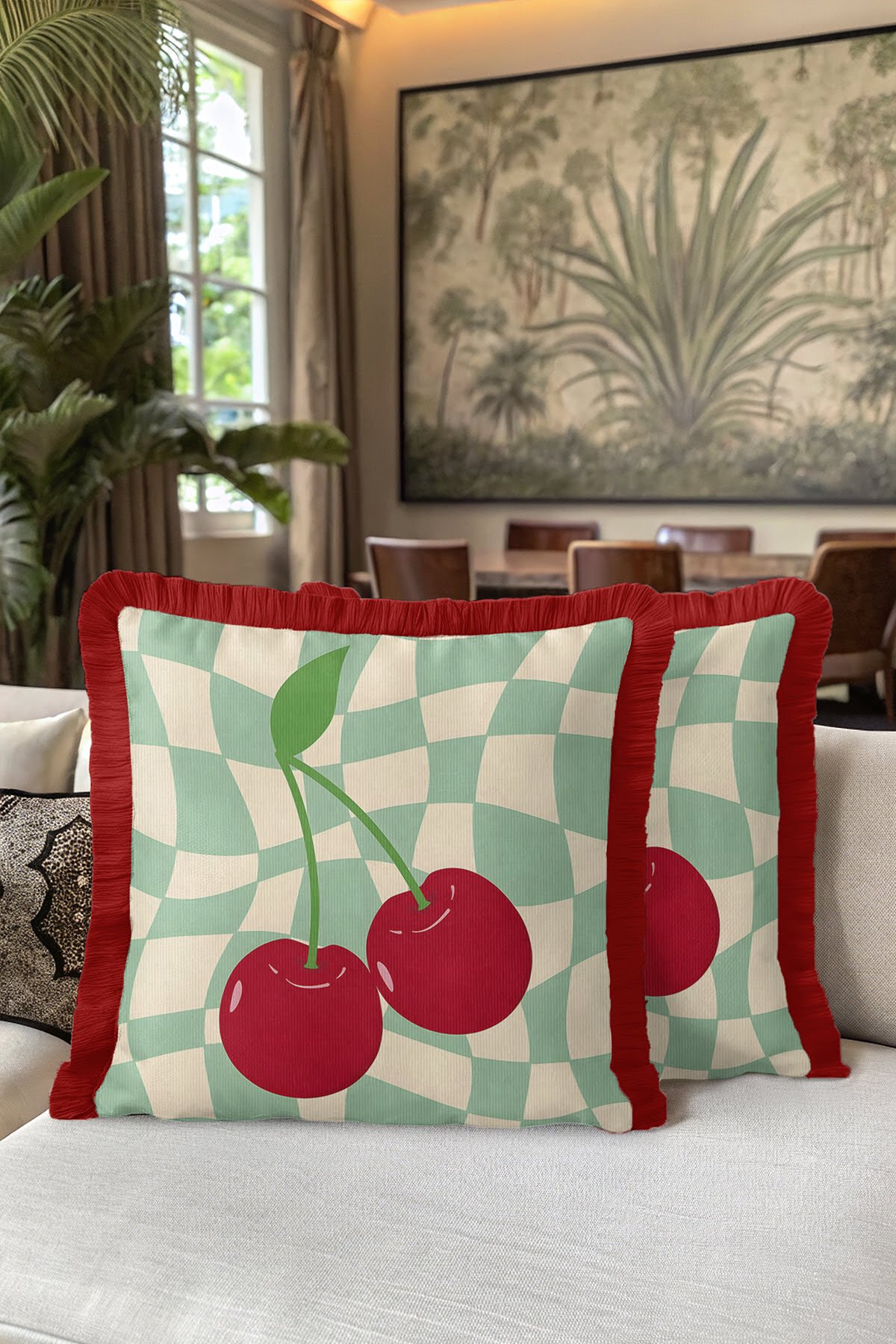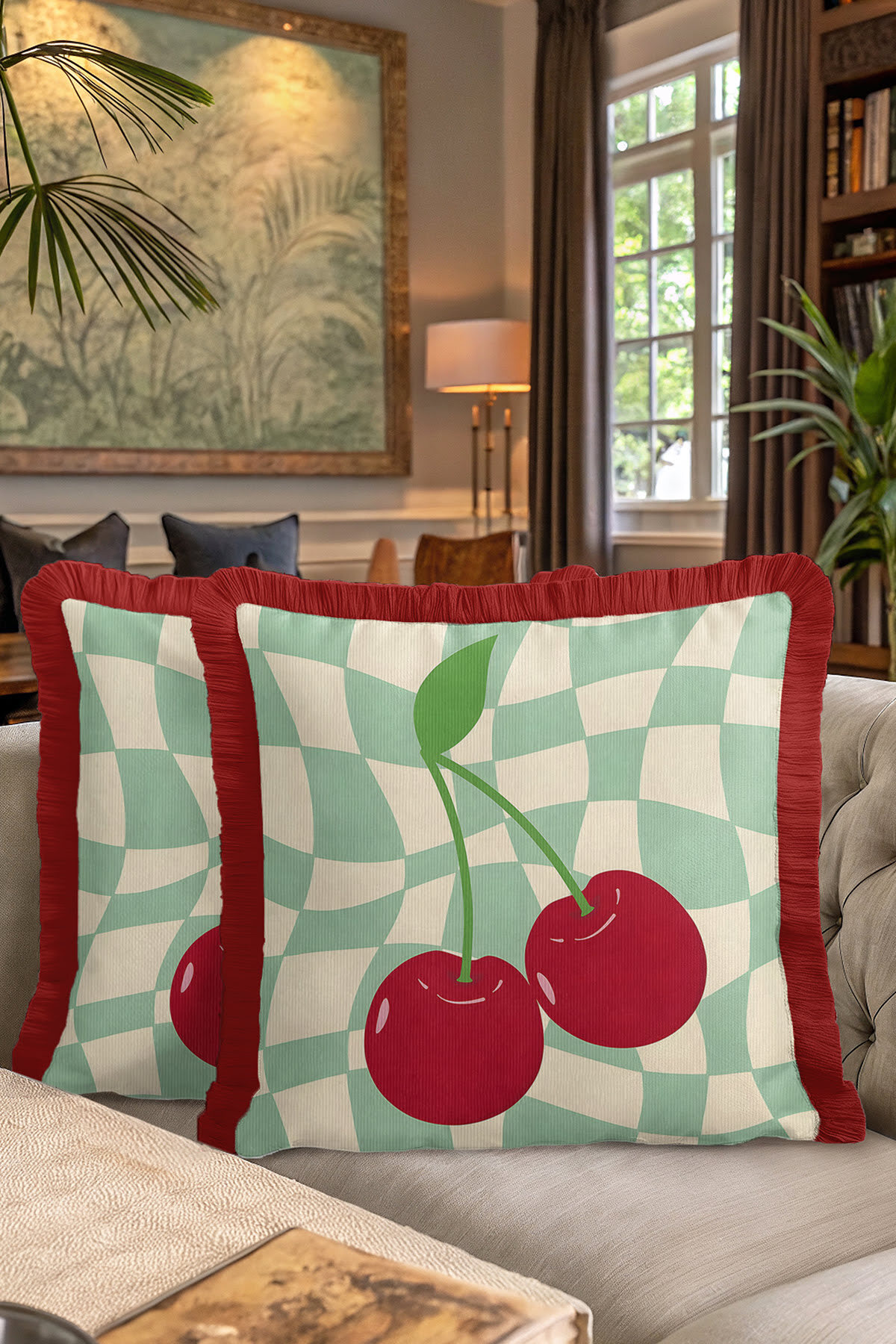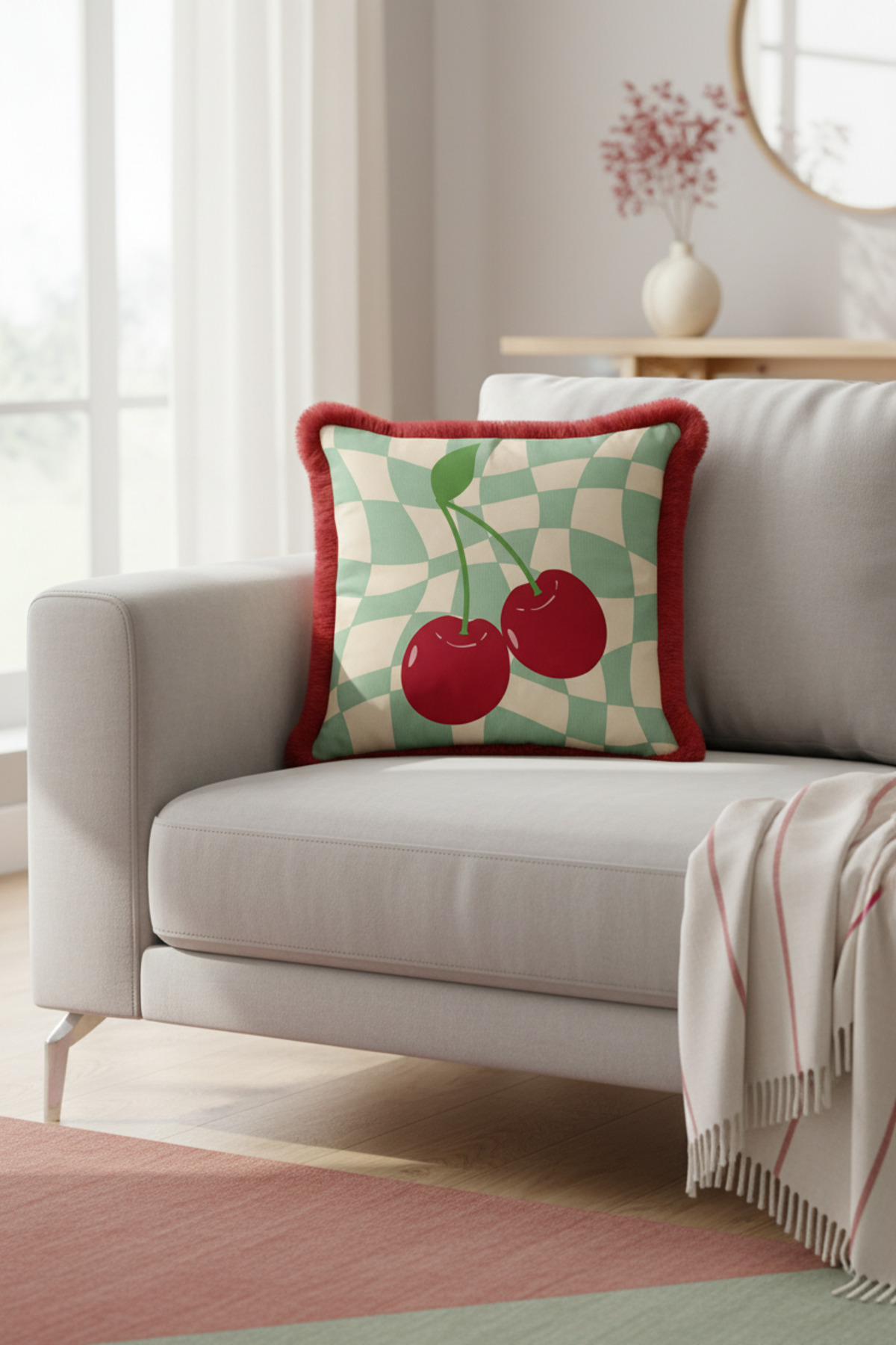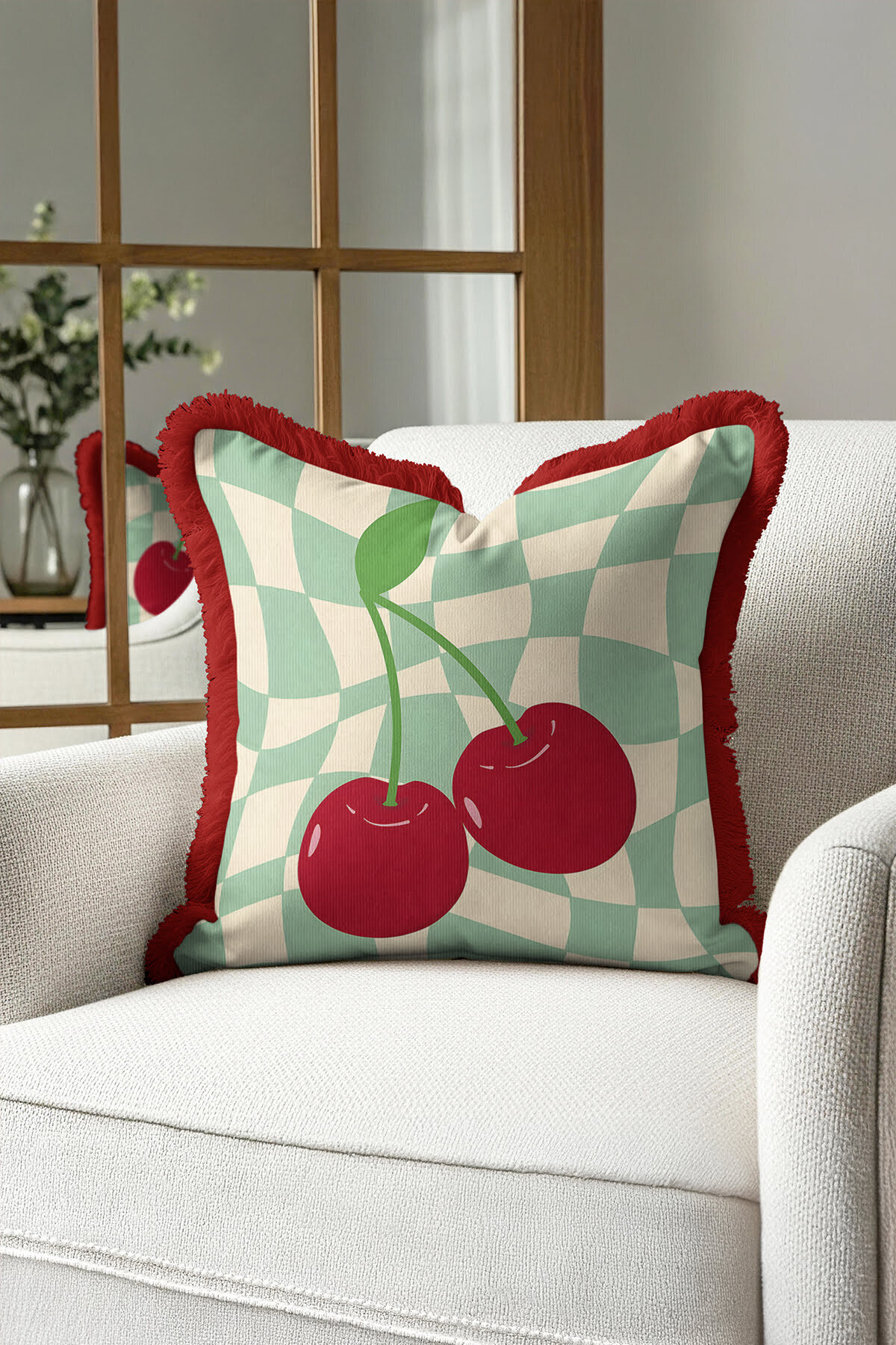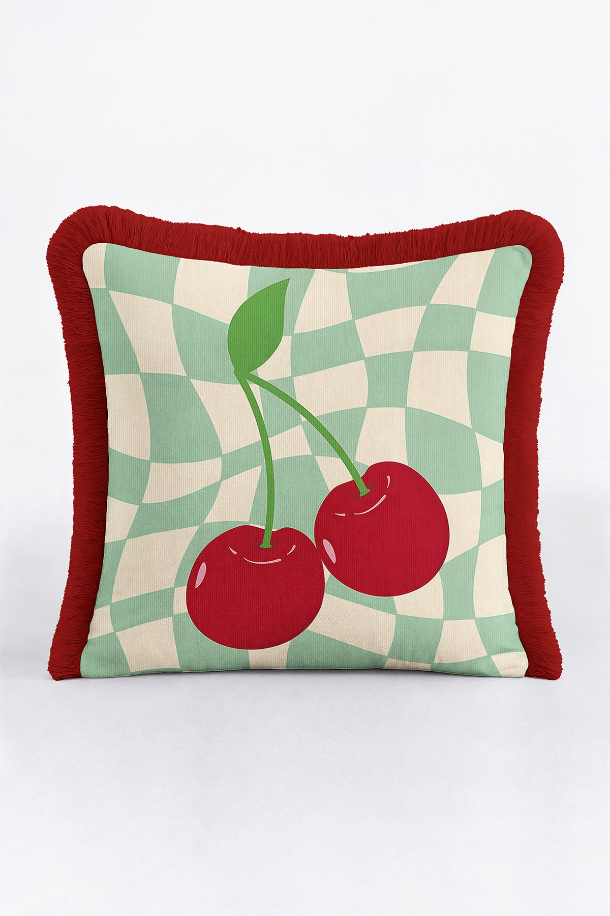 Add a completely different atmosphere to your home with Special Design Modern Plaid and Cherry Fringed Pillowcase.