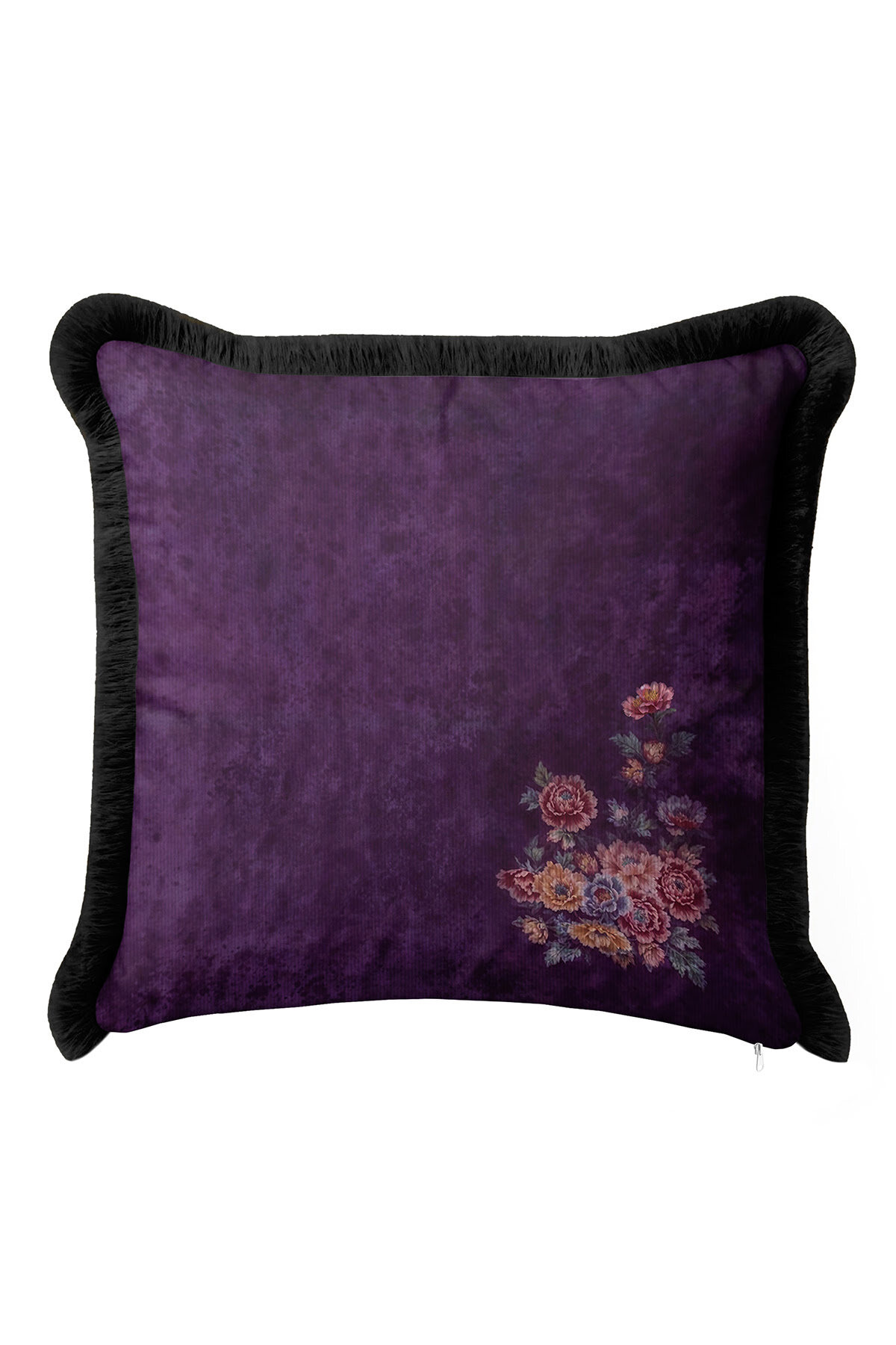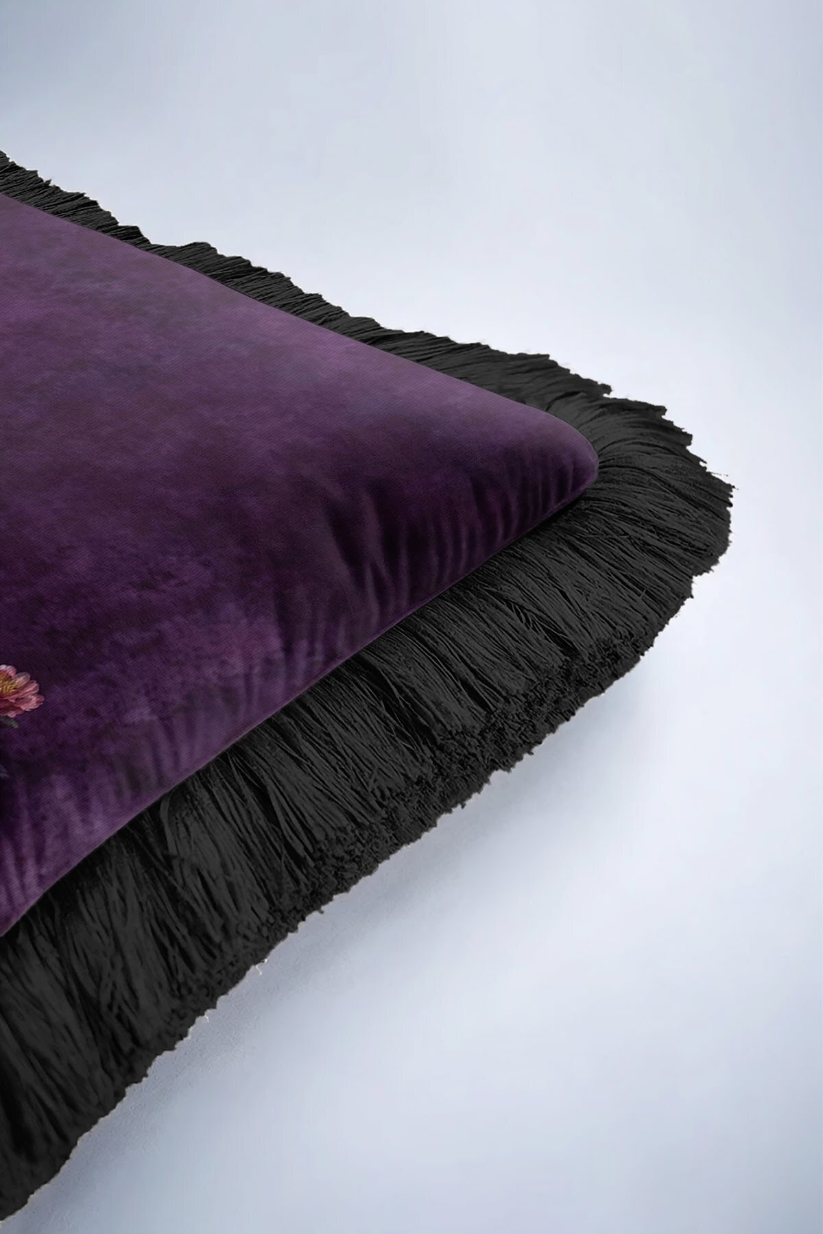 Vintage Bohemian Purple Black Tasseled Pillowcase Made of60% Cotton + 40% Polyester fabric with a soft velvet texture.