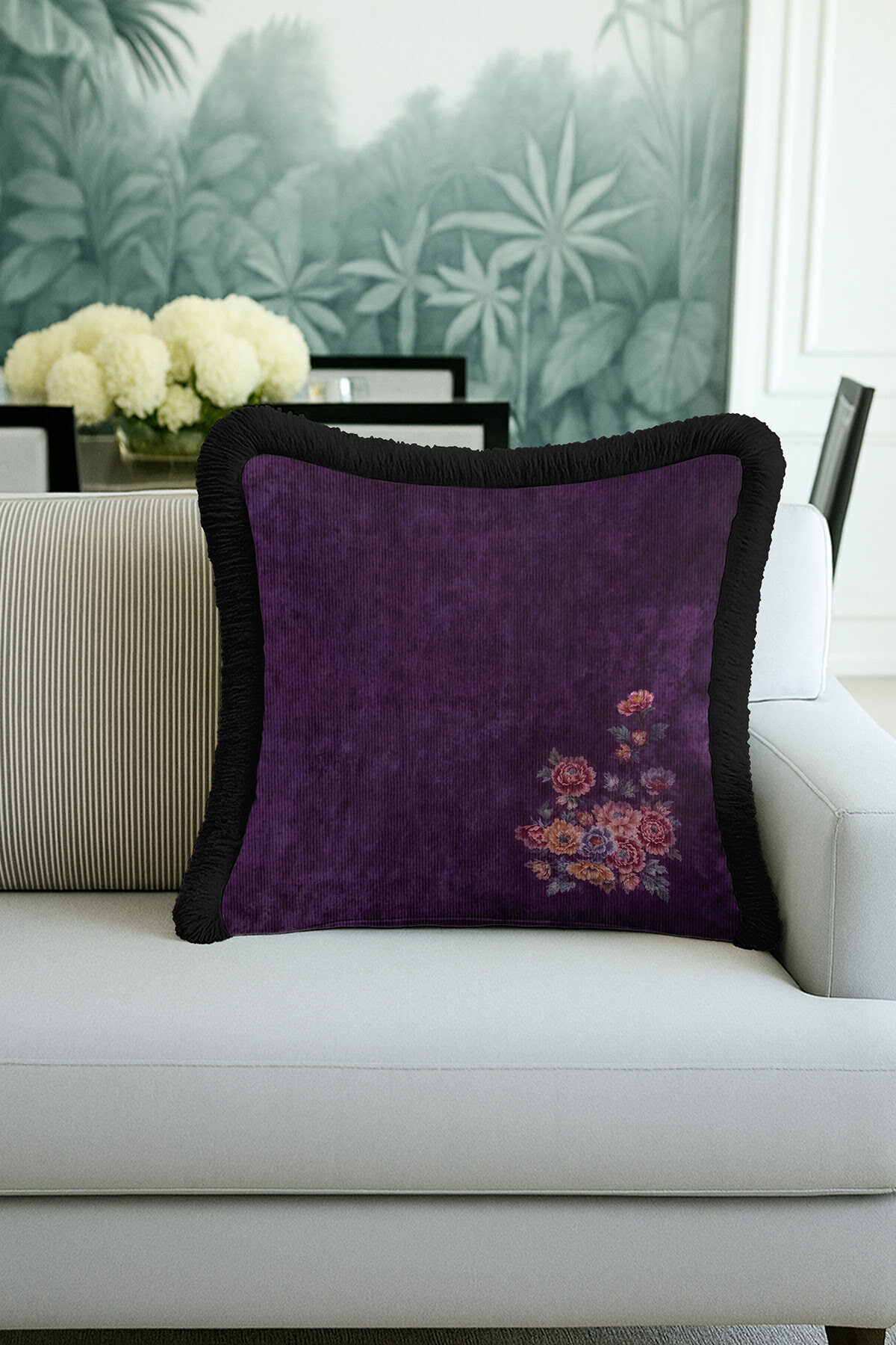 Add a completely different atmosphere to your home with the Special Design Elegant Flower Motif Luxury Fringed Pillowcase.