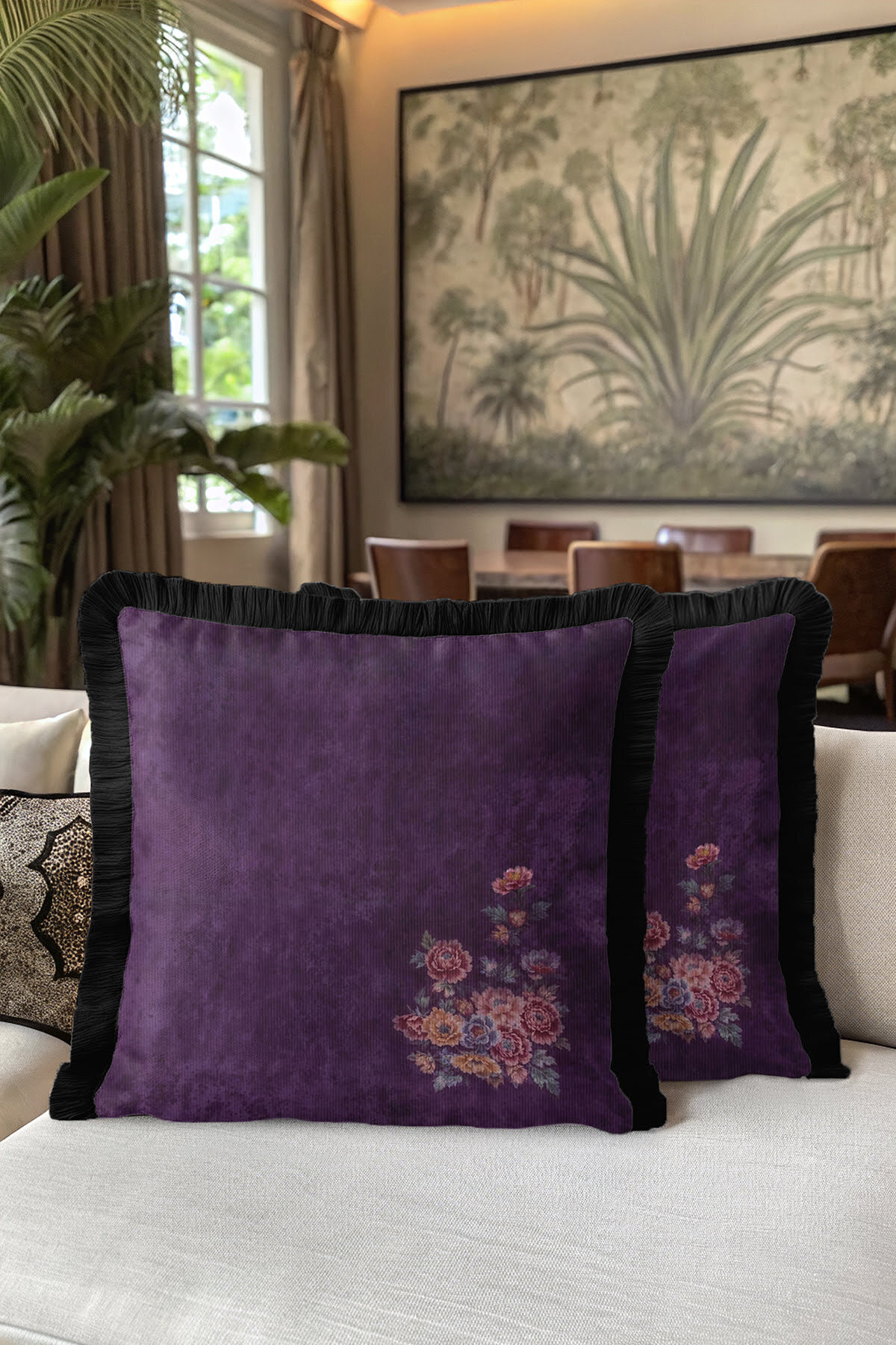 While the velvet fabric adds a luxurious touch, it increases elegance with its tassel details.