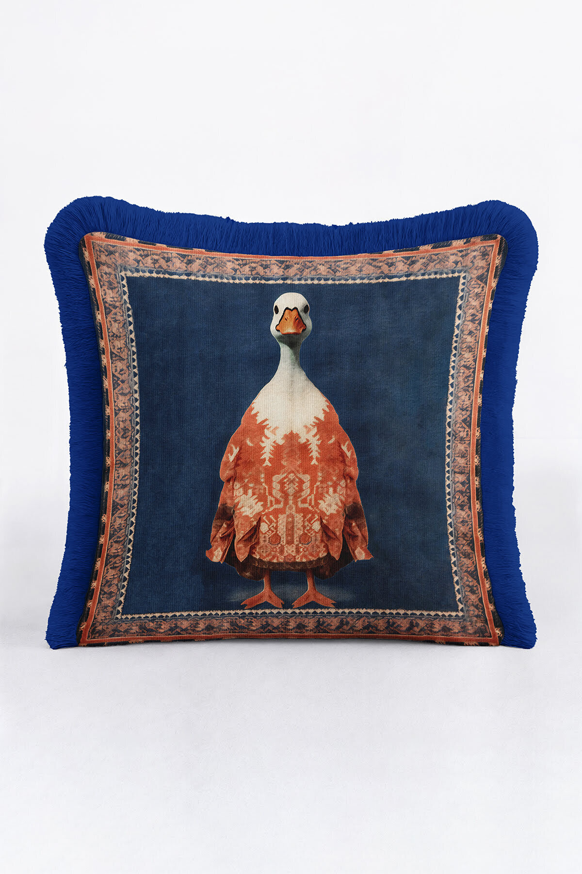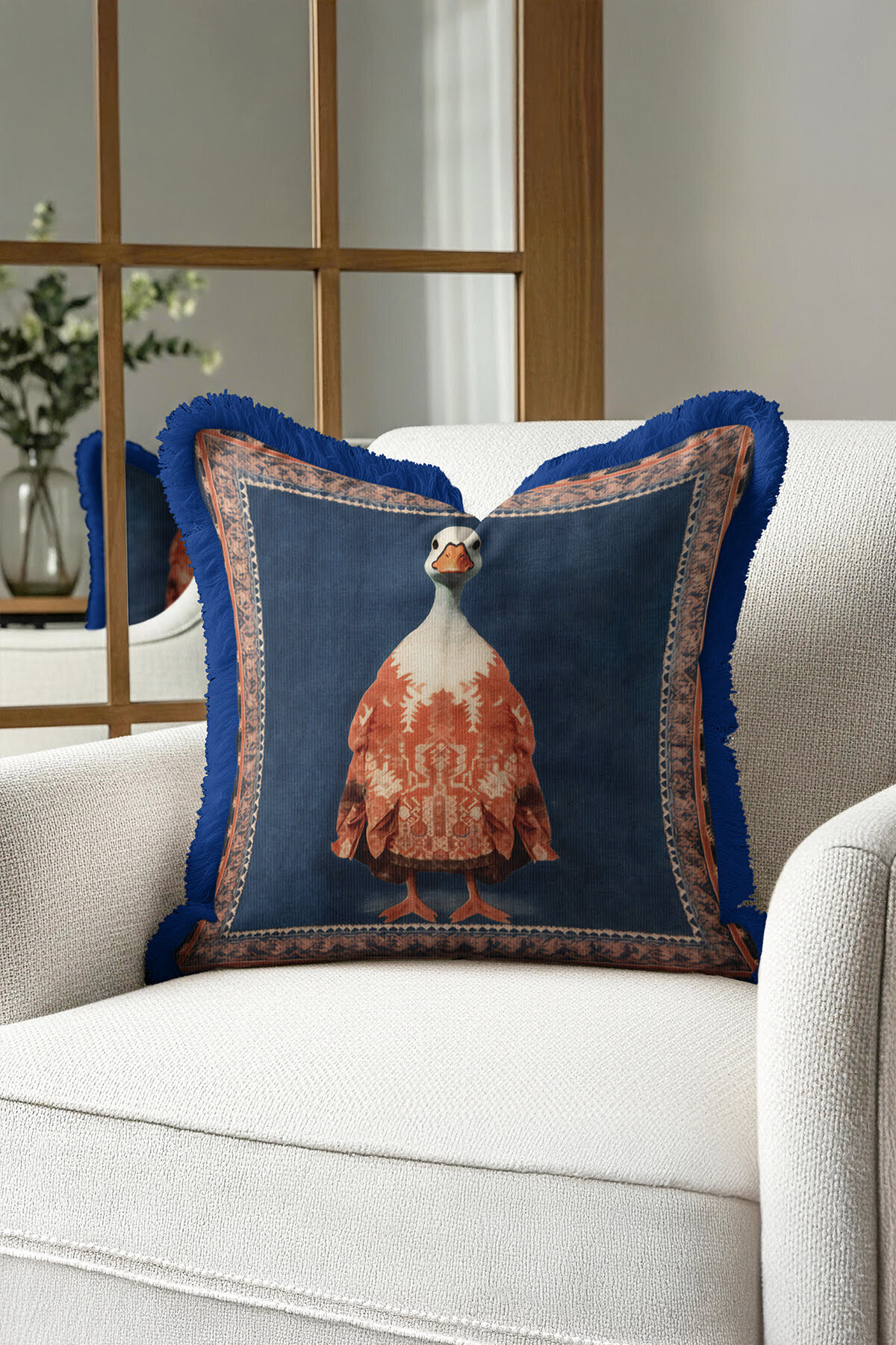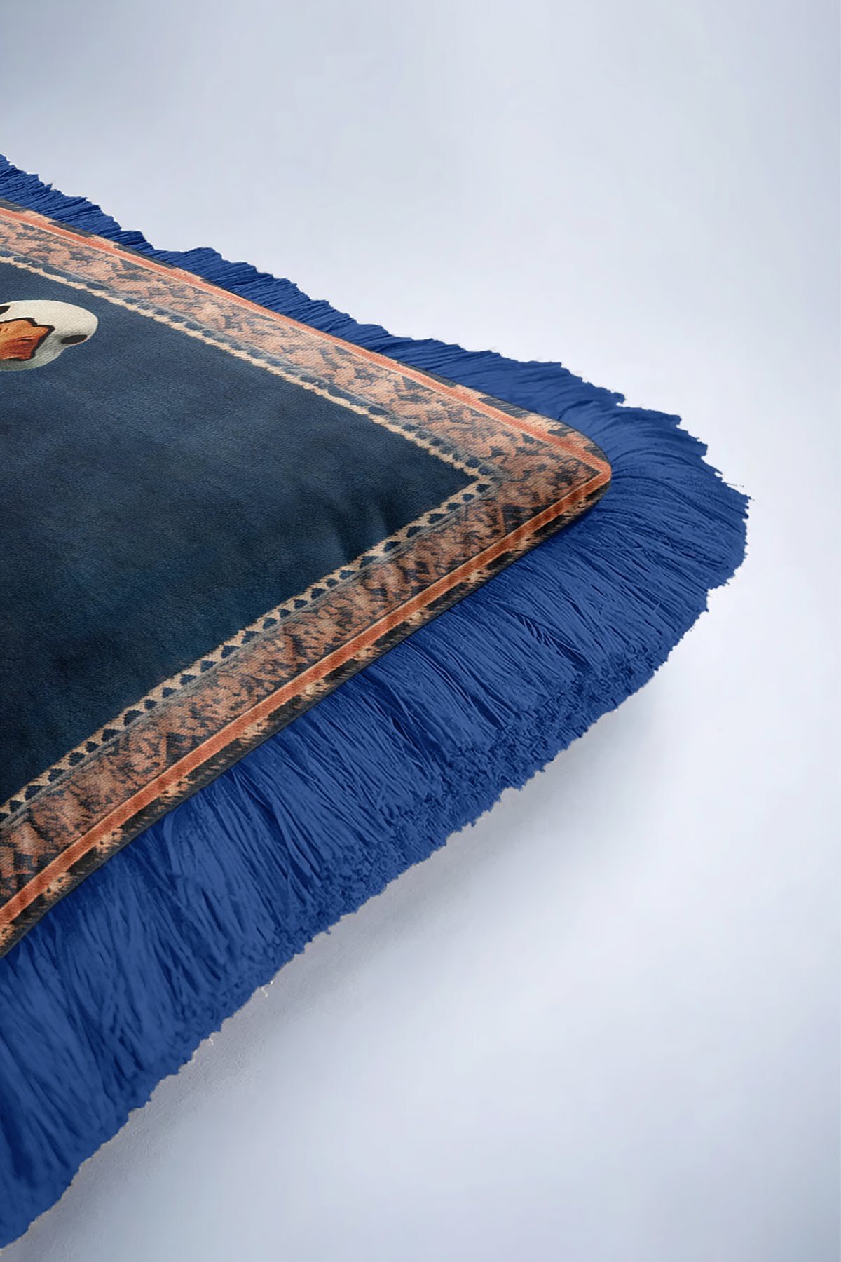 Artistic Animal Figure Bohemian Navy Blue Tasseled Pillowcase Made of60% Cotton + 40% Polyester fabric with a soft velvet texture.