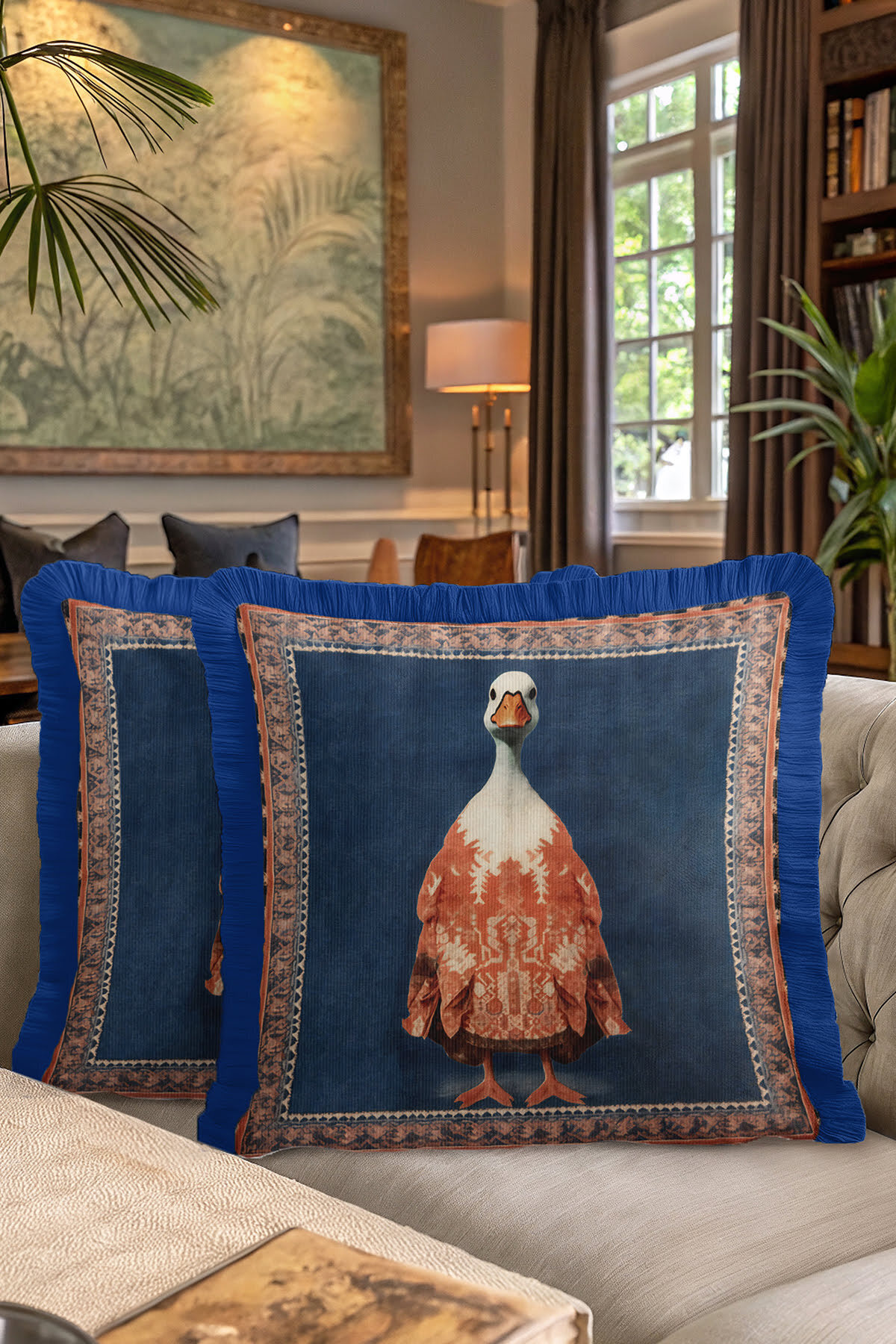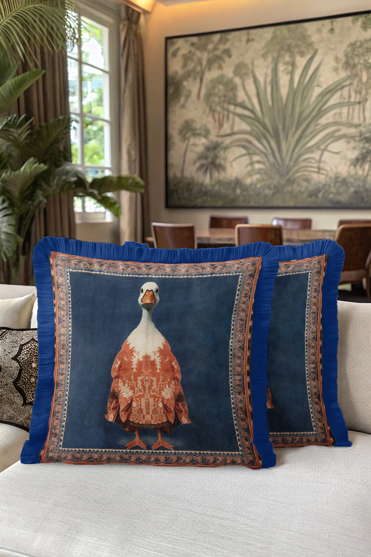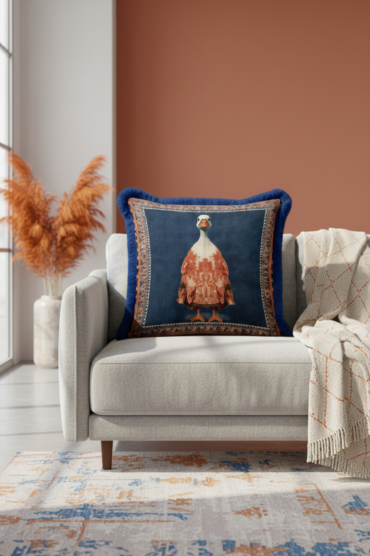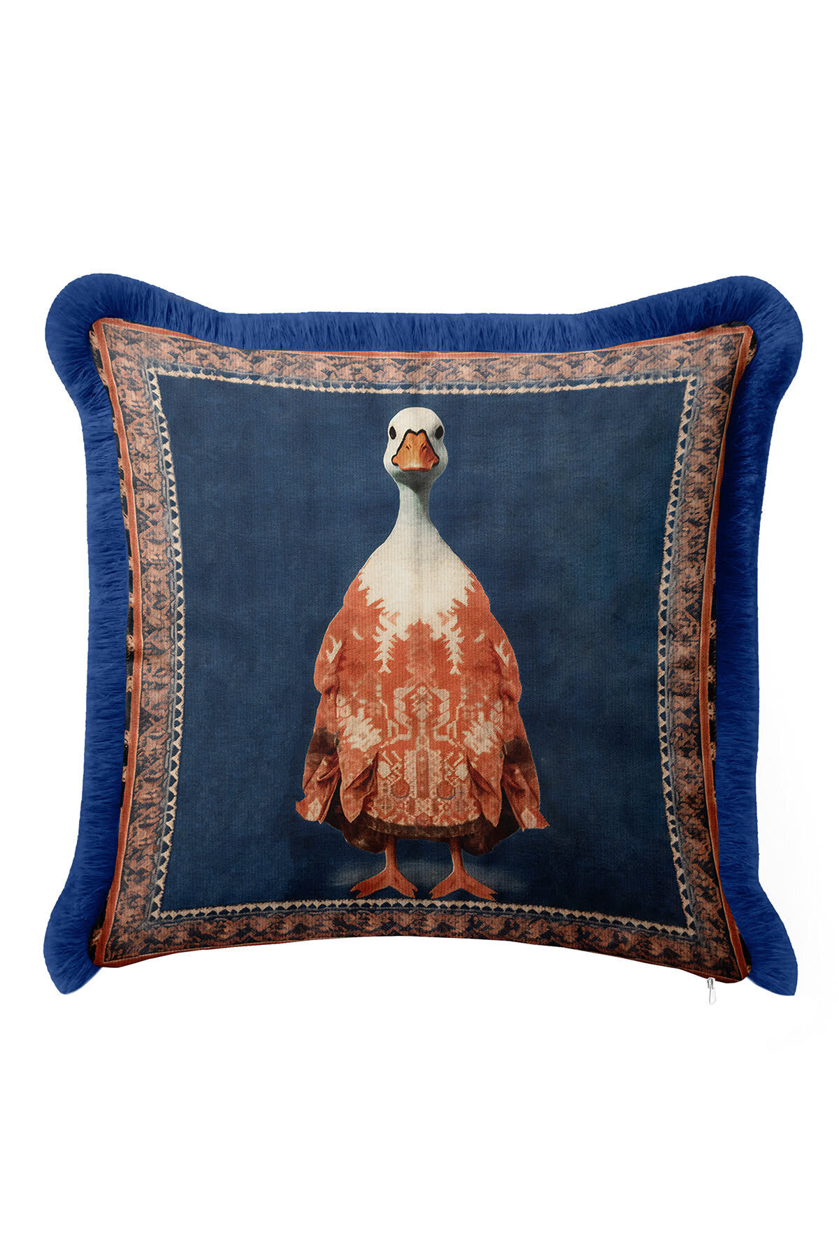 Artistic Animal Figure Bohemian Navy Blue Tasseled Pillowcase Made of60% Cotton + 40% Polyester fabric with a soft velvet texture.