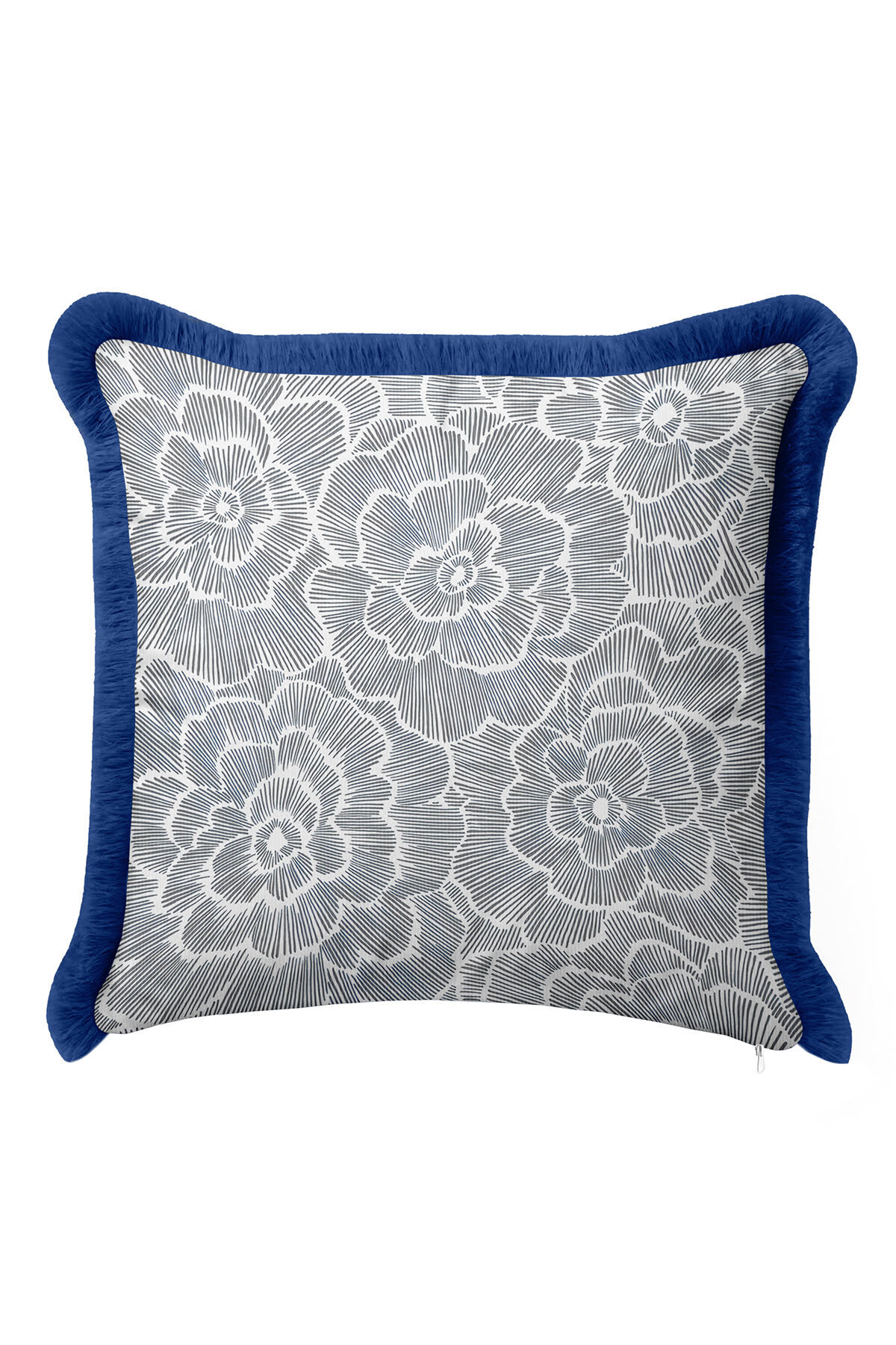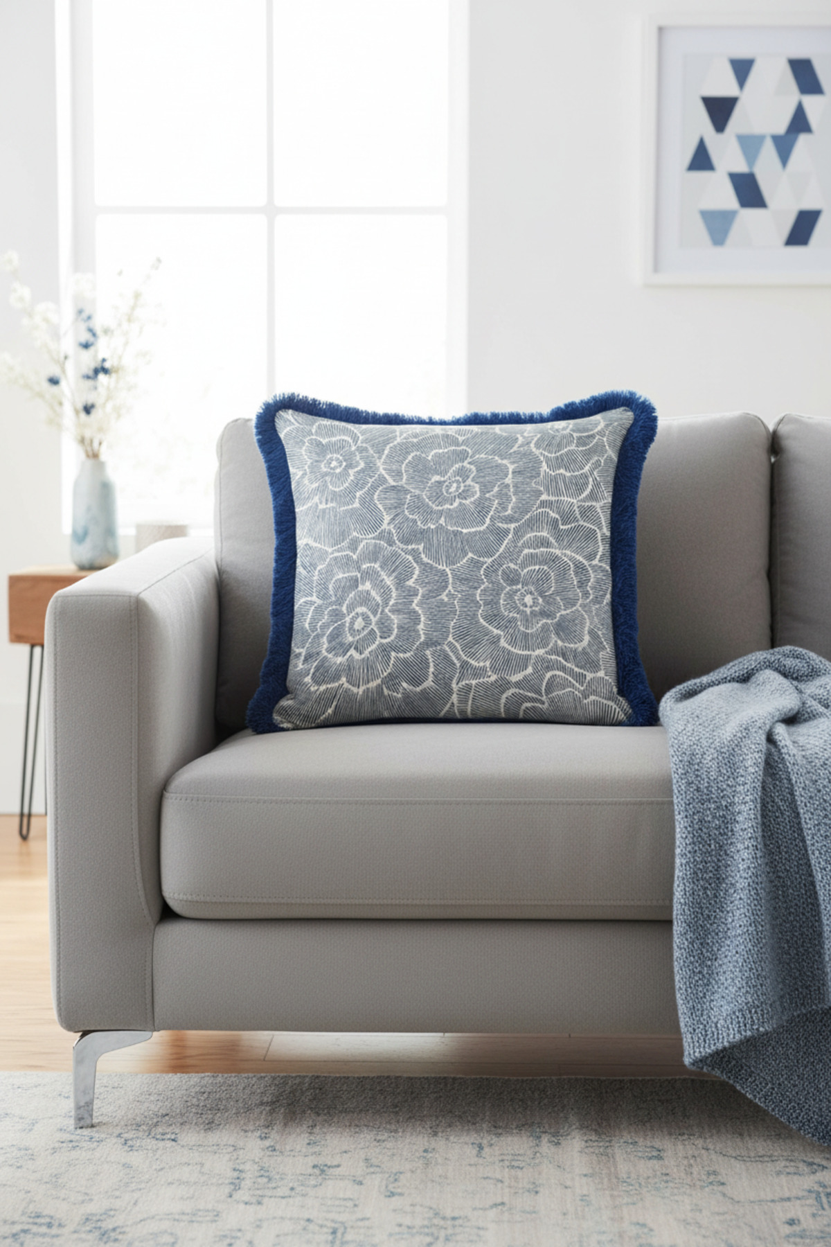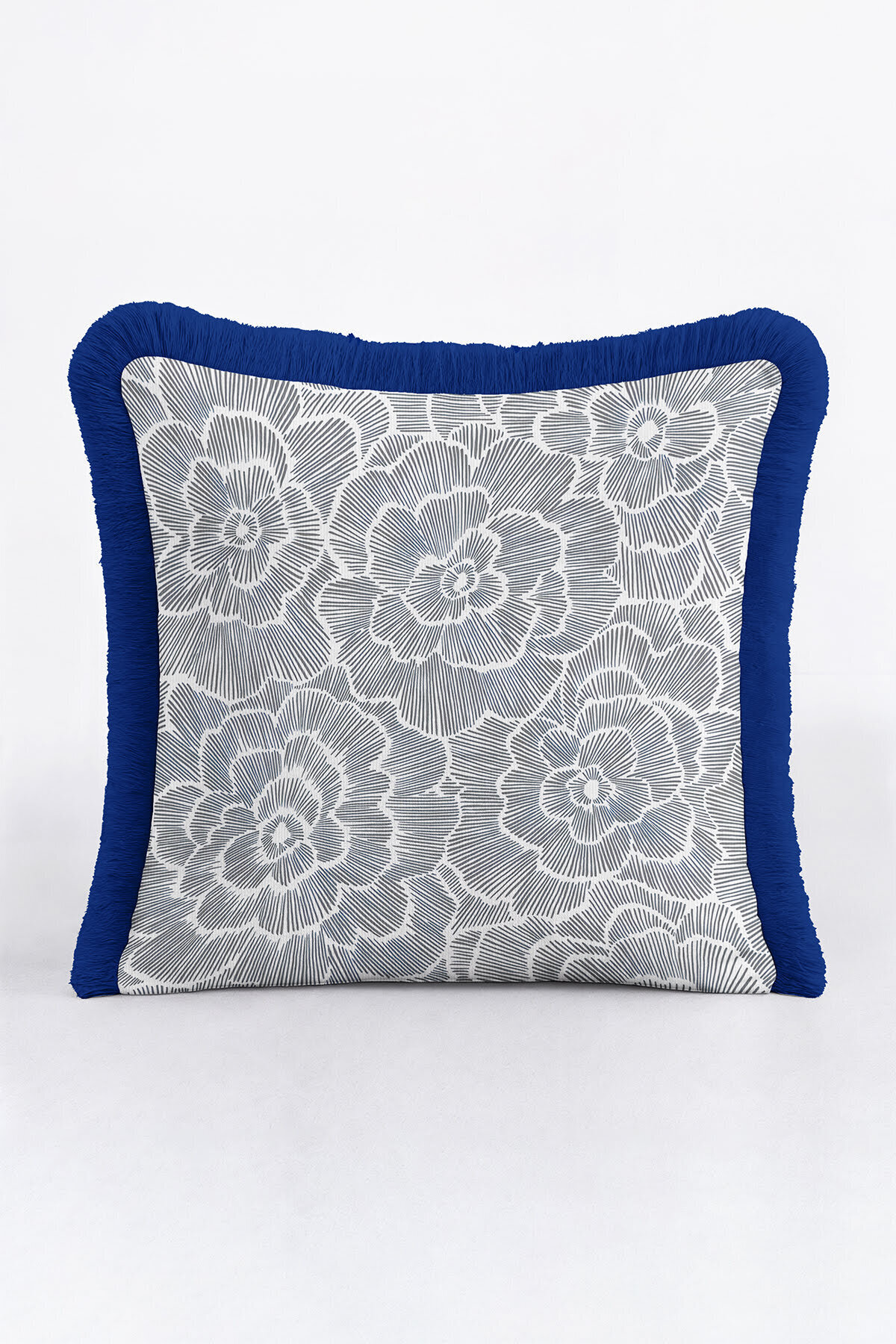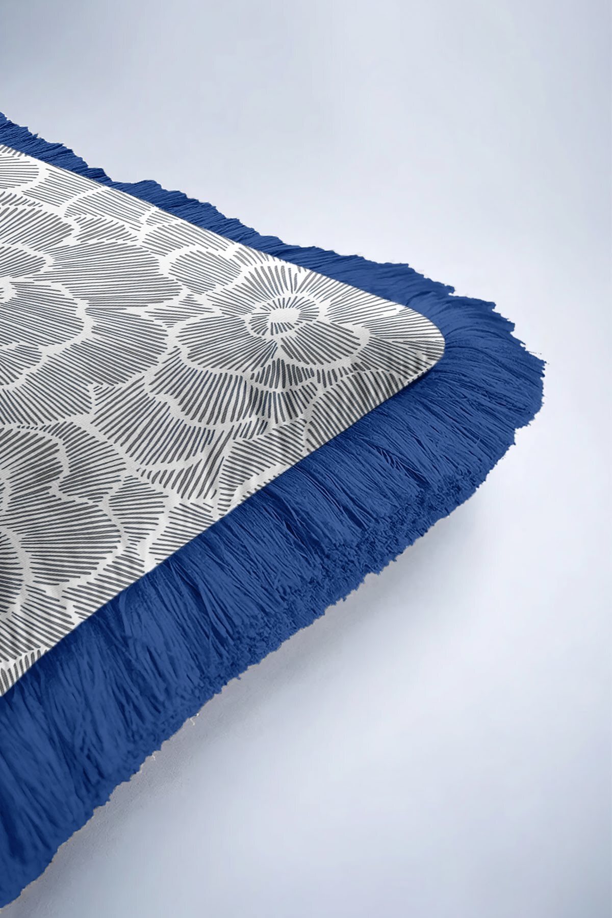 Elegant Blue Gray Modern Tasseled Pillowcase Made of60% Cotton + 40% Polyester fabric with a soft velvet texture.