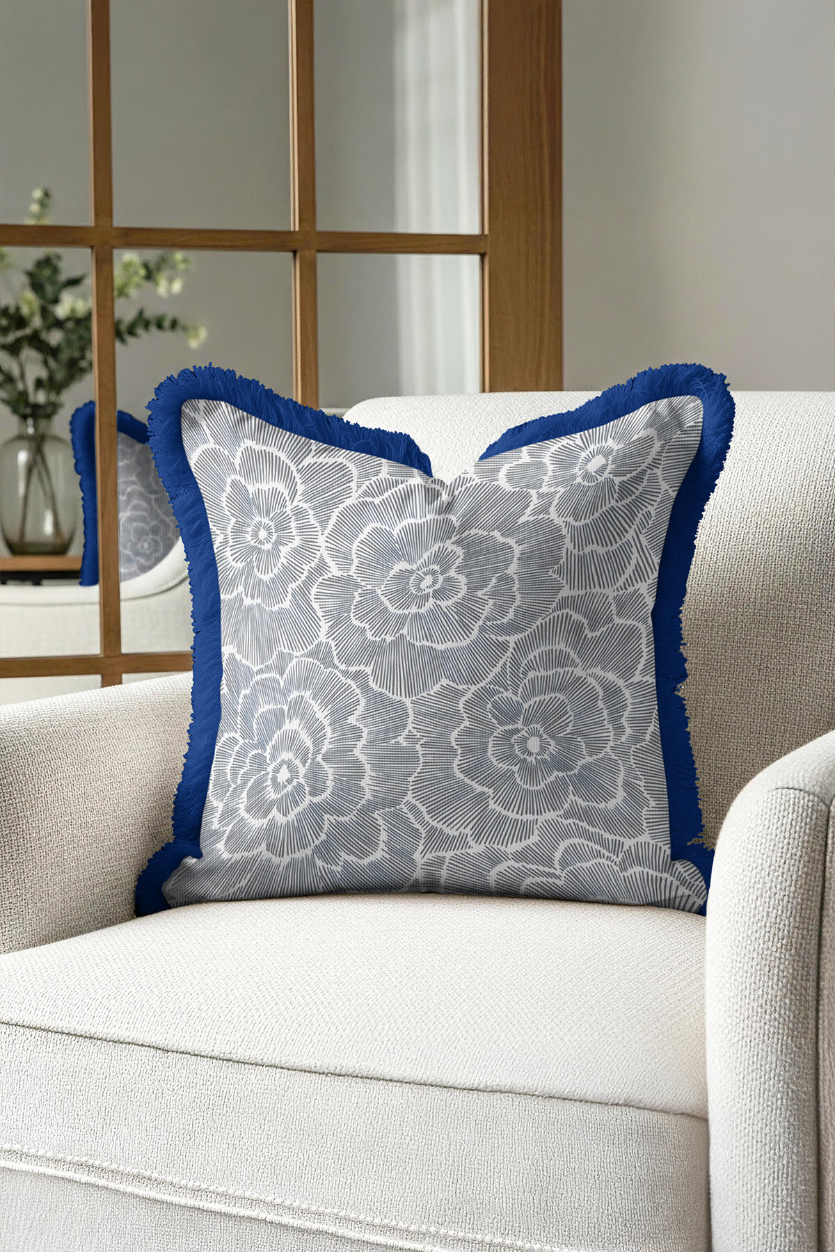 Add a completely different atmosphere to your home with the Special Design Luxury Striped Flower Motif Fringed Pillowcase.