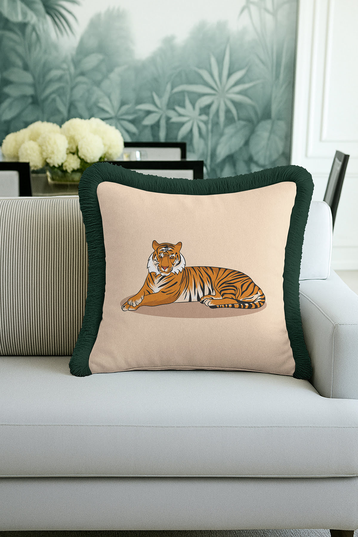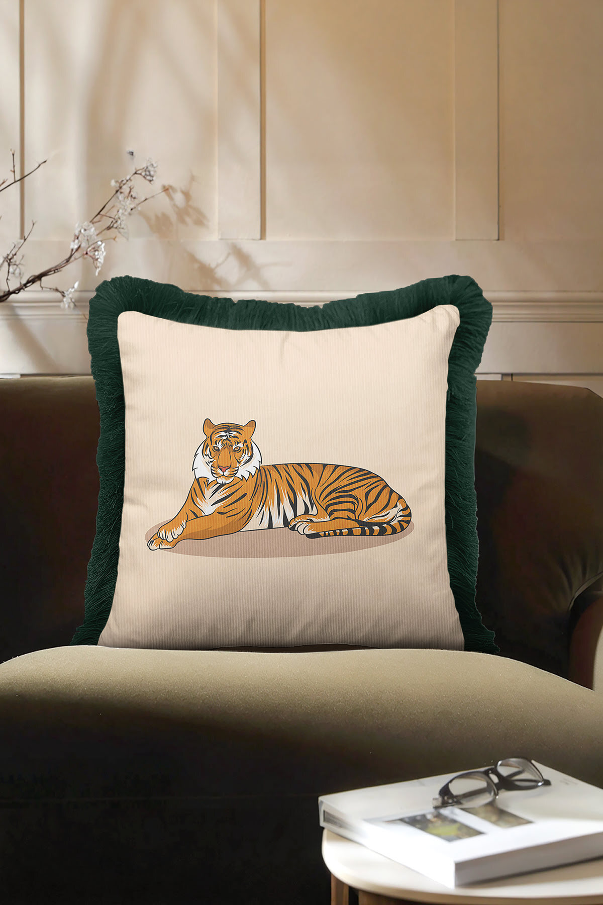 Add a completely different atmosphere to your home with the Special Design Luxury Tiger Shaped Fringed Pillowcase.
