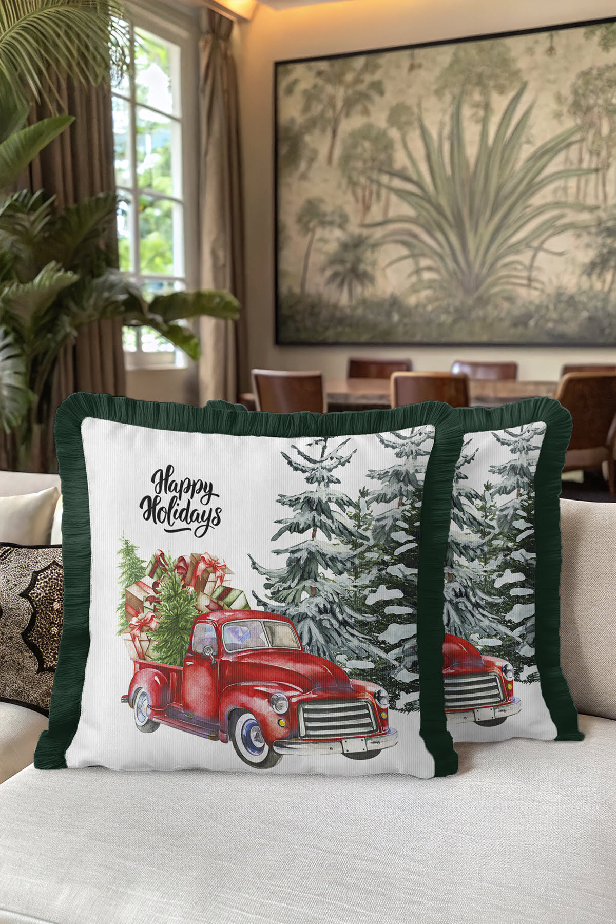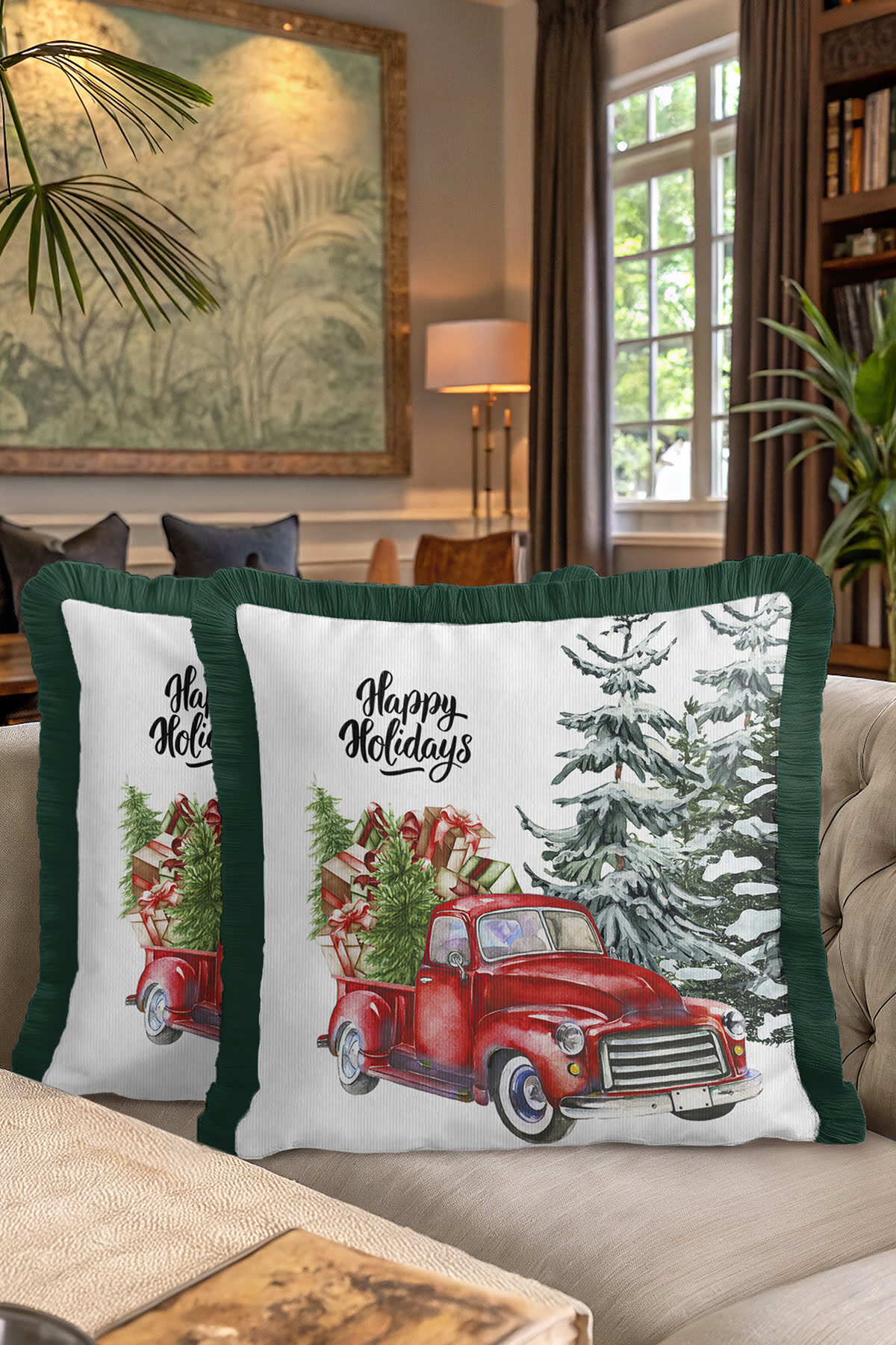 Add a completely different atmosphere to your home with the specially designed Xmas Christmas Car Fringed Pillowcase.