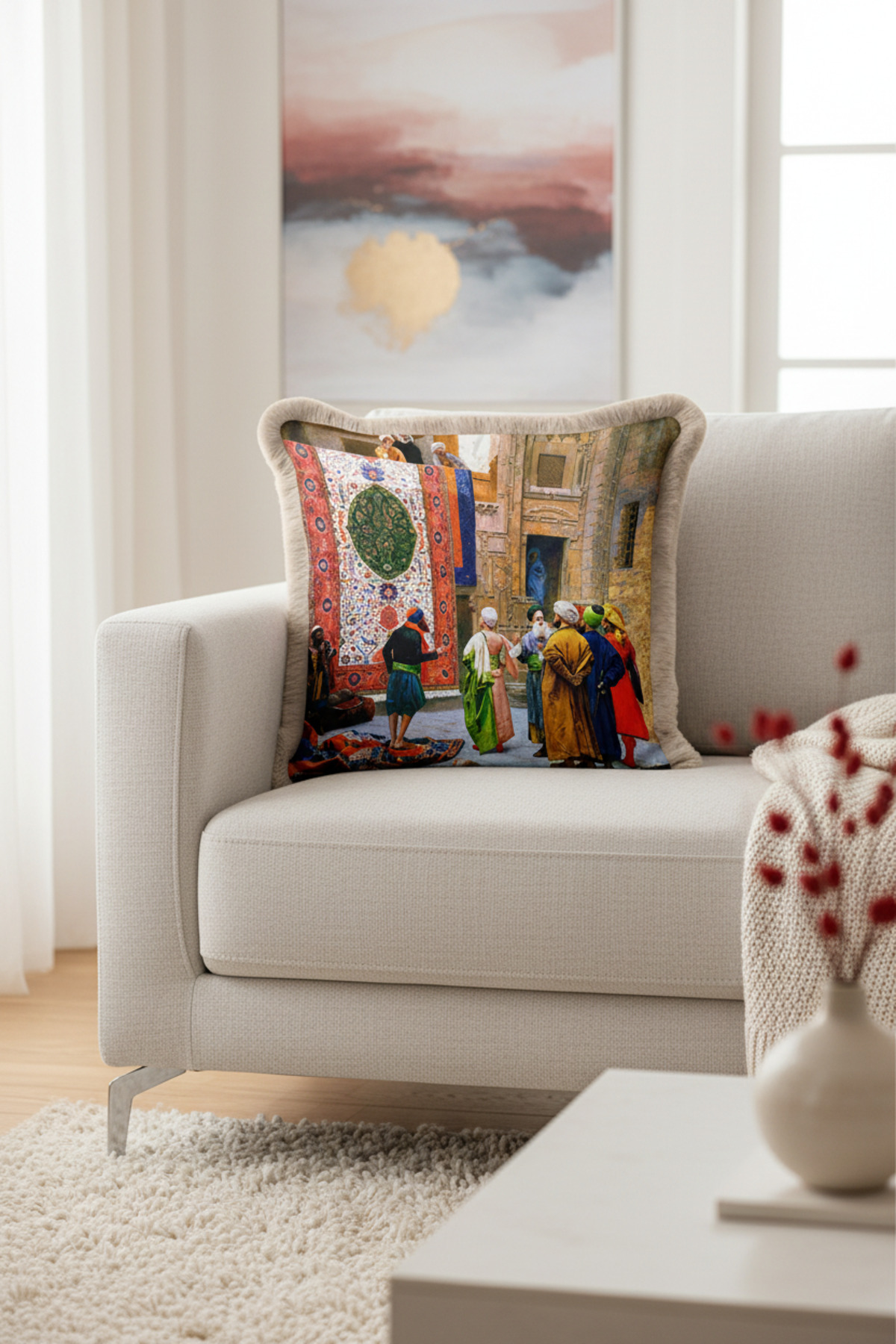 Add a completely different atmosphere to your home with the specially designed Ottoman Carpet Merchants Fringed Pillowcase.