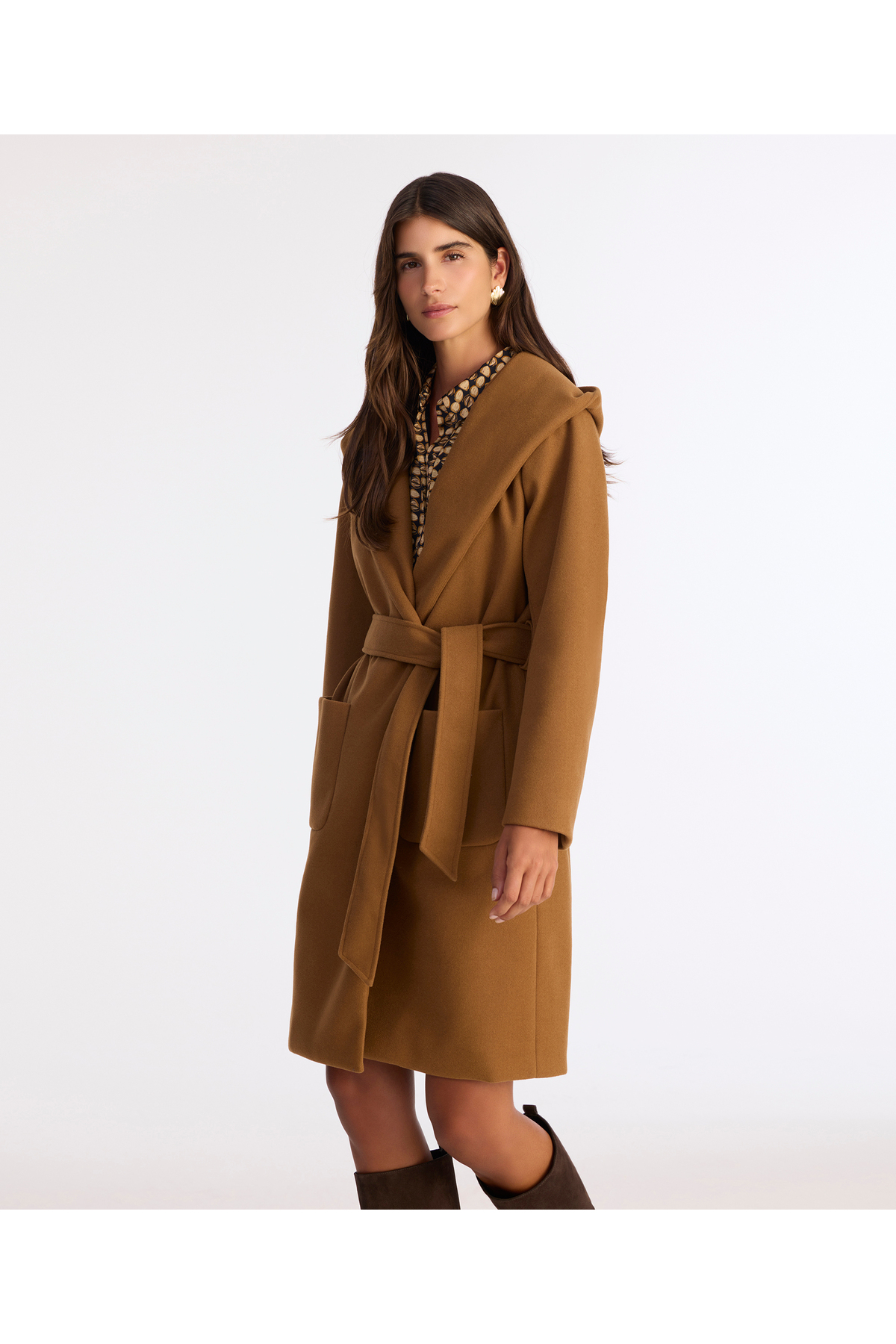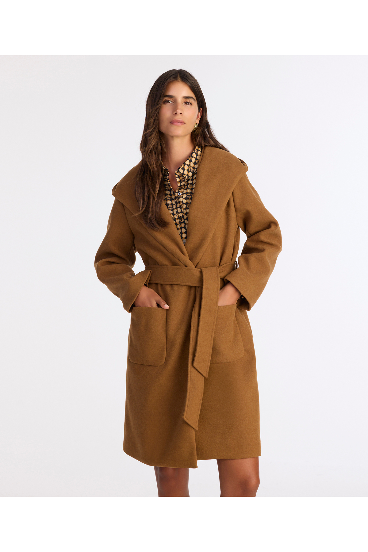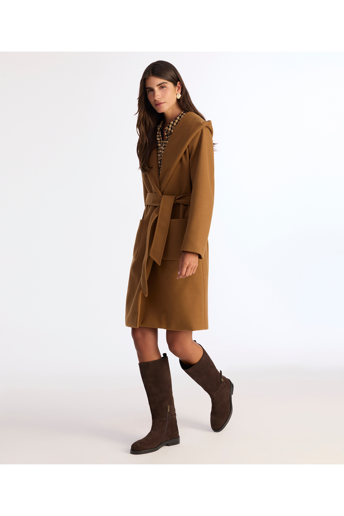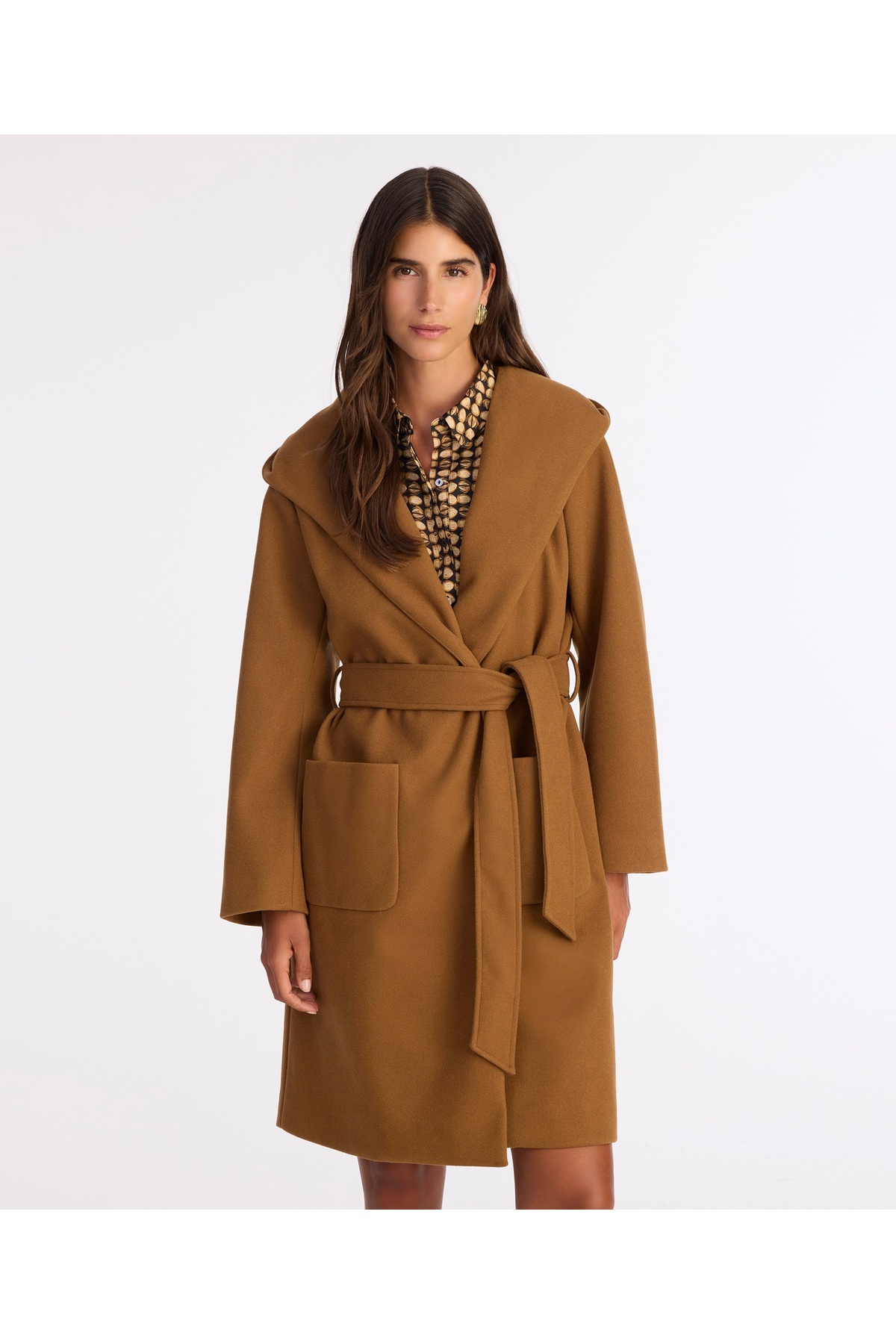 Standing out with its wide collar and belt detail, this coat combines classic elegance with a modern style.
