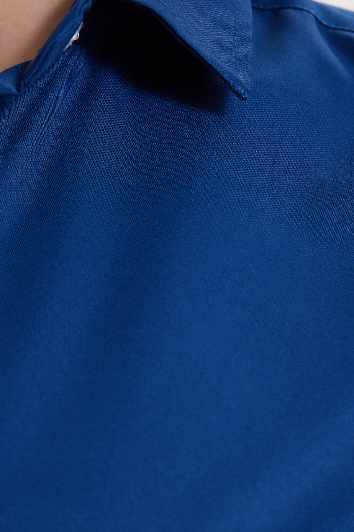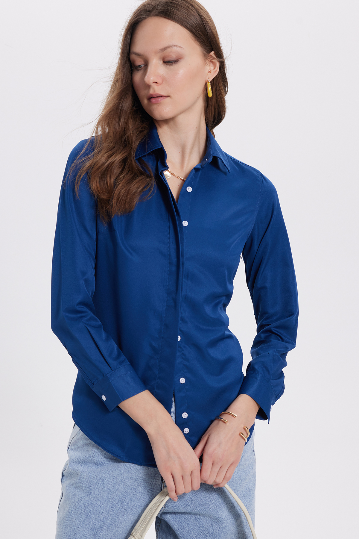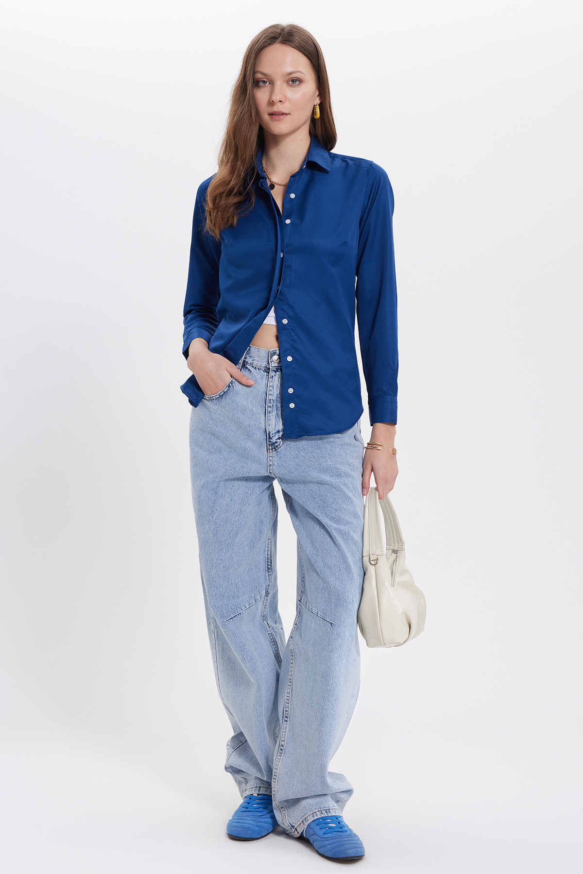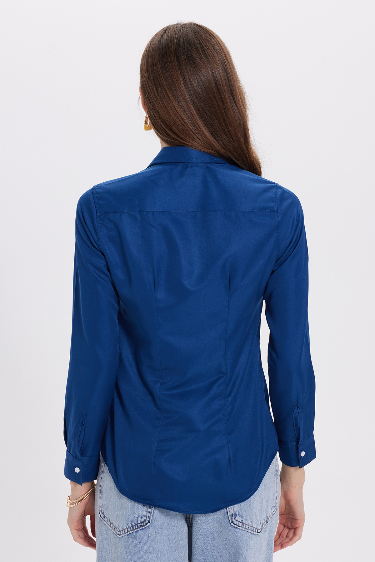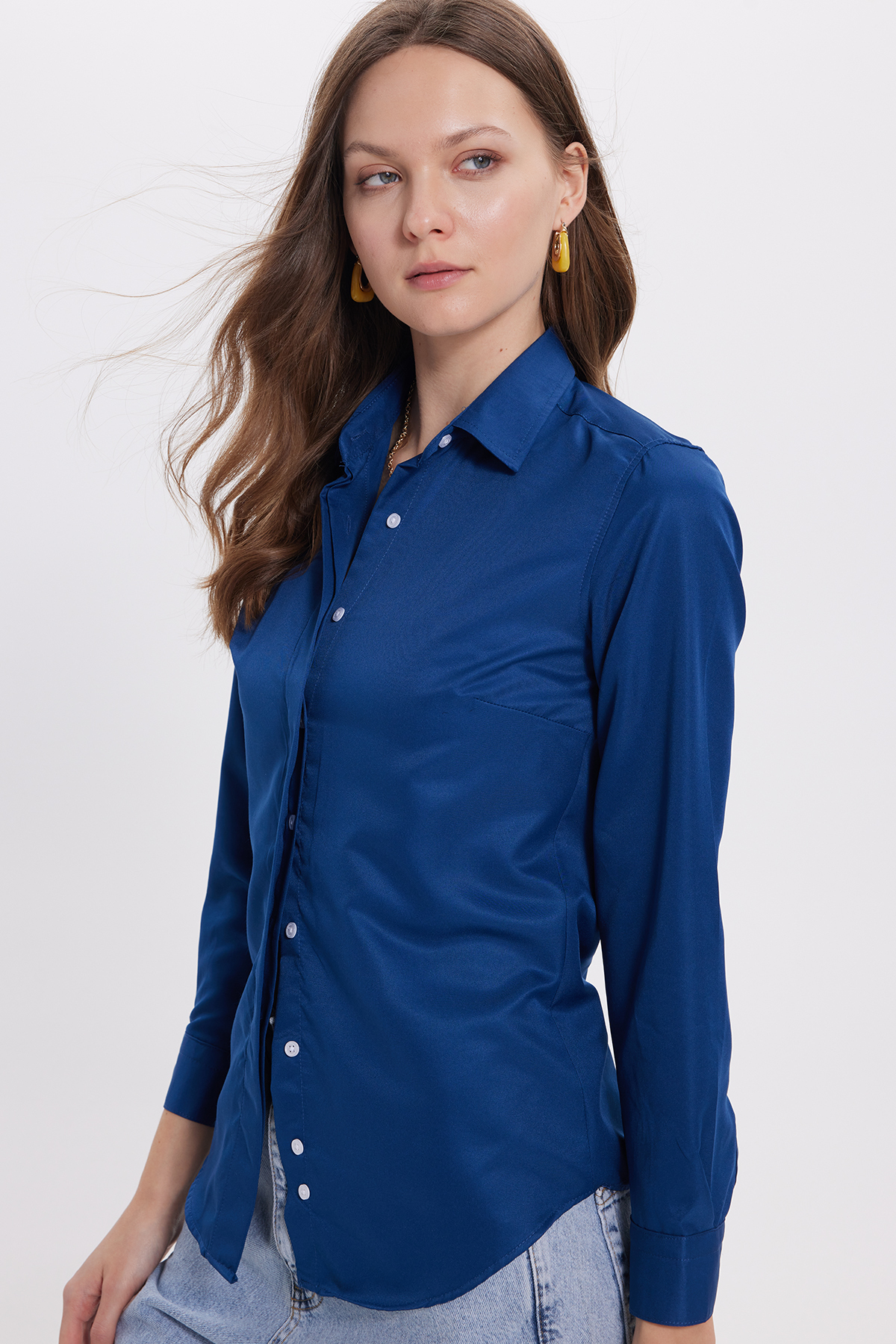 Tudors Women's Slim Fit Slim Fit Sitting Long Sleeve Hidden Button Detail Navy Blue Basic Shirt | ByTR