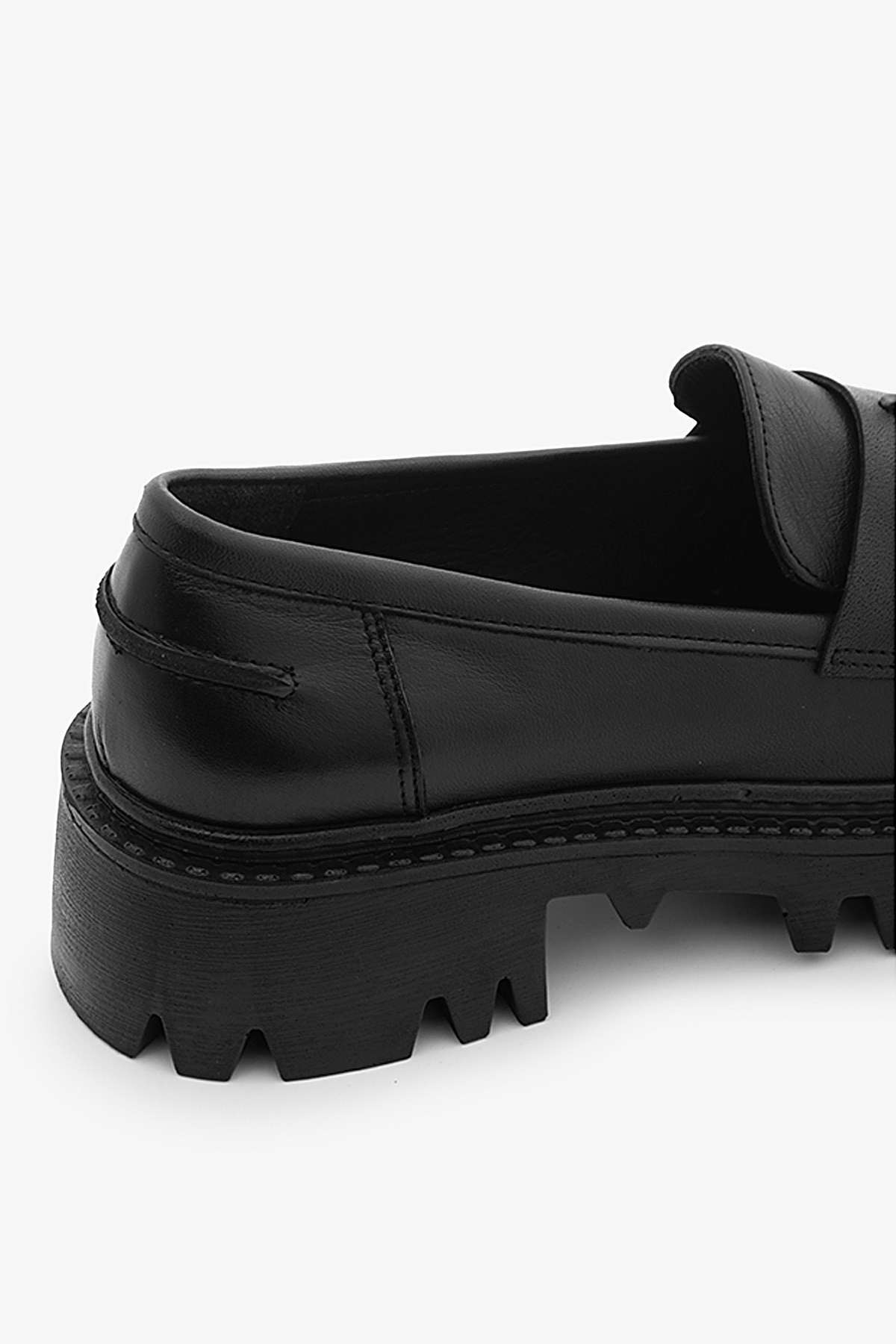 SAYL Black Genuine Leather Fringed Thick Sole Women's Loafer Shoes | ByTR