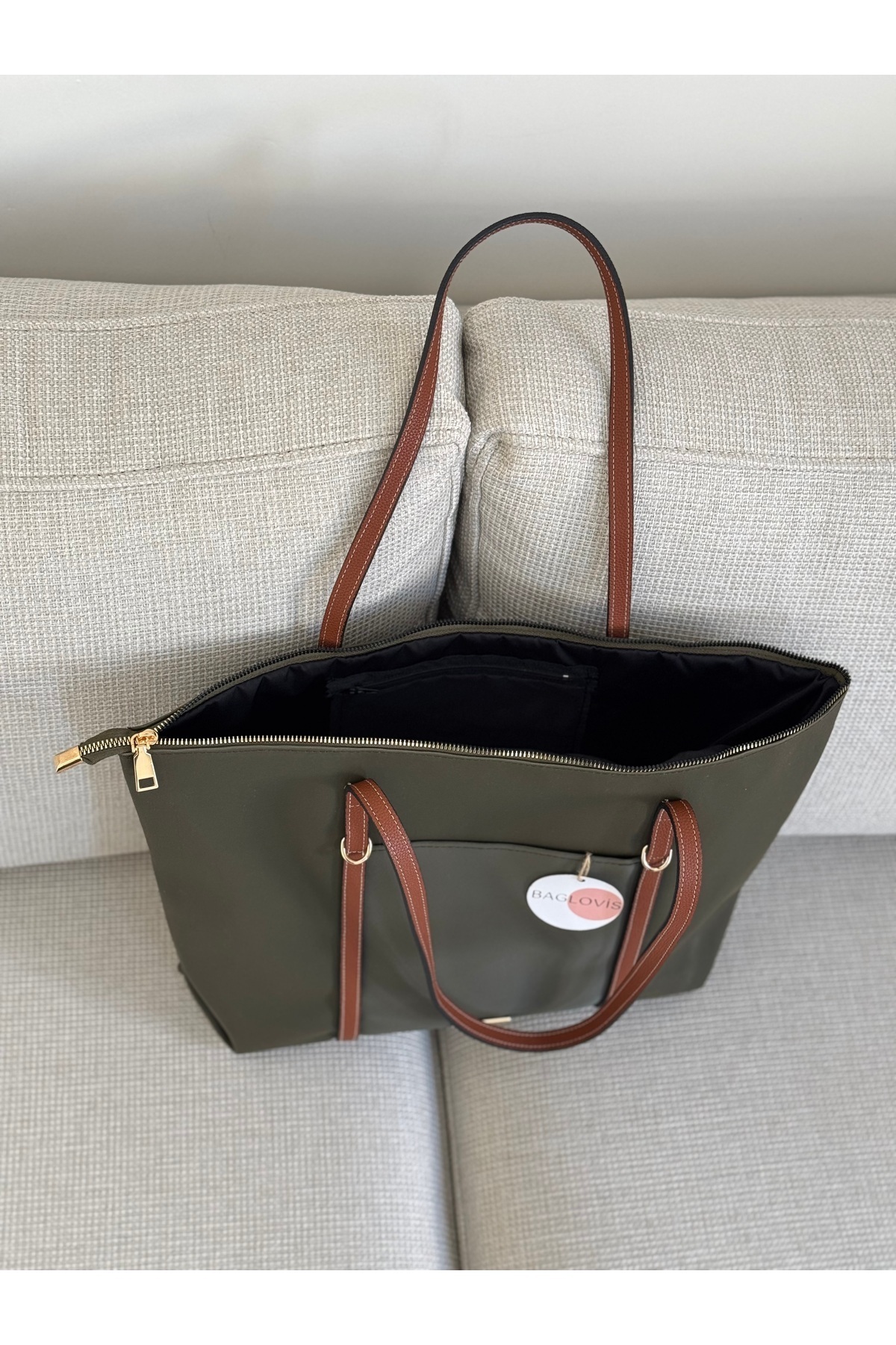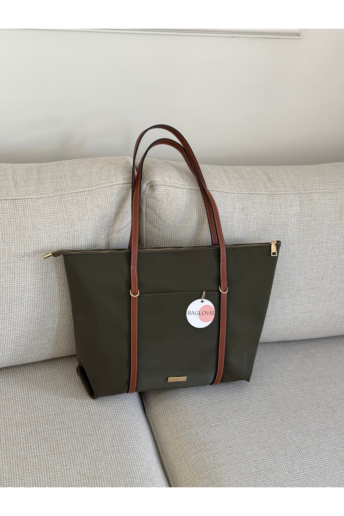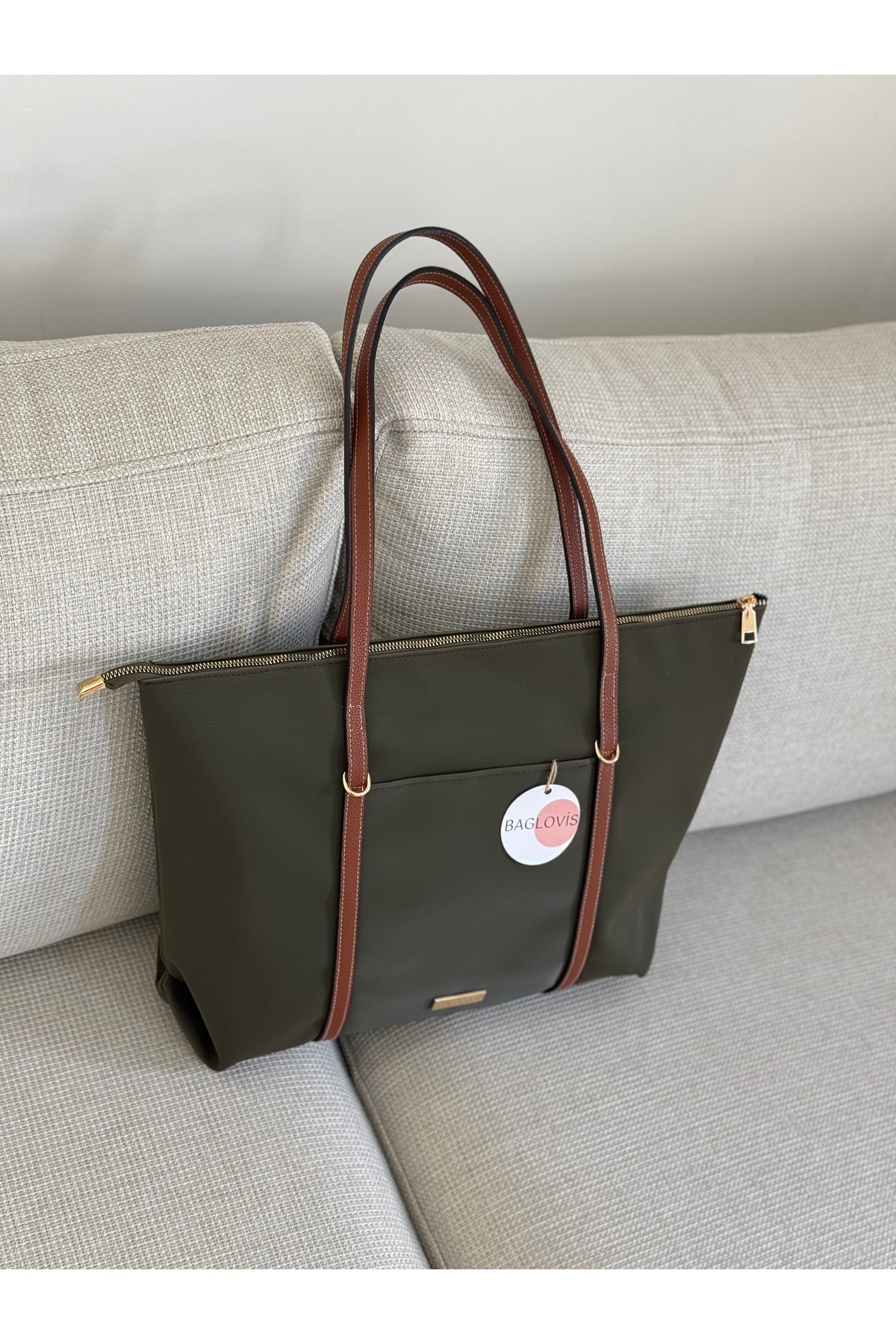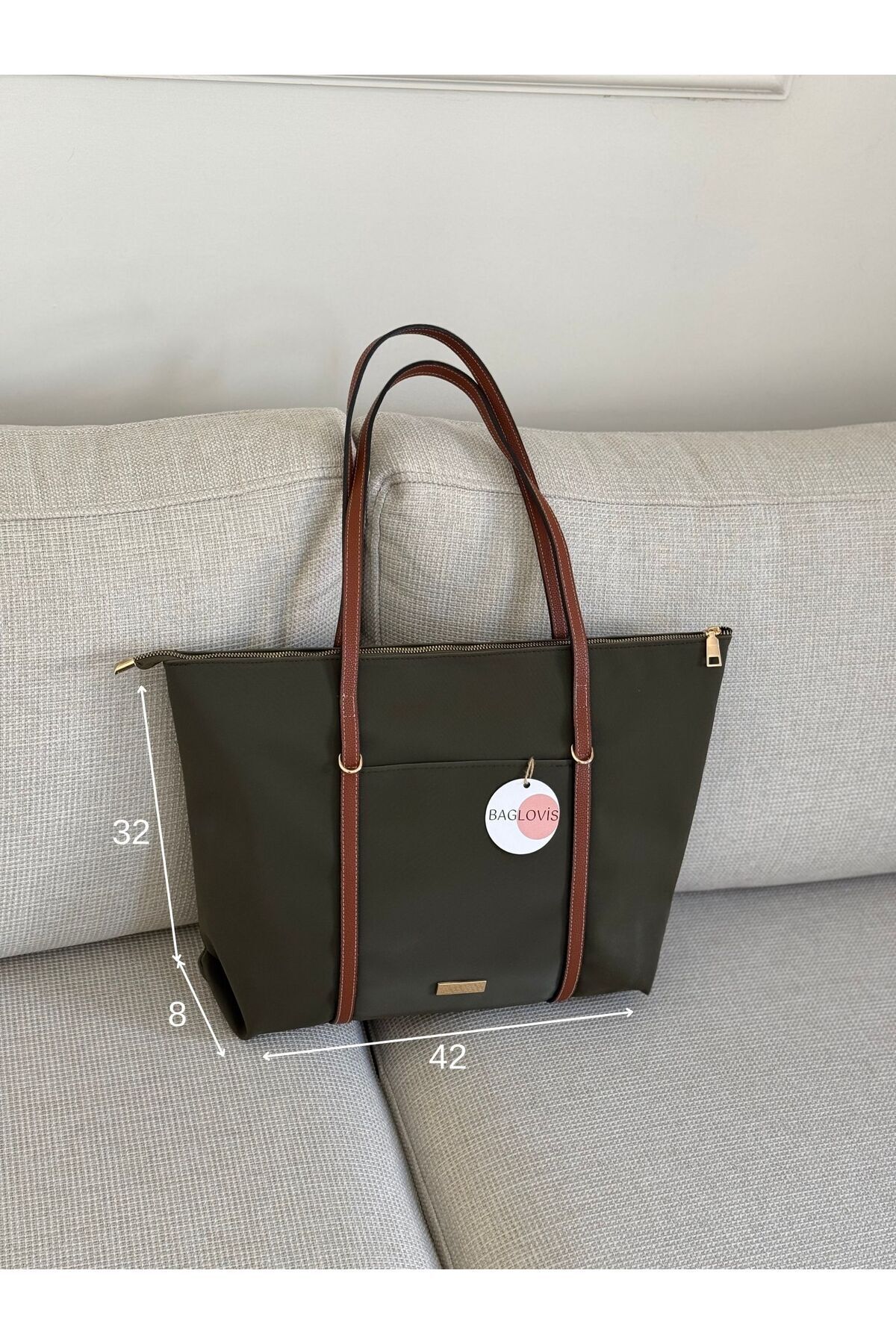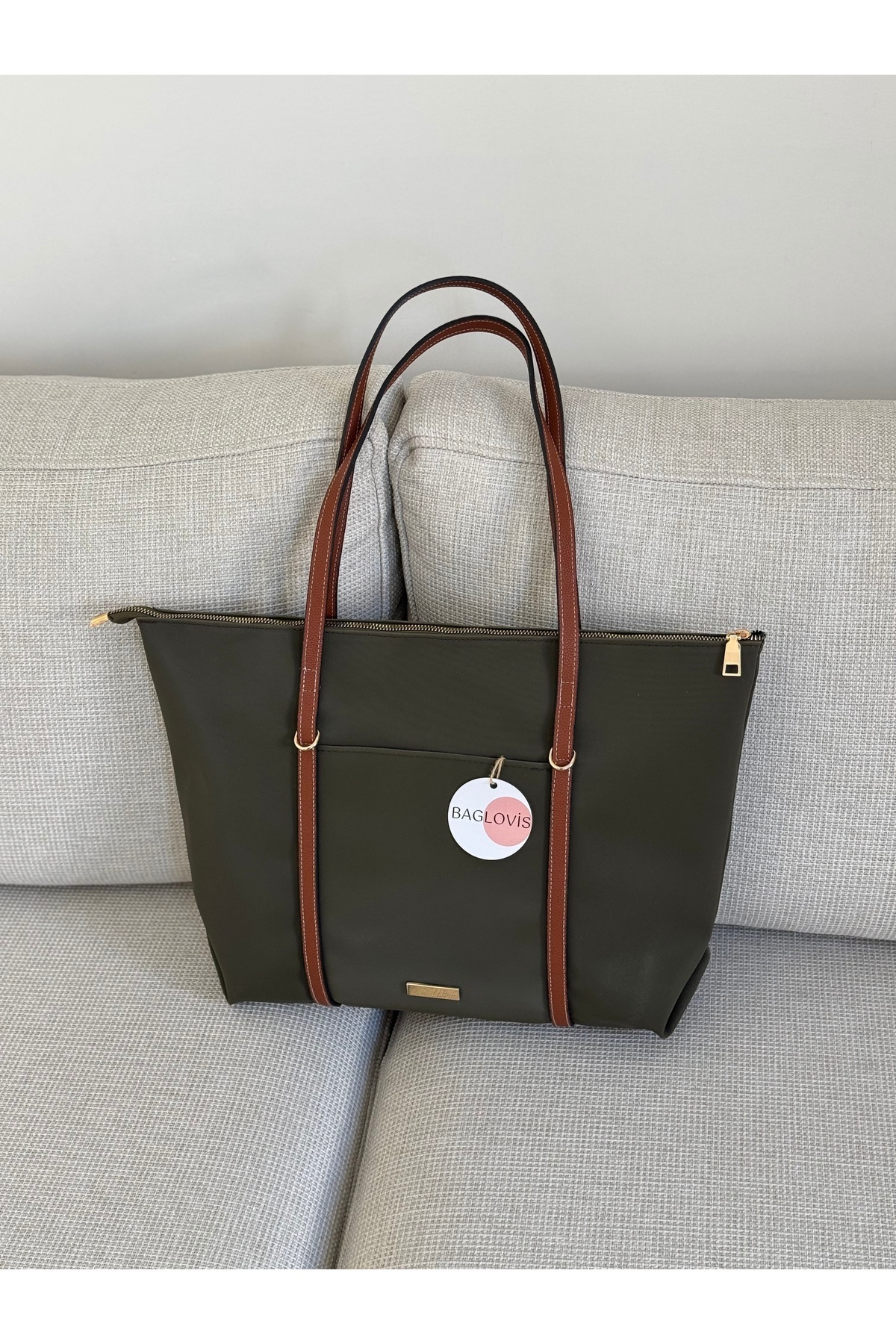 BAGLOVİS LARGE KHAKI WOMEN 'S SHOULDER BAG WITH LOOP STRAPS EN42 BOY32 | ByTR