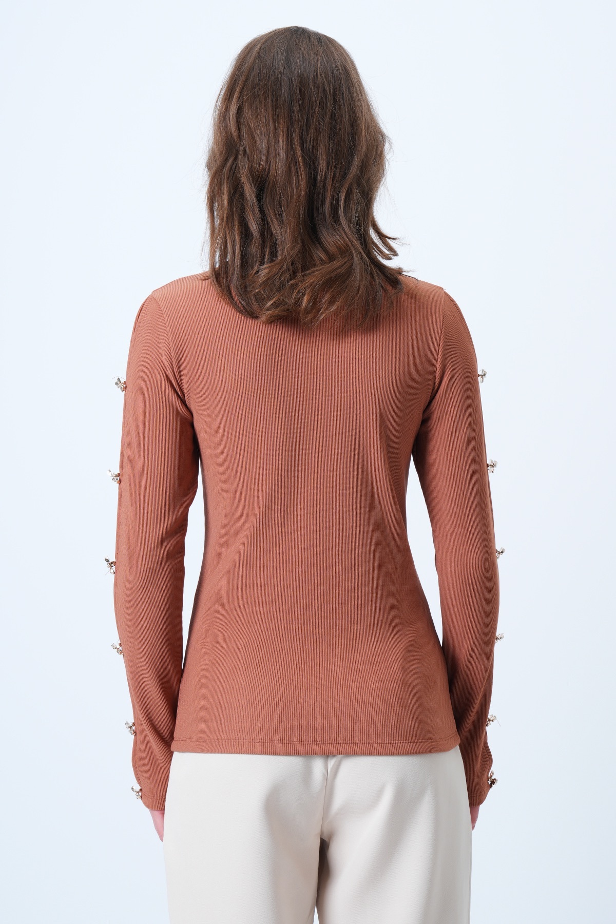 Trend Alaçatı Stili Women's Cinnamon Coffee Crew Neck Gold Button Detailed Ottoban Blouse ALC-X14336 | ByTR
