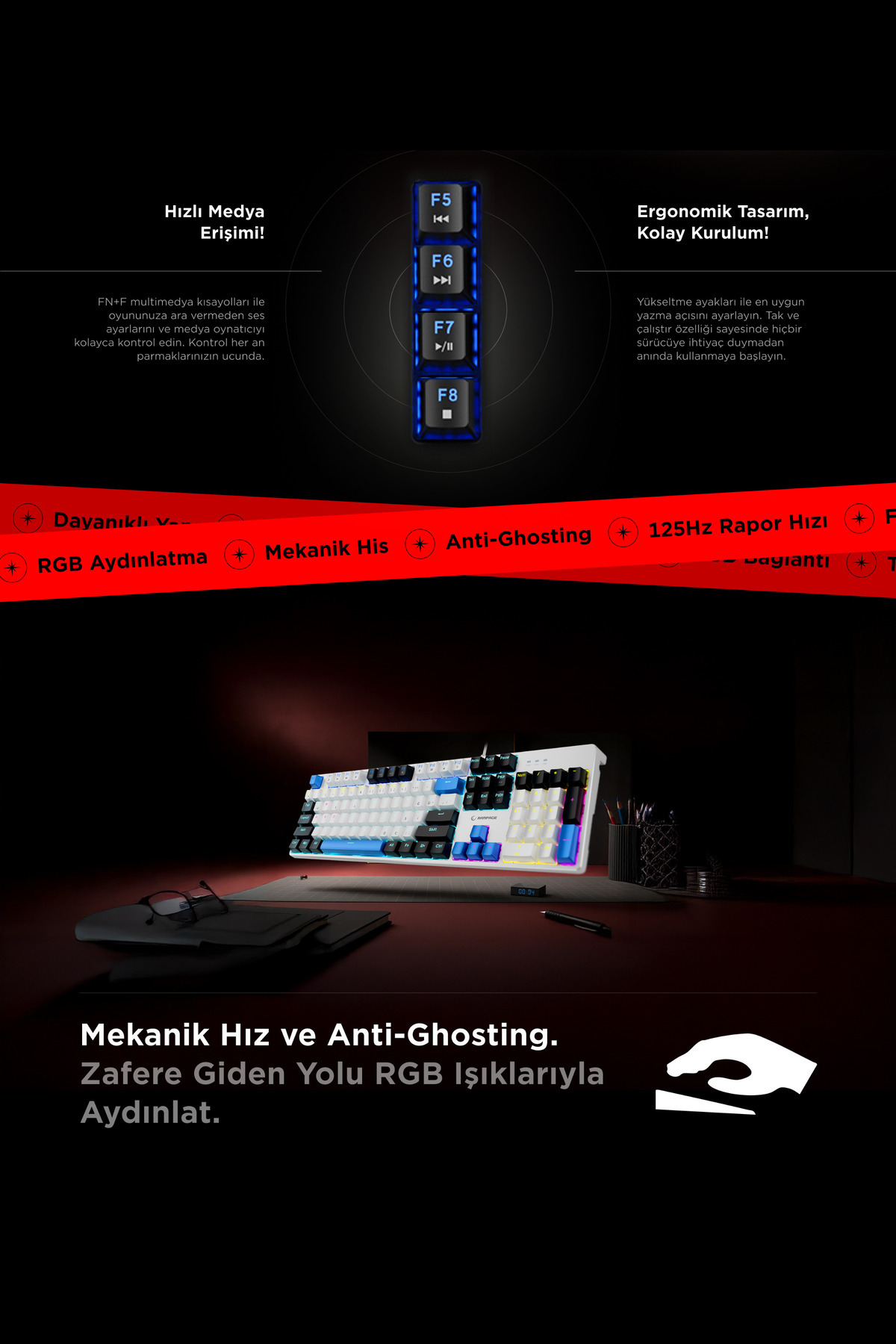 It provides fast and precise keystrokes with its mechanical switch structure and increases your performance in games.