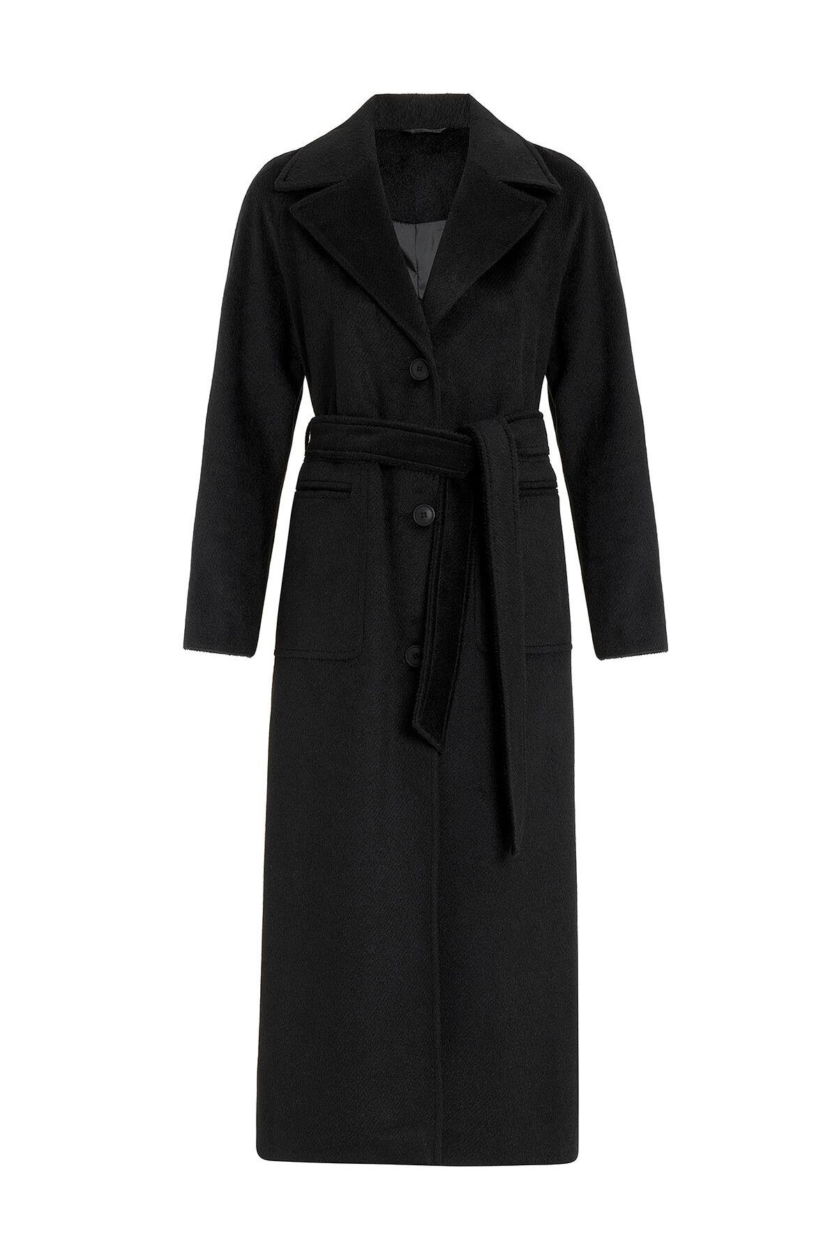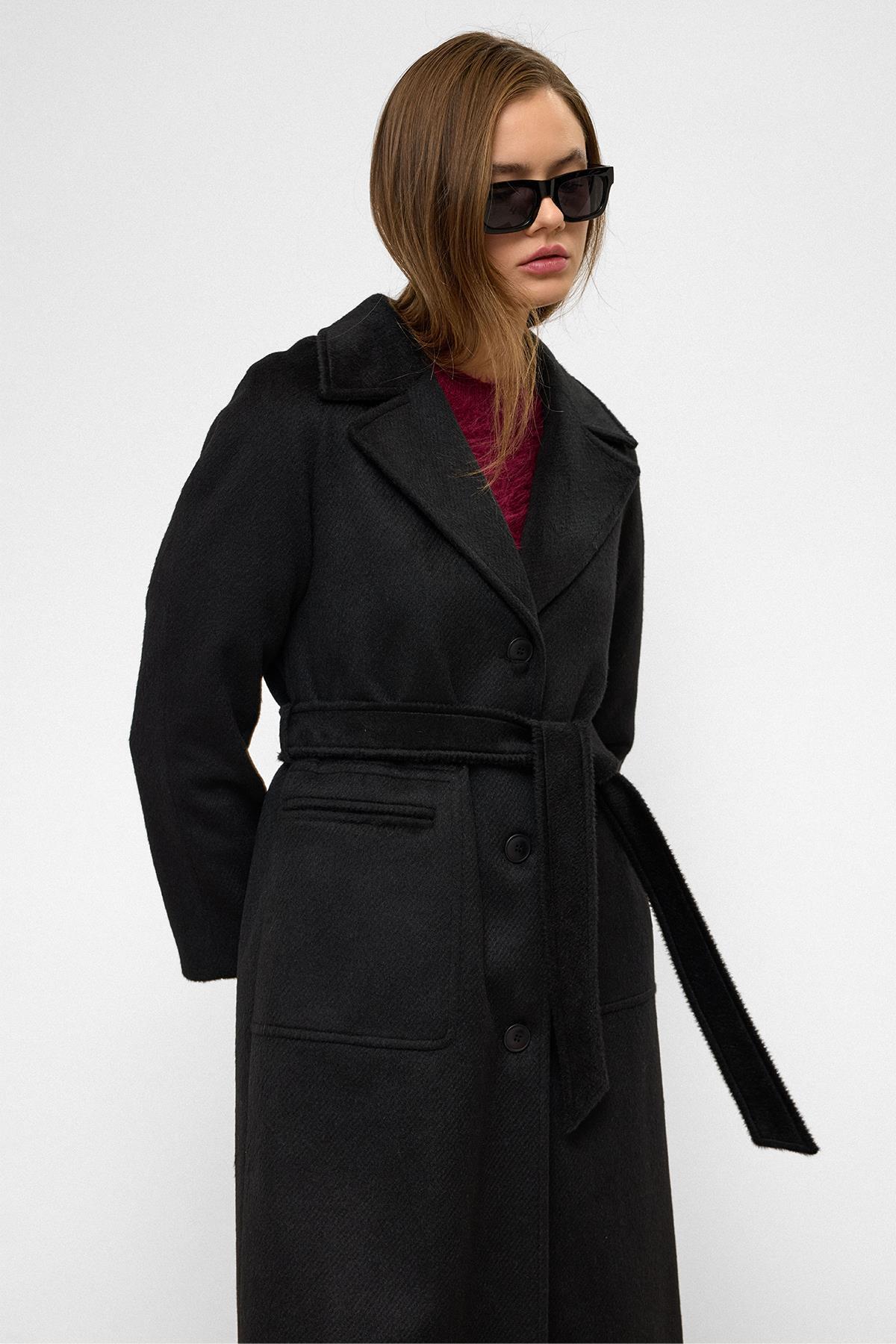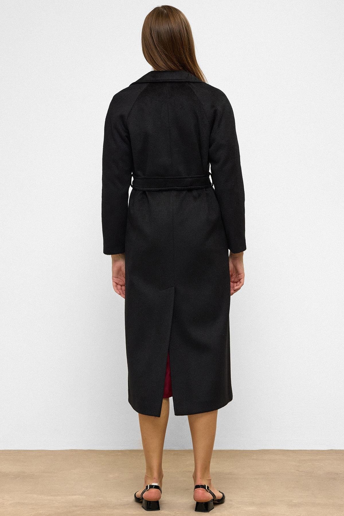 Olcay Raglan Sleeve Belted Moher Coat BLACK 3156 | ByTR